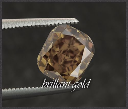 Wunderschöner 0,71 ct Diamant im Cushion-Schliff in intensiv champagner Farbe mit einer tollen Brillanz.