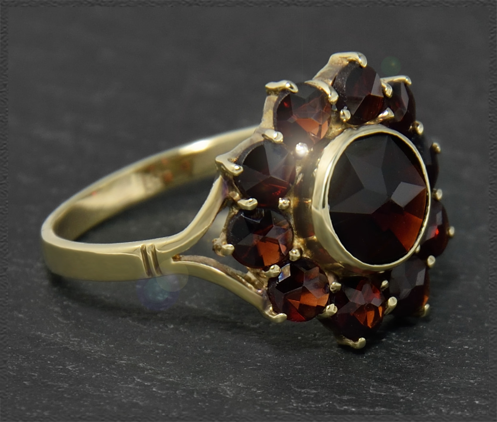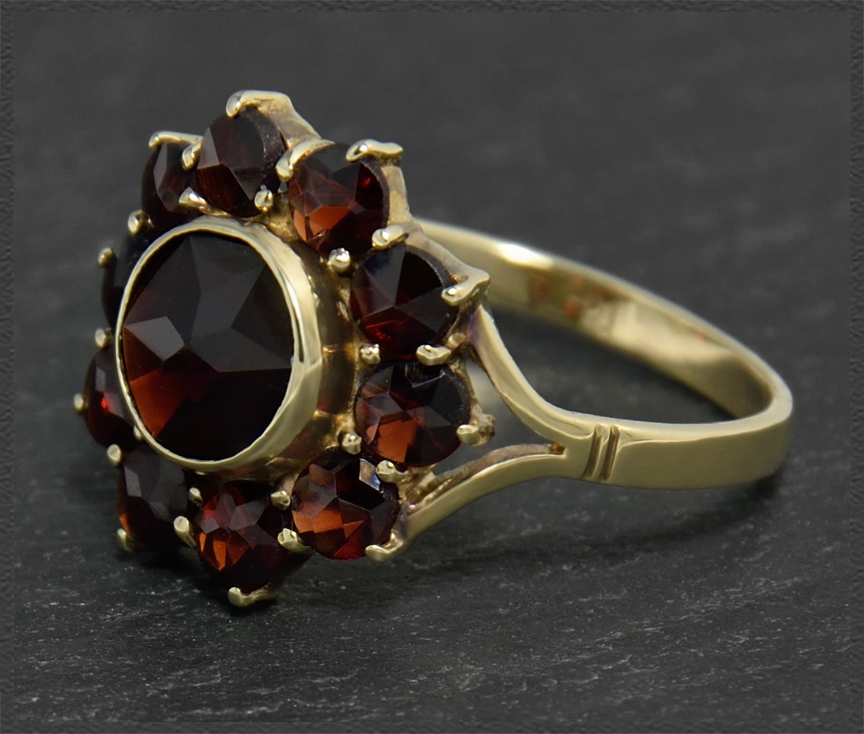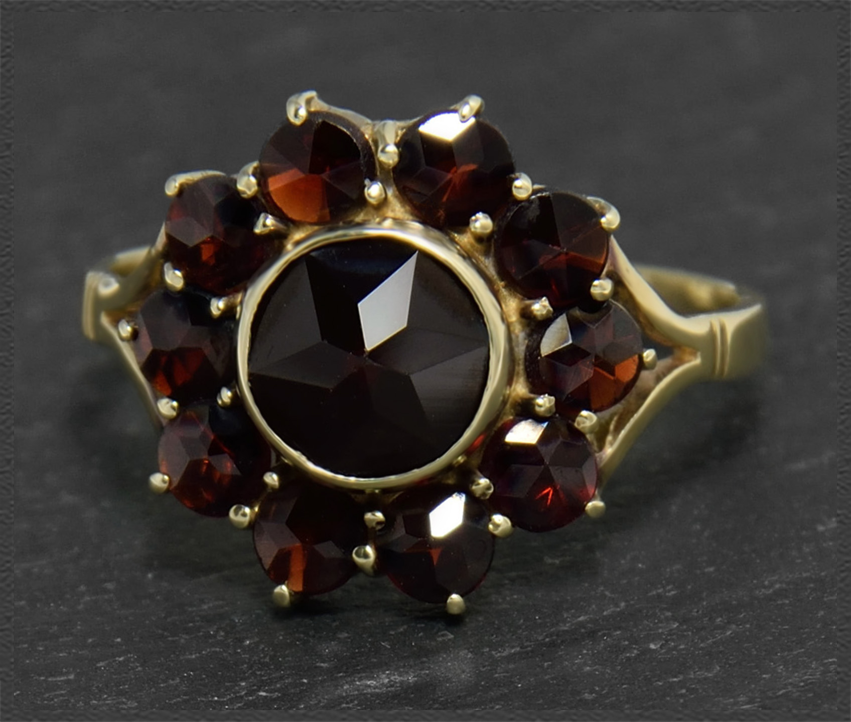 Antiker 3ct Granat Cocktailring, von ca 1930.