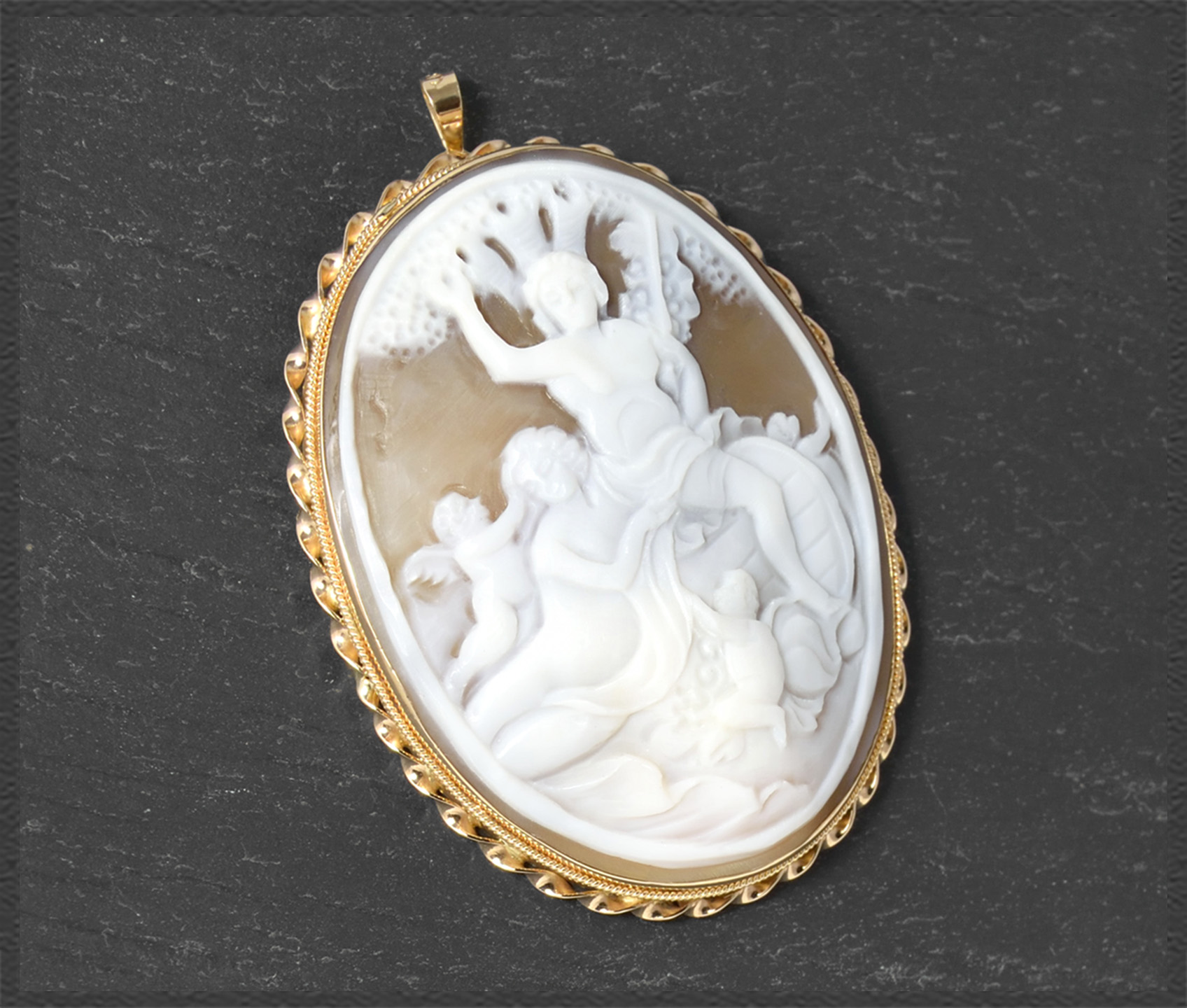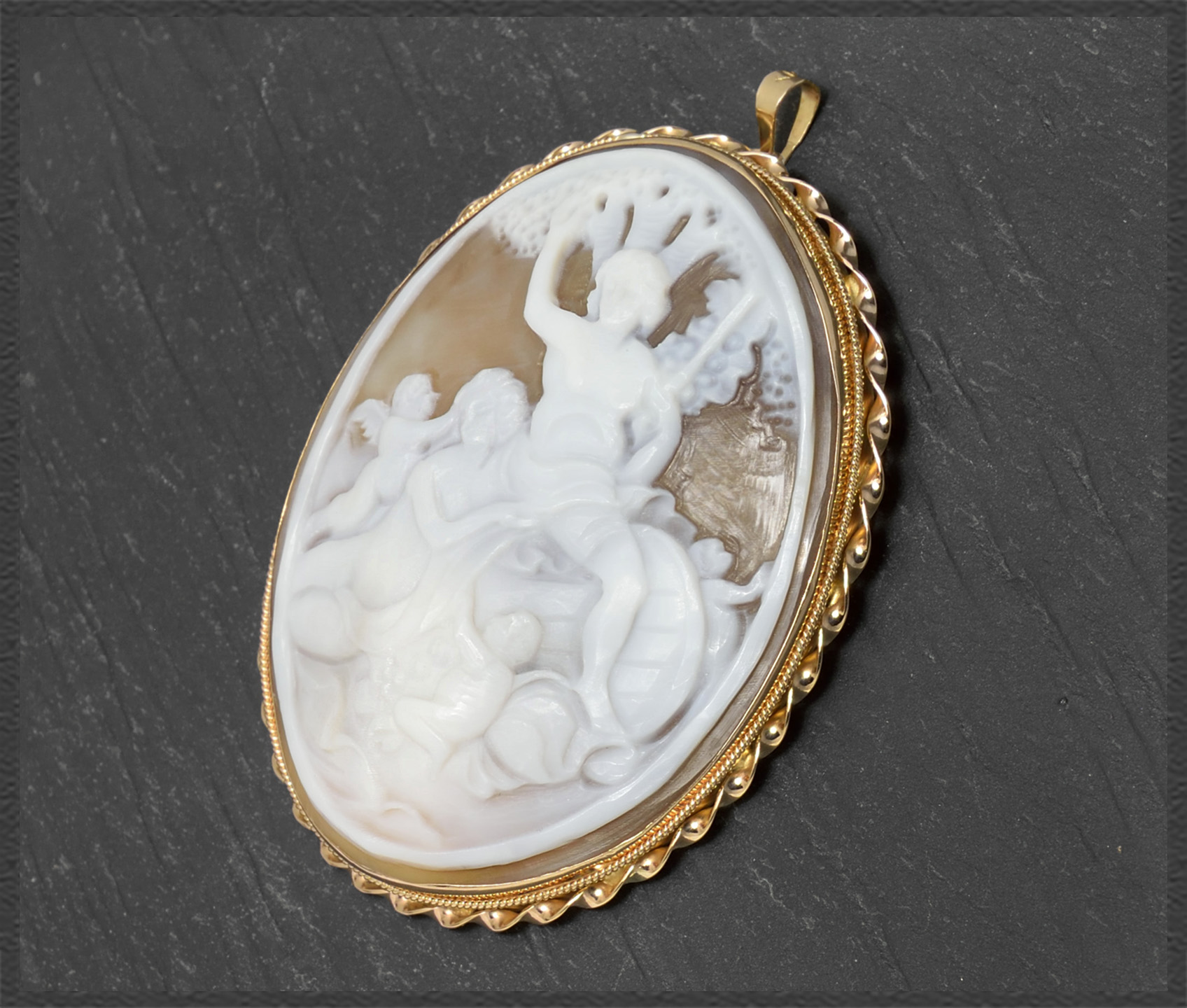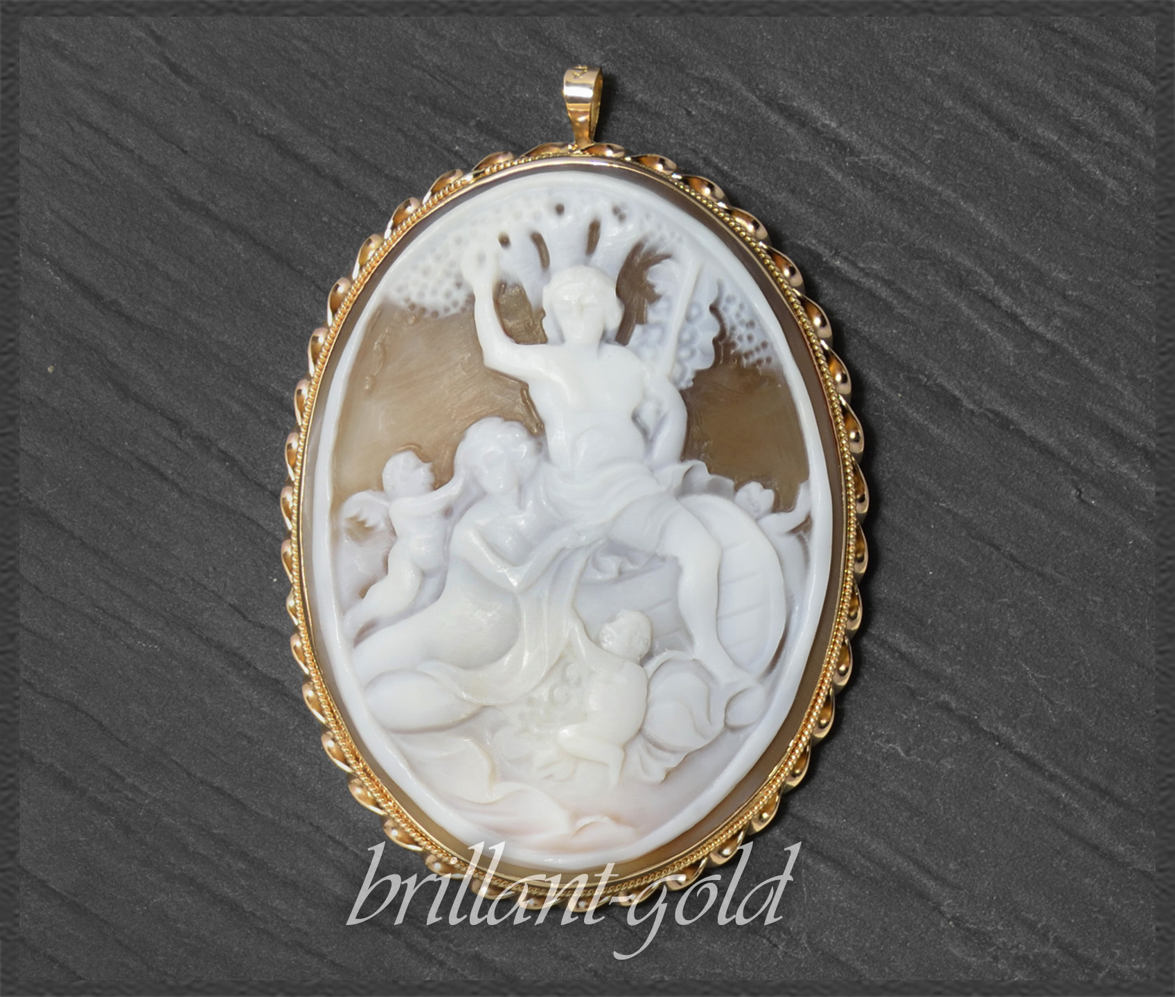 Vintage Anhänger mit einer großen Kamee Gemme geschnitzt aus einer Muschel, eine Muschel-Kamee.