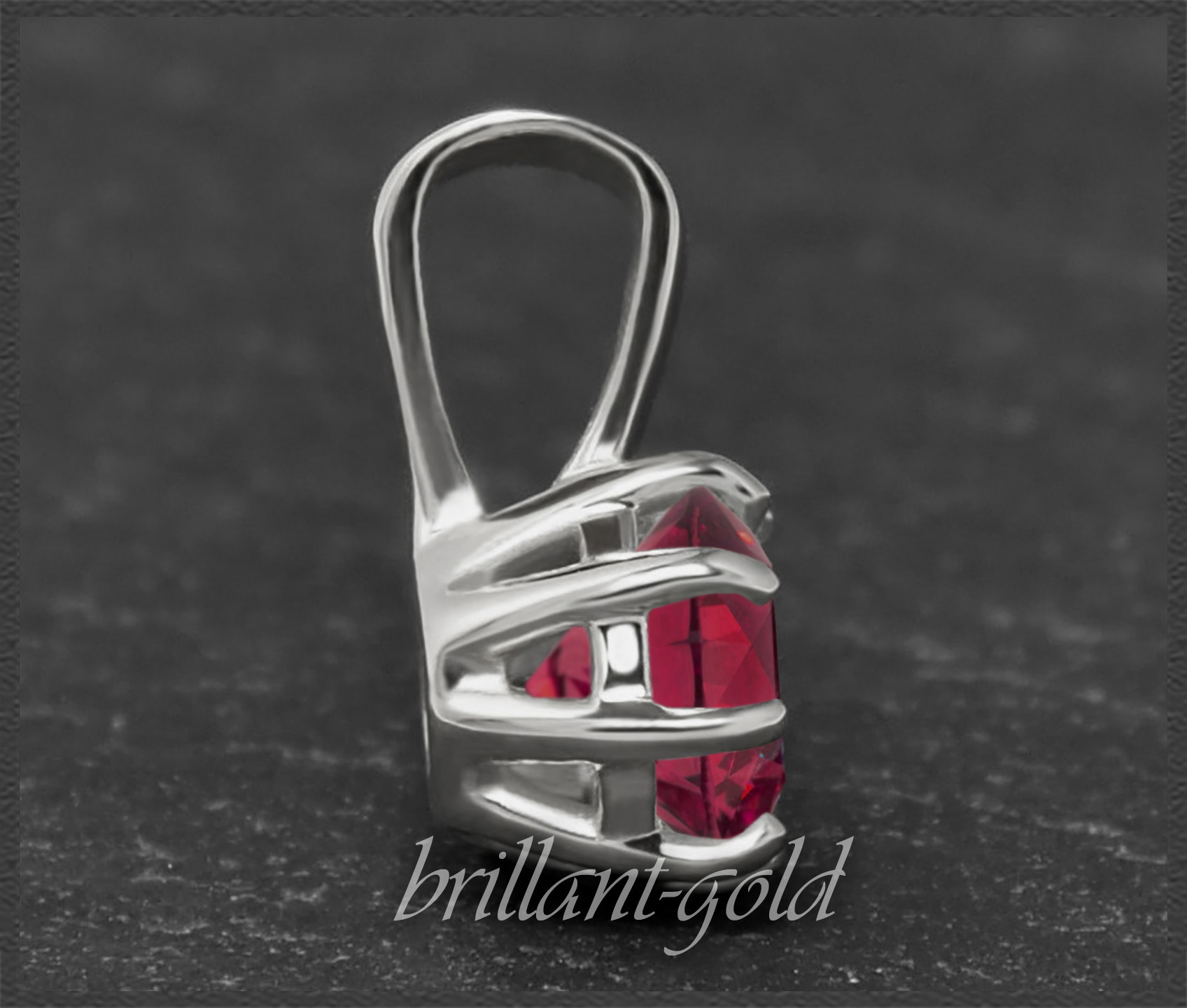 Im Anhänger eingefasst ist ein sehr schöner & hochwertiger, intensiv roter Rubin mit 6,15mm Durchmesser & 1,43ct.