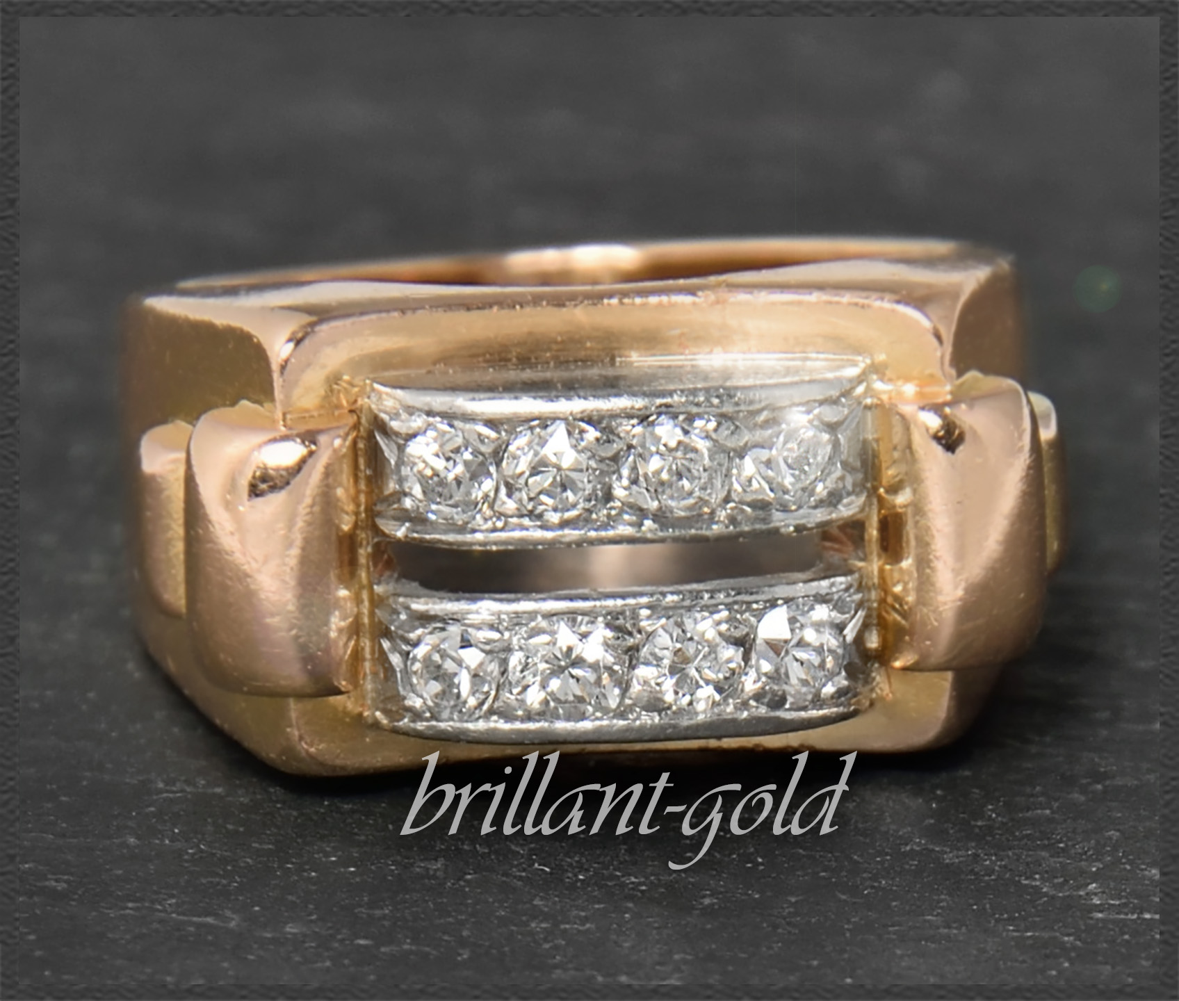 Typischer "tank ring" der 1940er Jahre mit 8 funkelnden Diamanten in hoher Qualität.