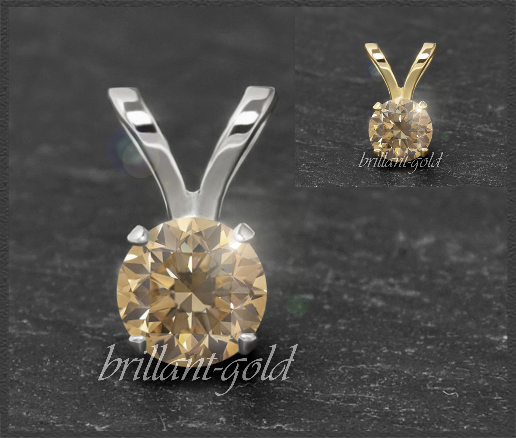 Wundervolle, zart champagner Brillant Anhänger aus 585 Gold mit schöner Brillanz.