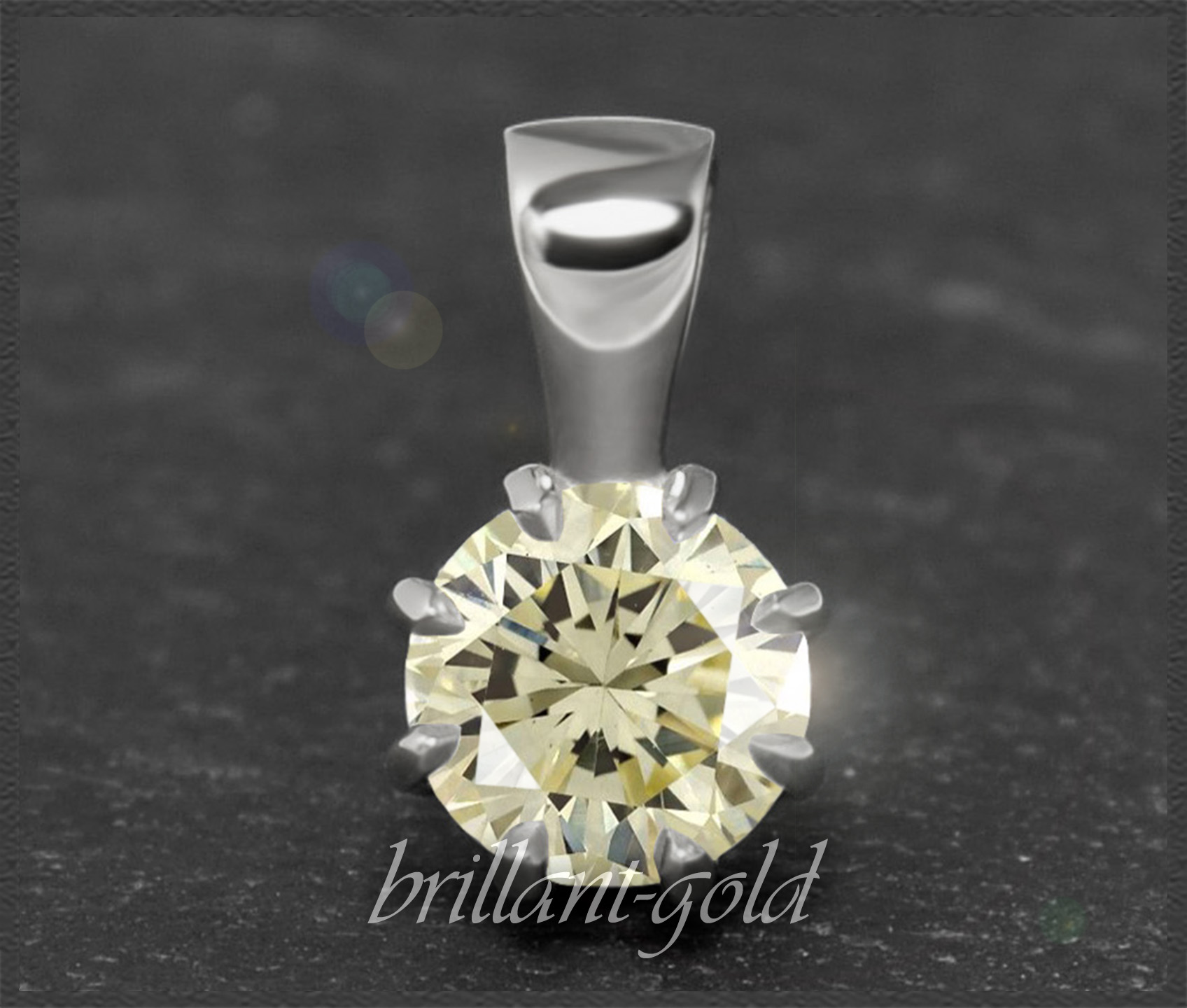 Gefasst ist ein 0,80ct Brillant der Farbe zart gelb und der Reinheit Si1-2 mit traumhafter Brillanz.