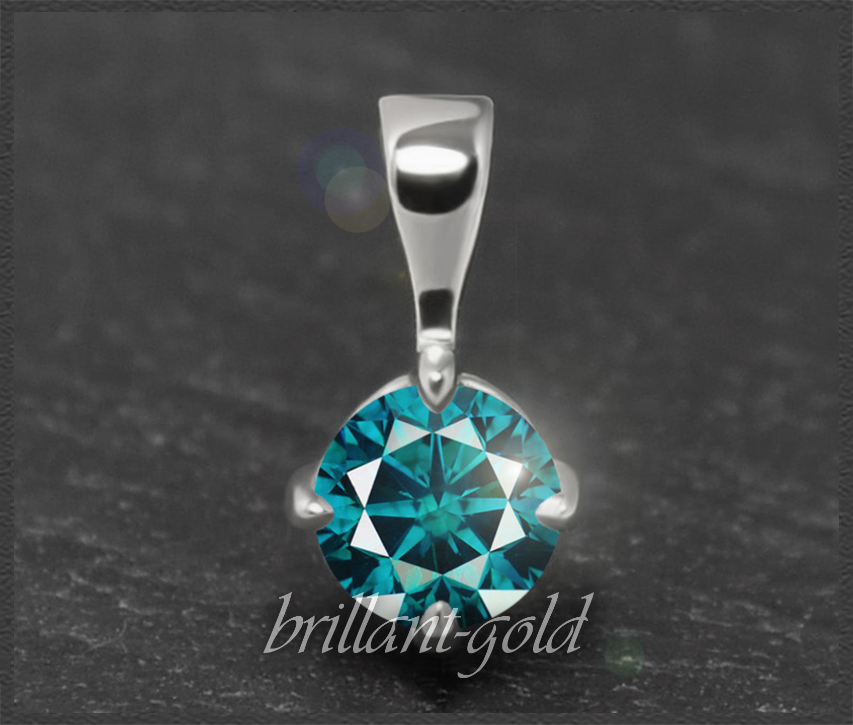 Eingefasst wurde ein blaugrüner 0,36ct Brillant in hervorragender Reinheit (VS) mit zauberhafter Brillanz.