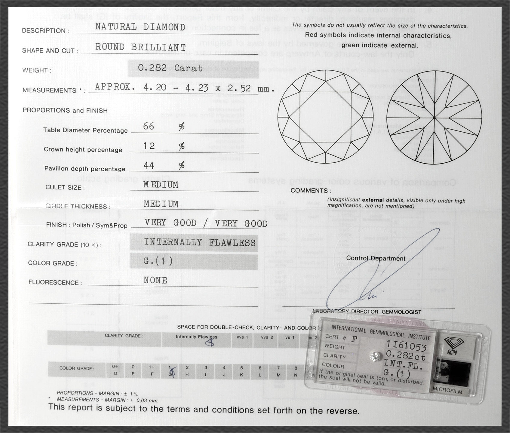 Die originalen IGI Zertifikate der eingefassten Diamanten erhalten Sie dazu. Absolute Sicherheit für Sie als Käufer!