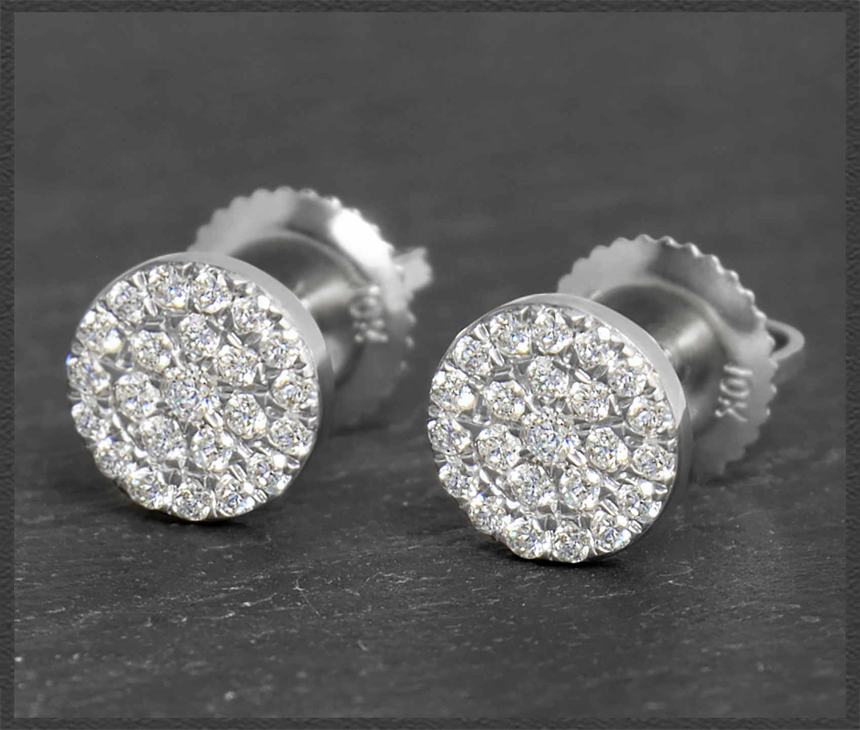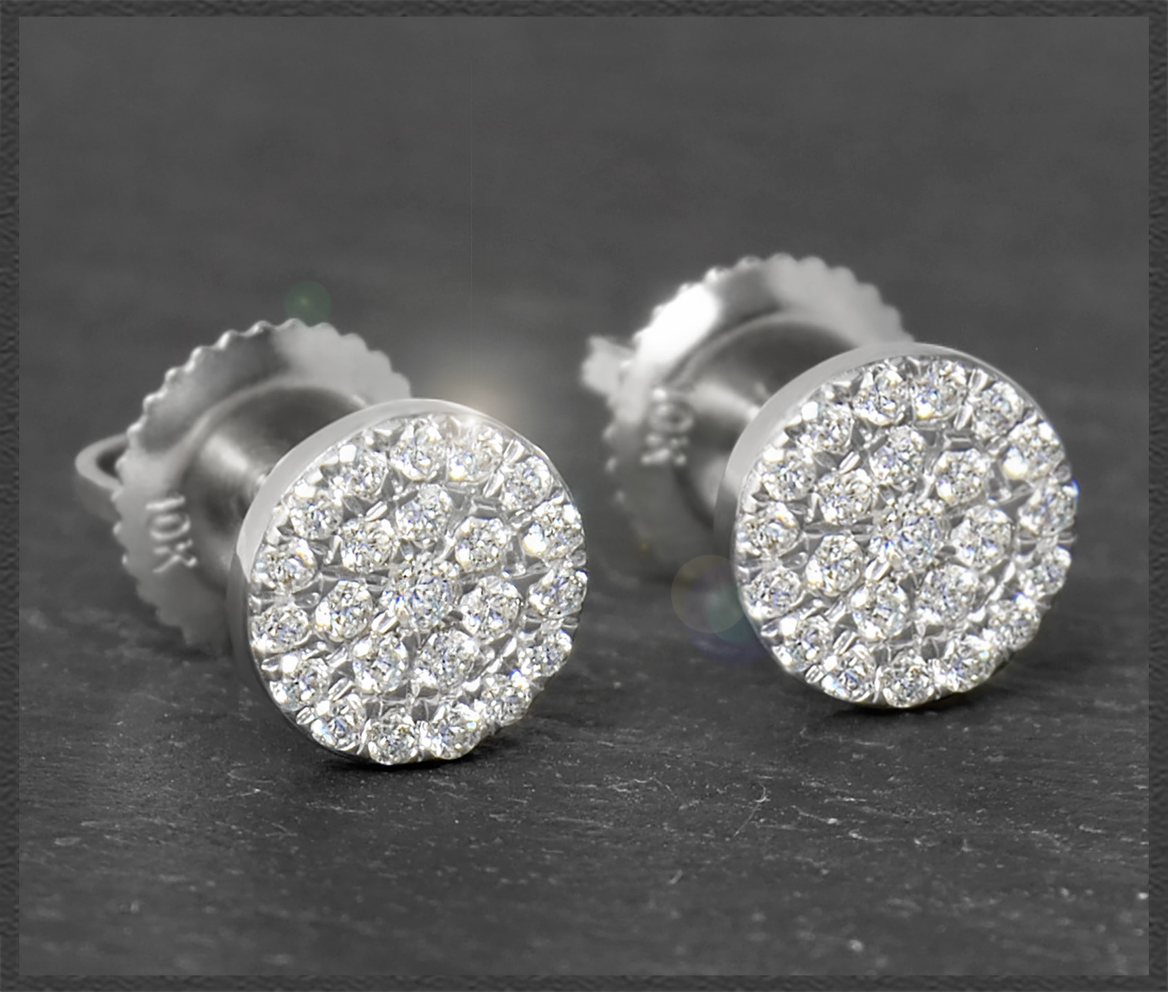 Die Diamanten sind ganz eng nebeneinander eingefasst (Micro Pave Fassung), sodass zwischen den Diamanten kaum Platz ist und somit möglichst viel Licht reflektiert wird. Zusätzlich sind die Diamanten in Weißgold eingefasst, damit sie noch schöner funkeln. Insgesamt 46 Diamanten mit zusammen 0,40ct funkeln wunderschön im Licht.