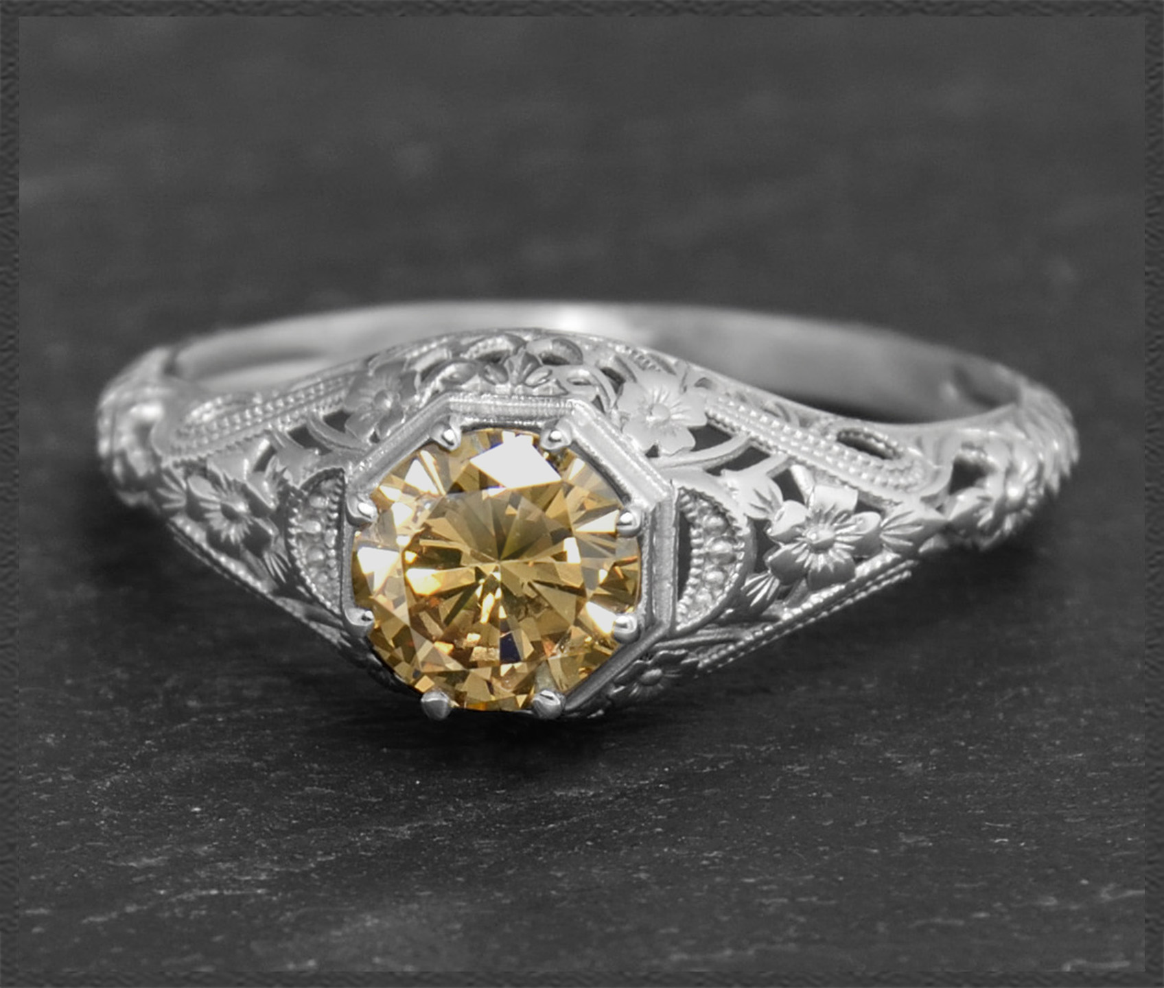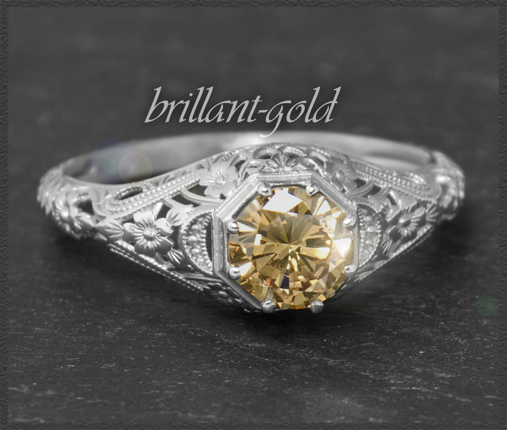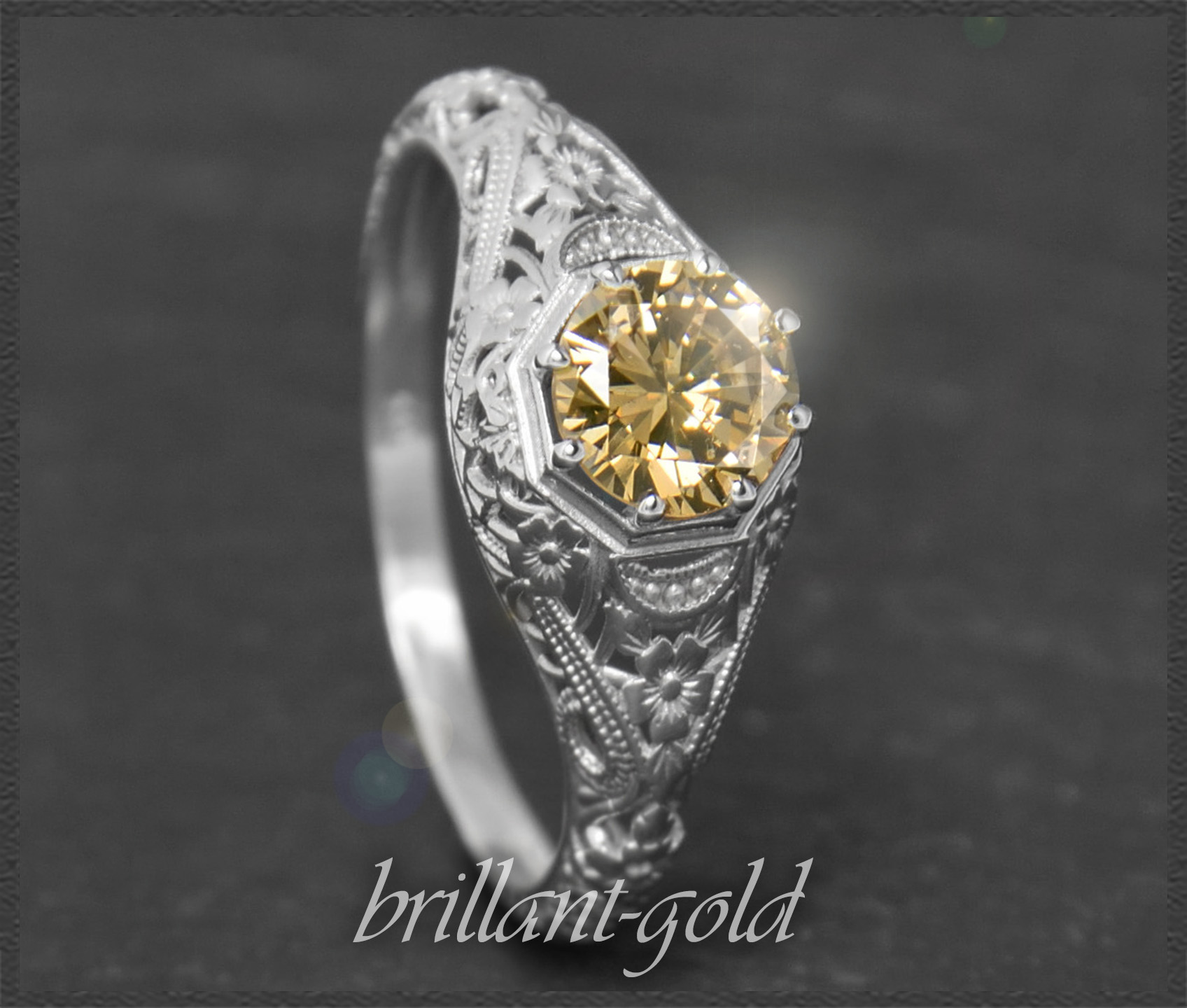 Eleganter 0,72ct Brillant Solitär Ring im Jugendstil Design, naturfarbener & unbehandelter cognac-champagner Diamant mit wunderschöner Brillanz.