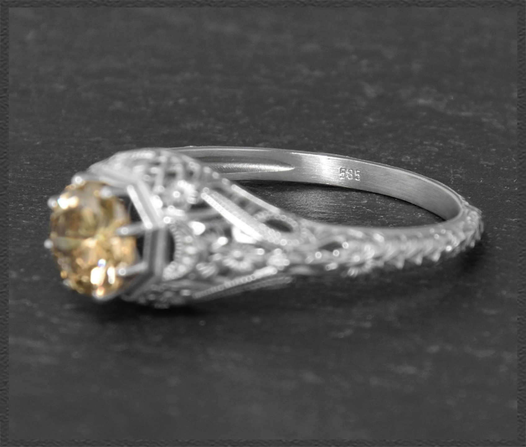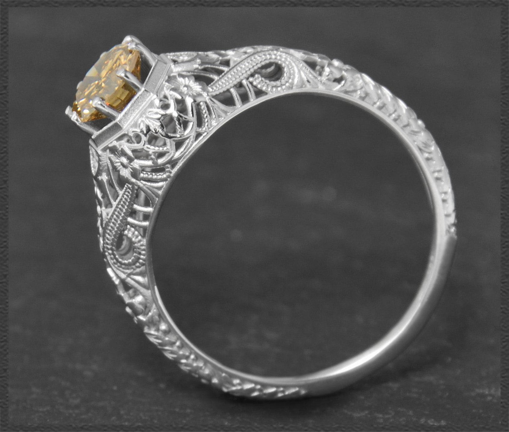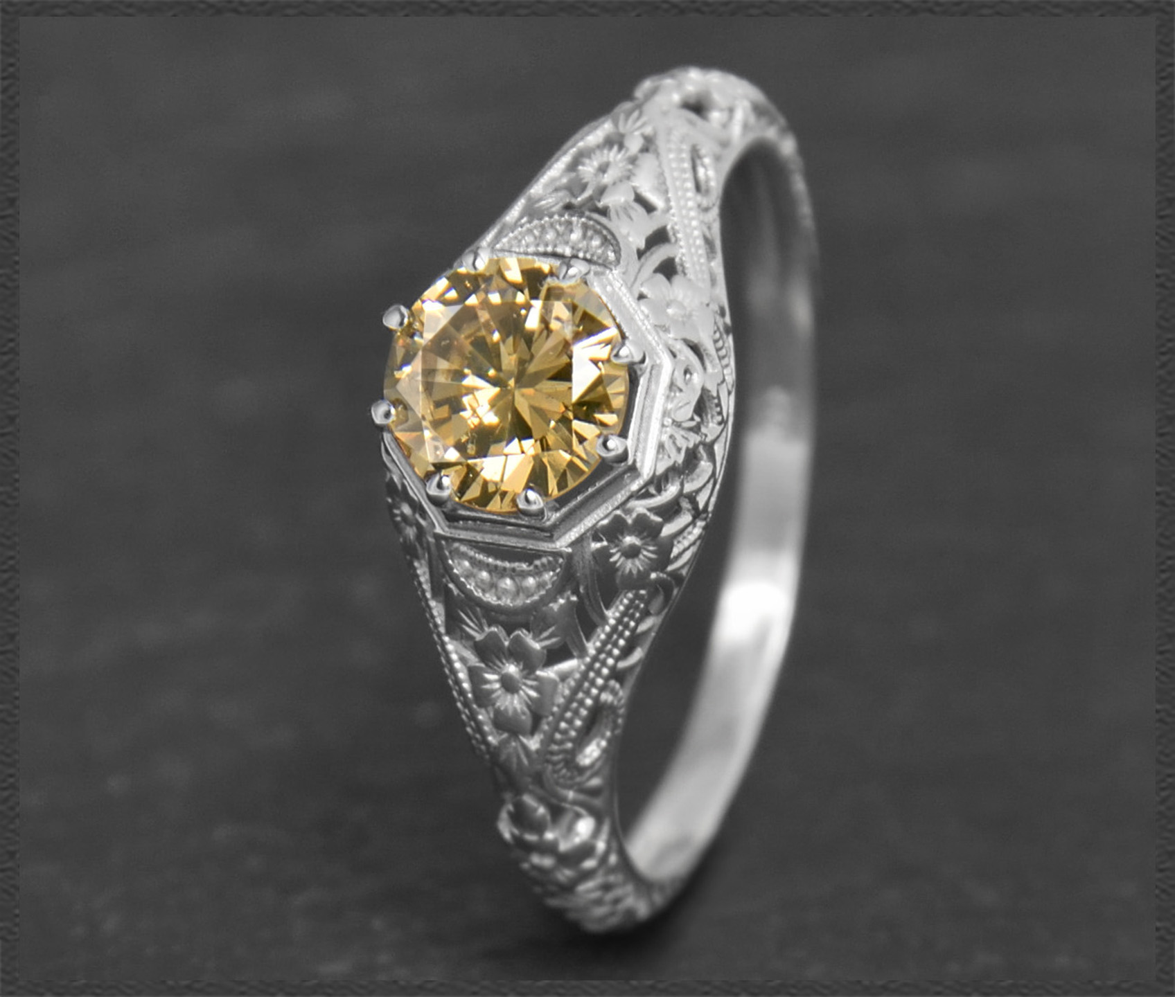 Eleganter 0,72ct Brillant Solitär Ring im Jugendstil Design, naturfarbener & unbehandelter cognac-champagner Diamant mit wunderschöner Brillanz.