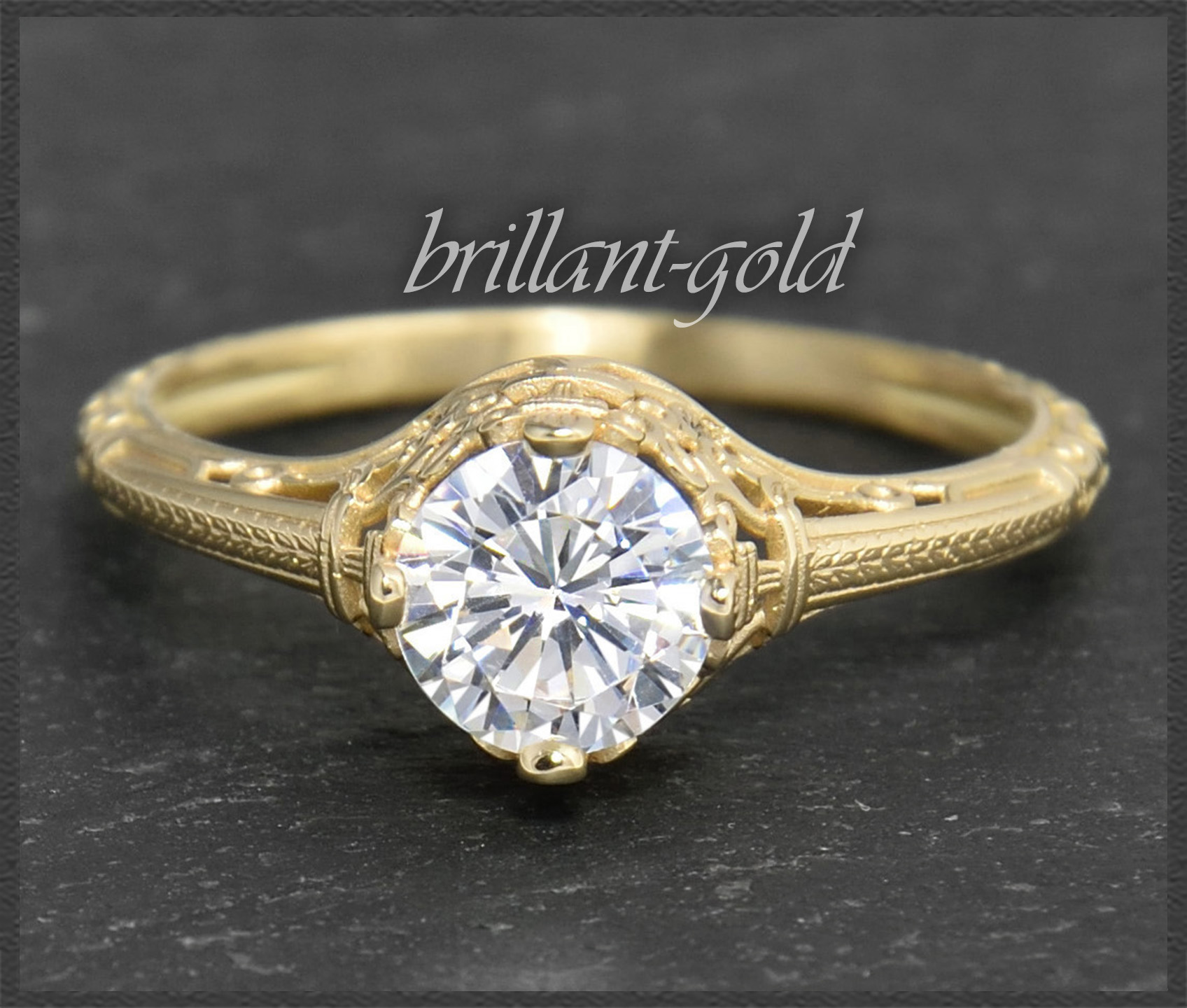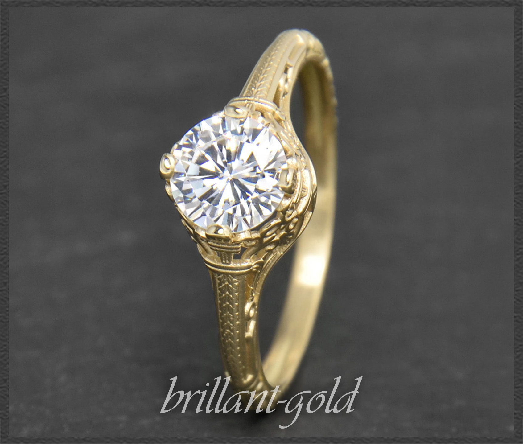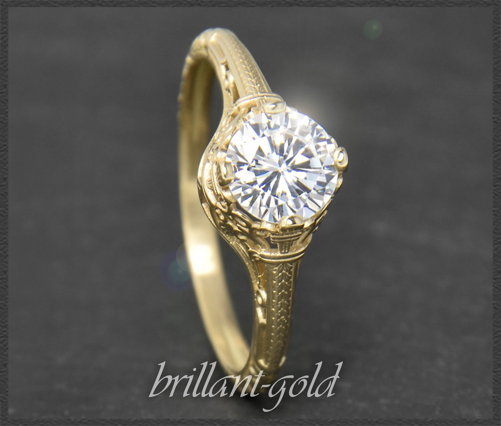Exklusiver 0,94ct Brillant Solitär Ring im Jugendstil Design, hochwertiger Brillant in der BESTEN Farbe (River D) und mit toller Brillanz.