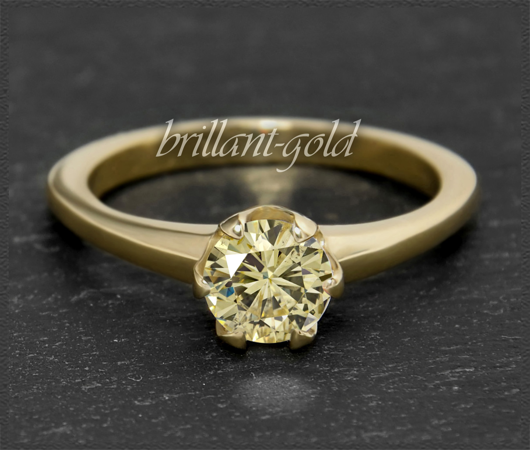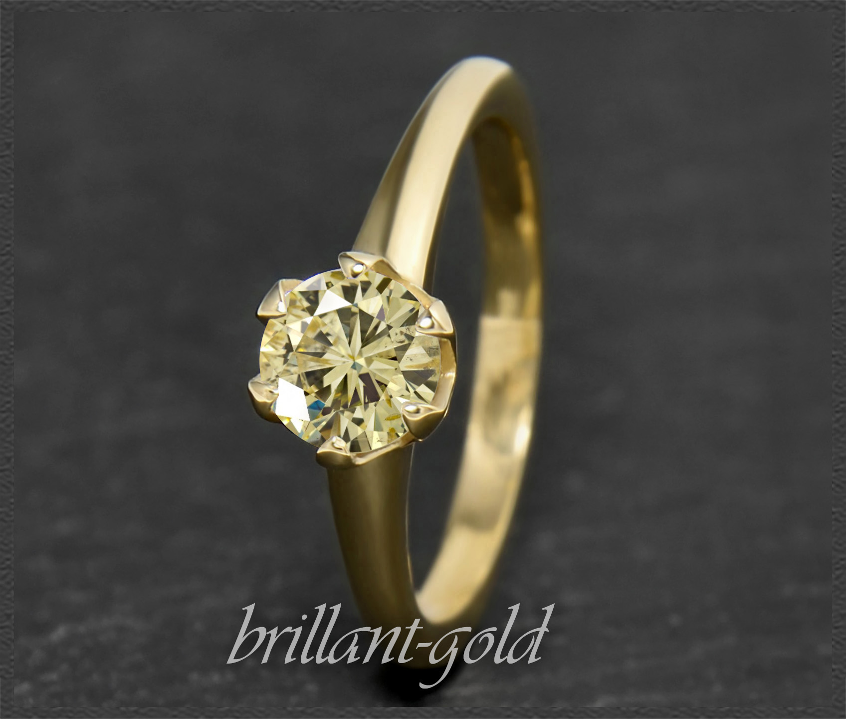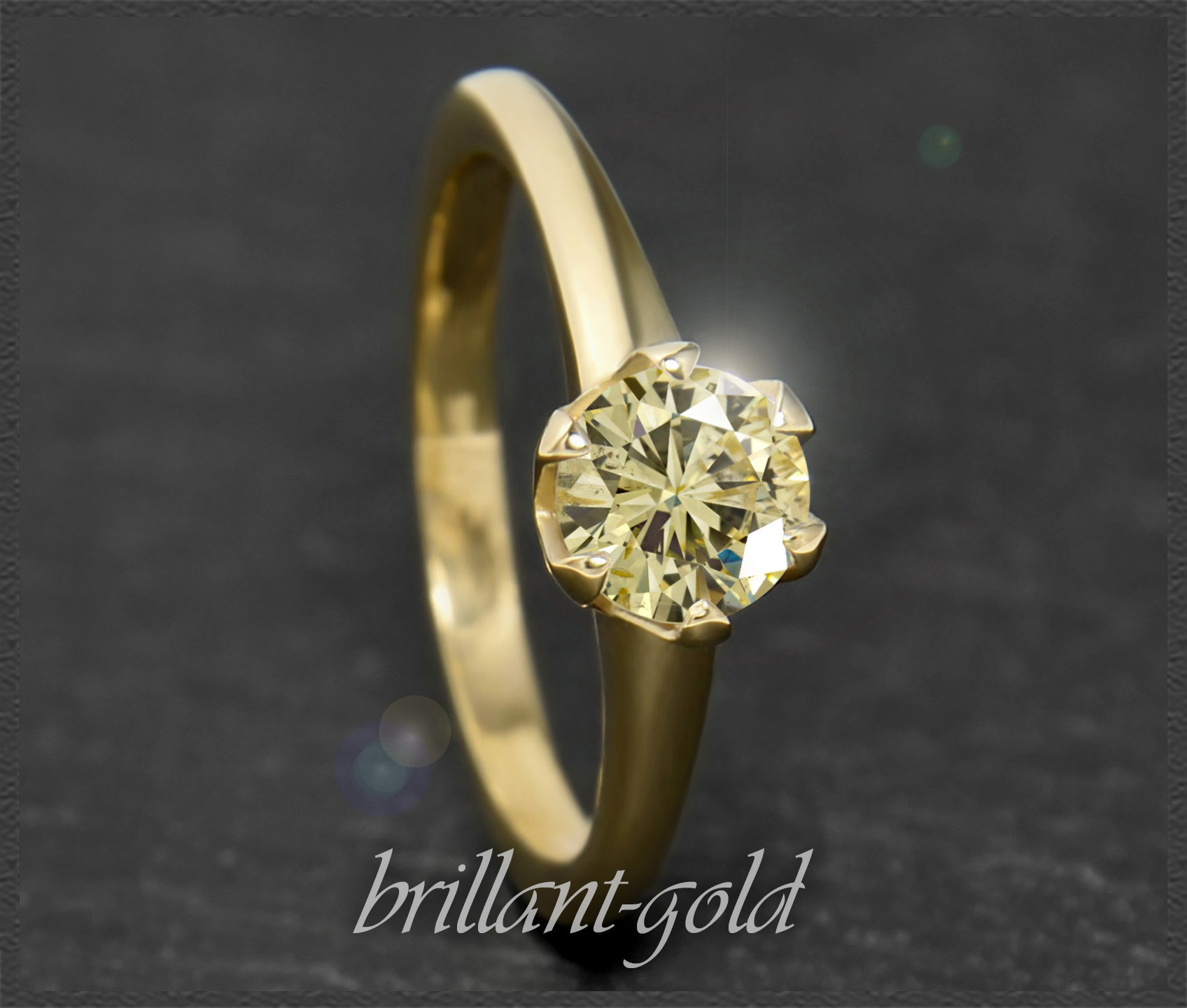 Eingefasst ist ein 5,92mm Brillant mit 1,0ct in einer zauberhaften, natürlichen Farbe.