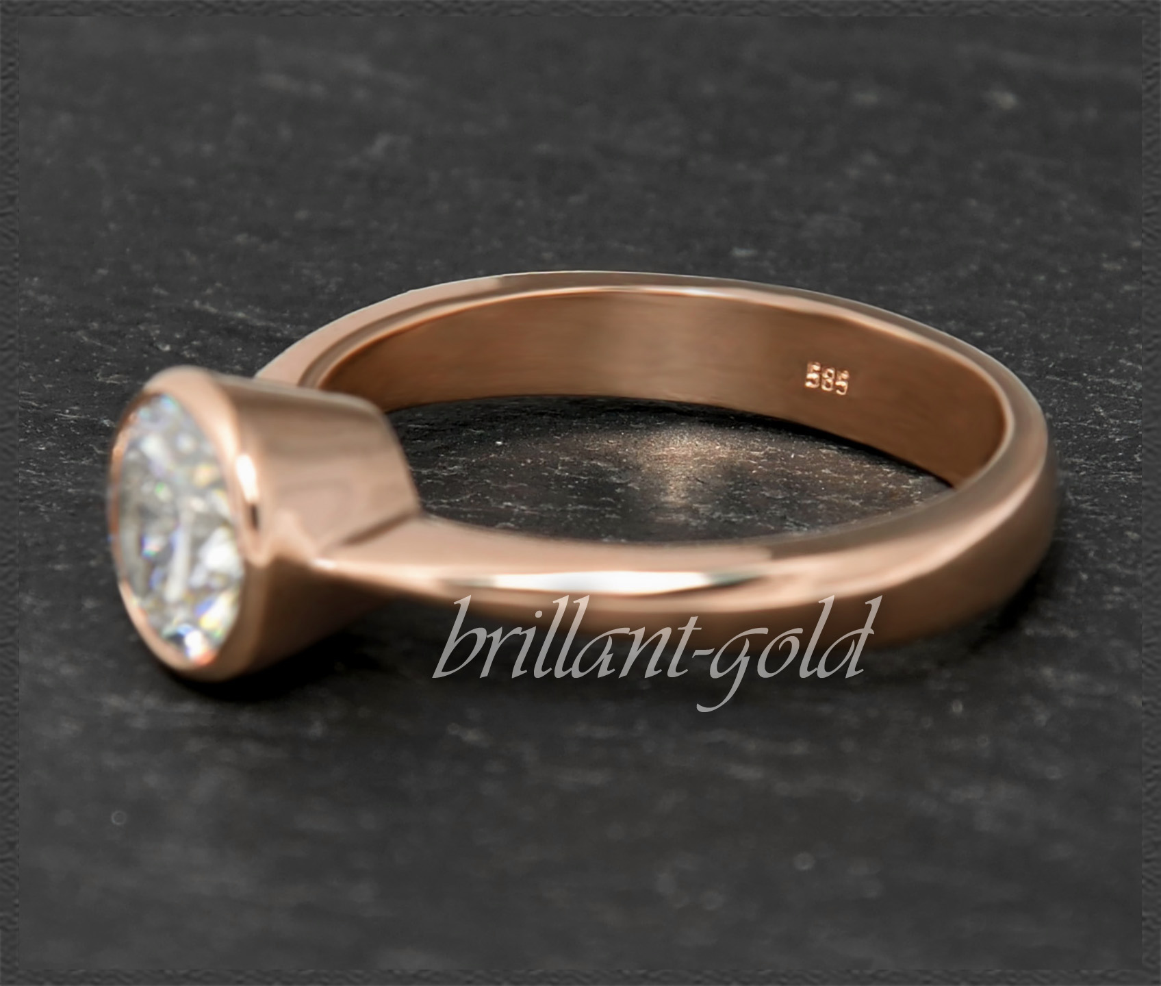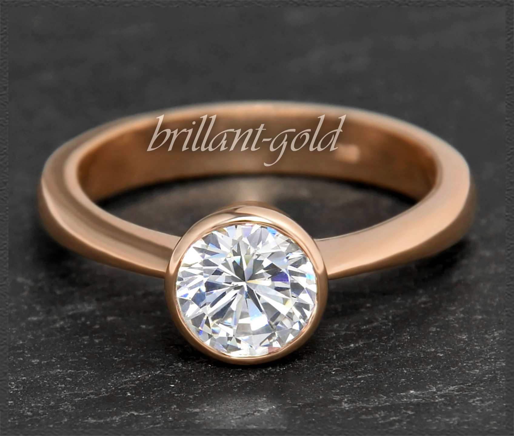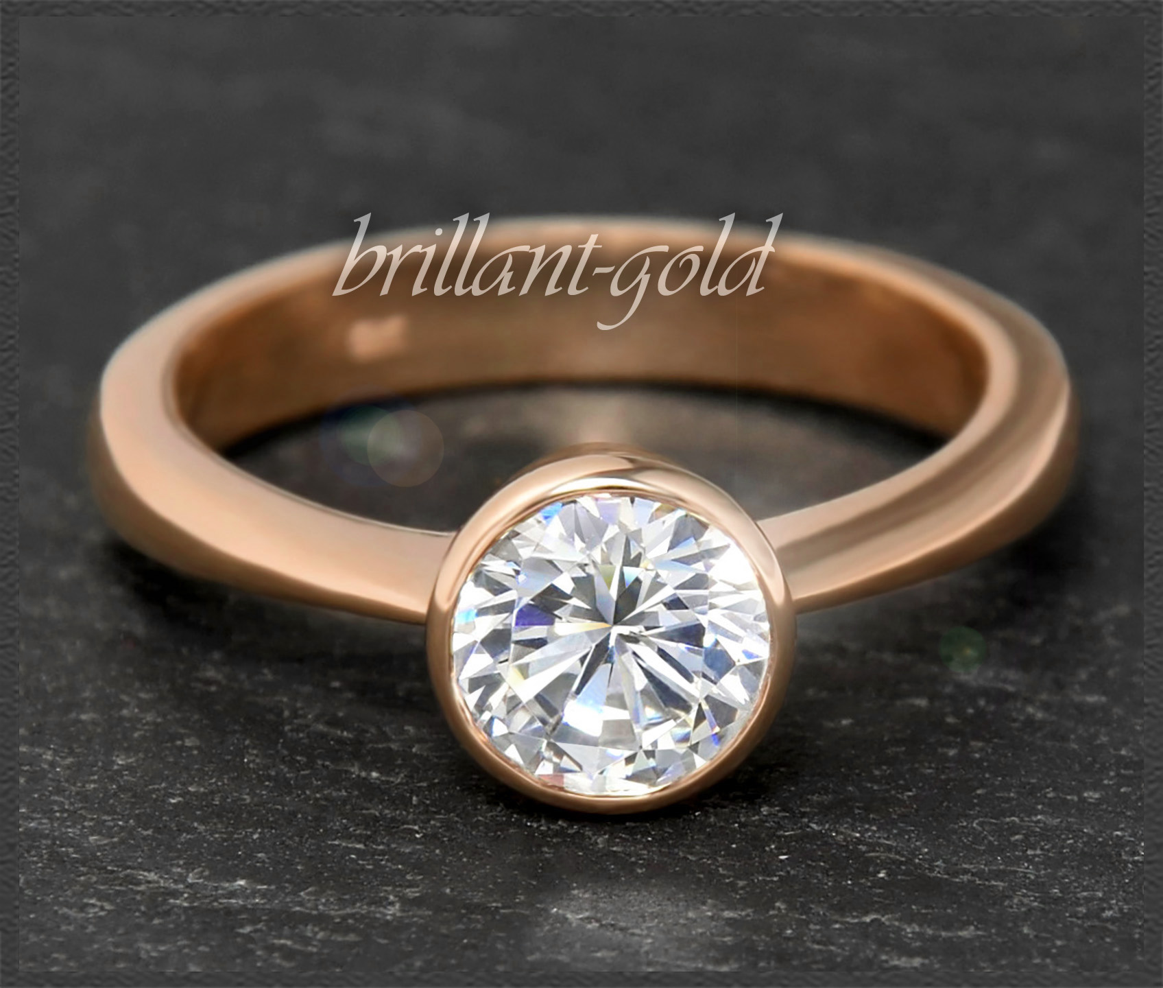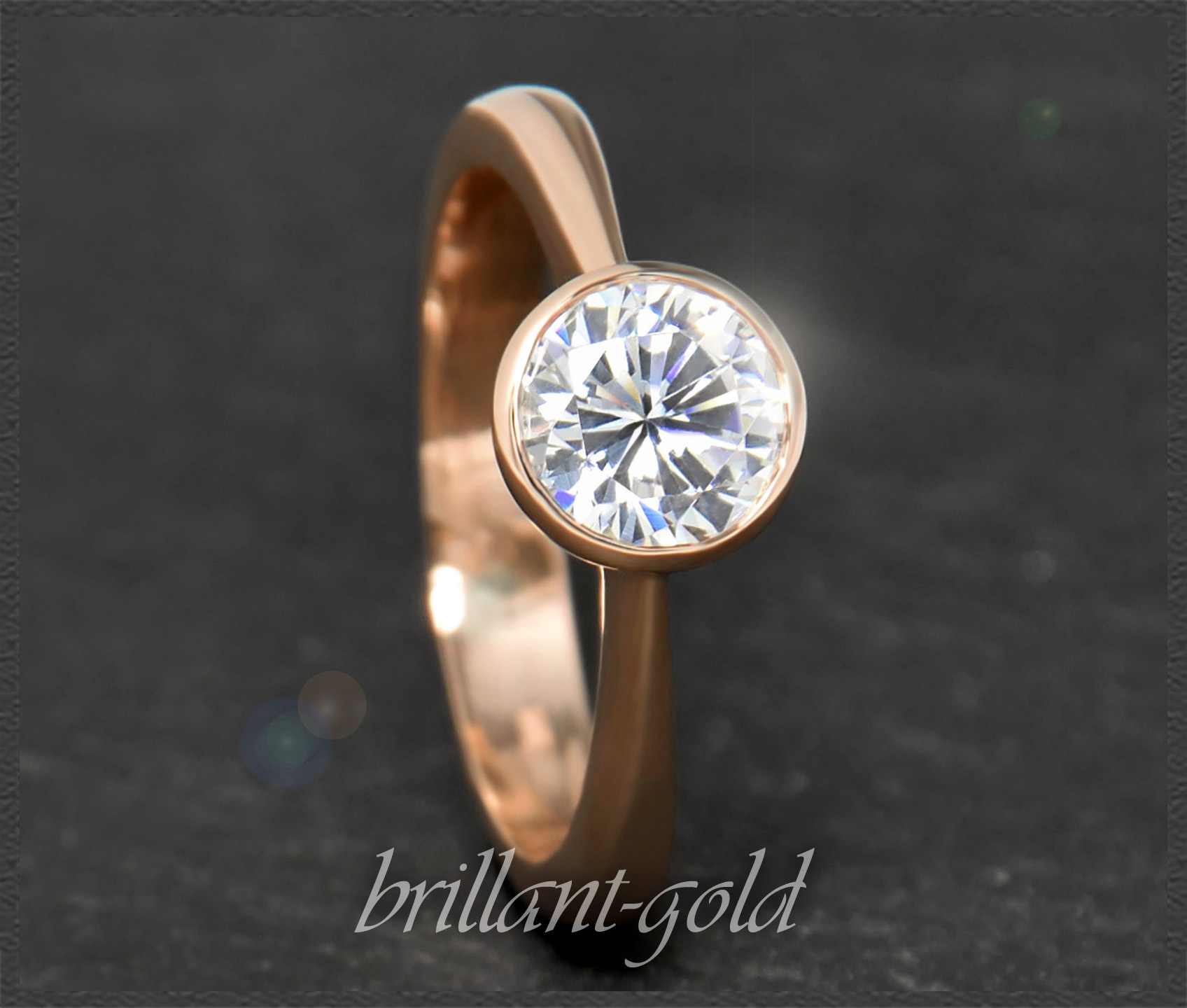 Gefasst in einer Zargenfassung ist ein 1,04ct Brillant in einer sehr guten Qualität (Top Wesselton G & Si2-3). Der Brillant funkelt zauberhaft im Licht.