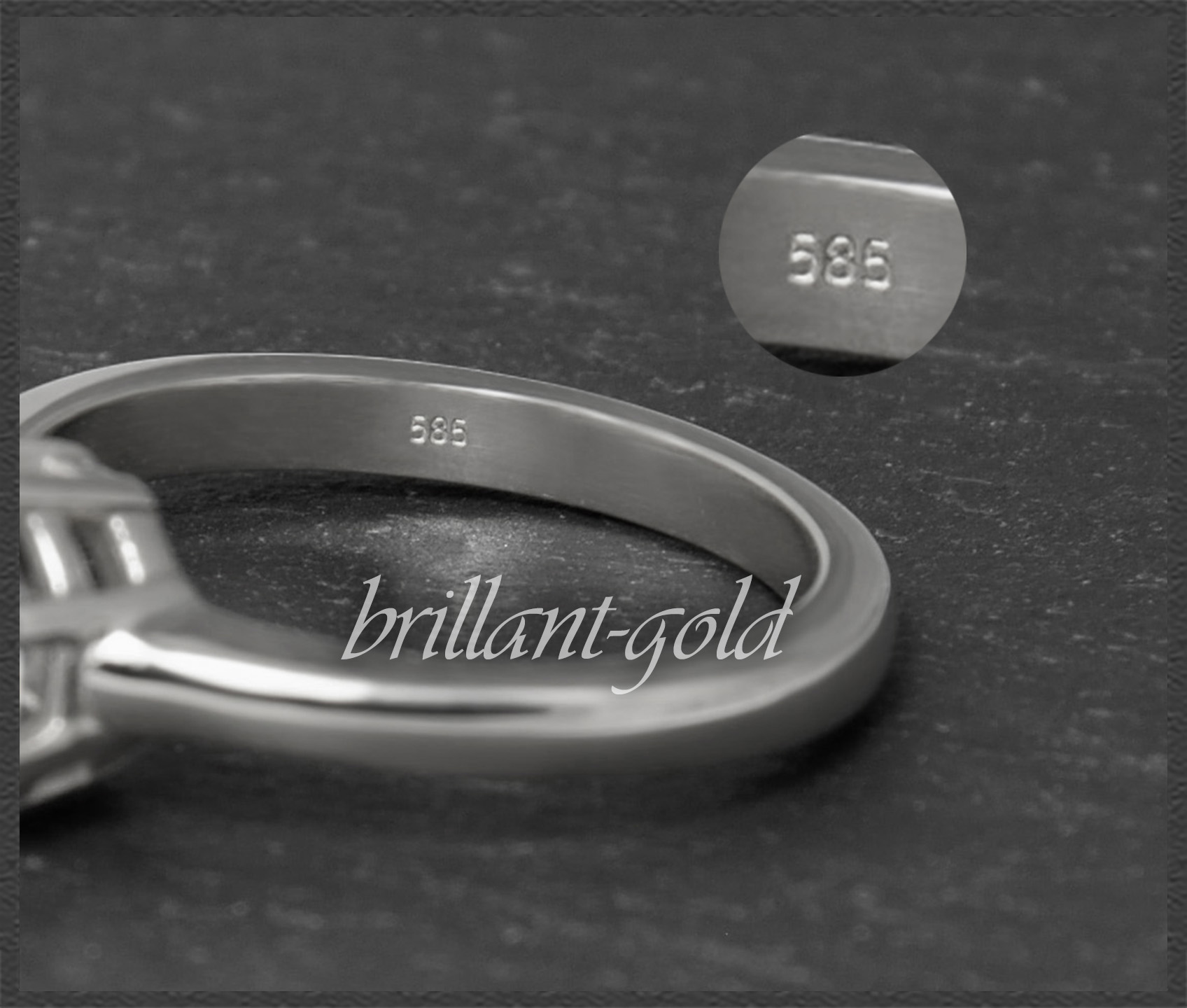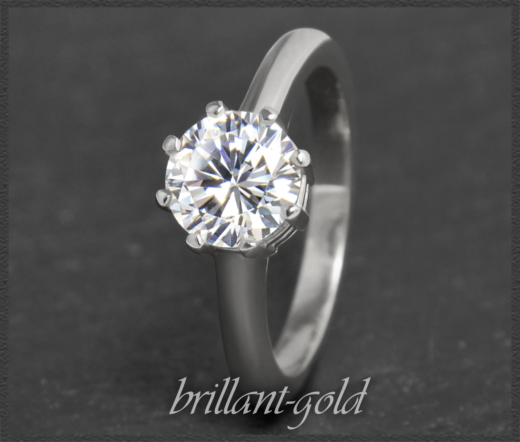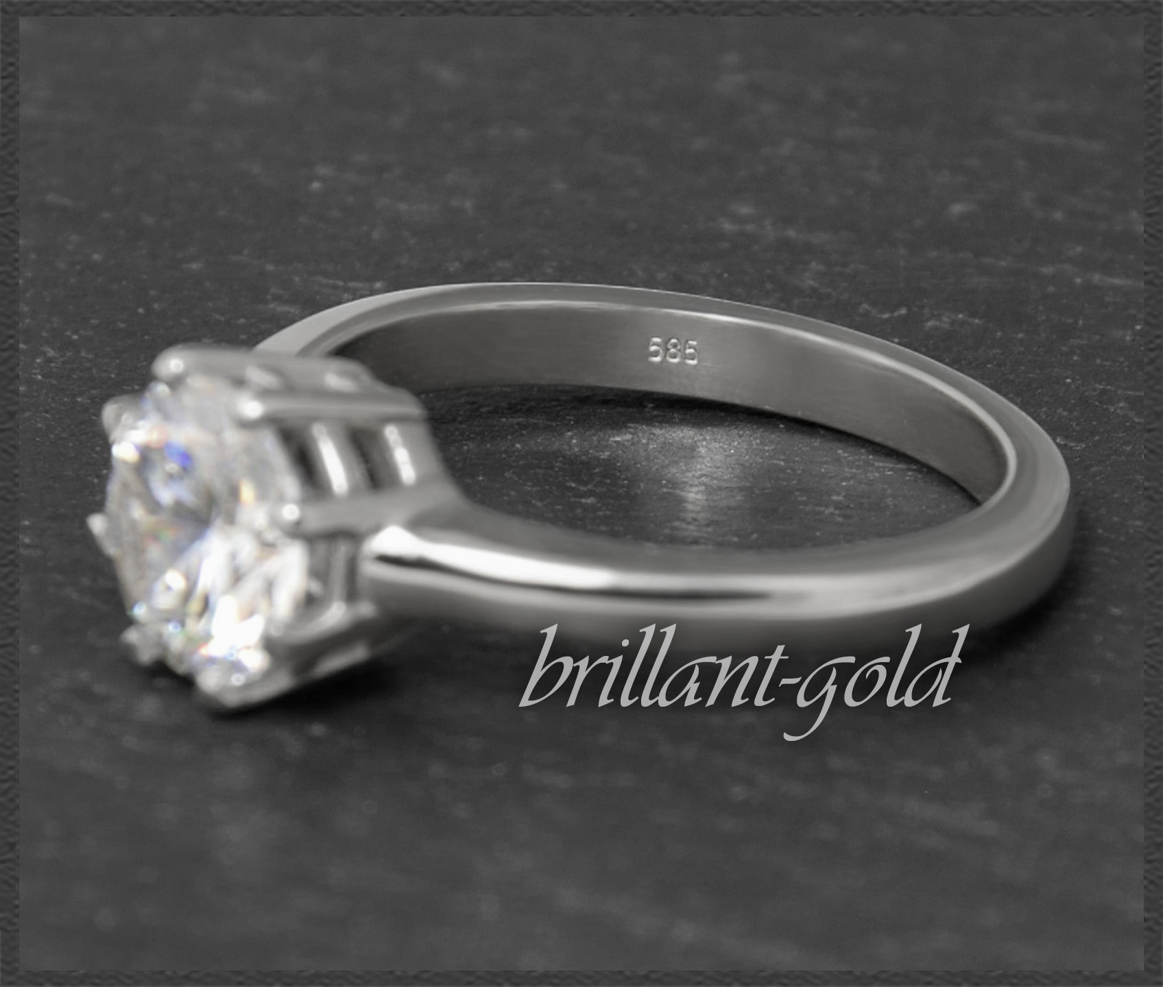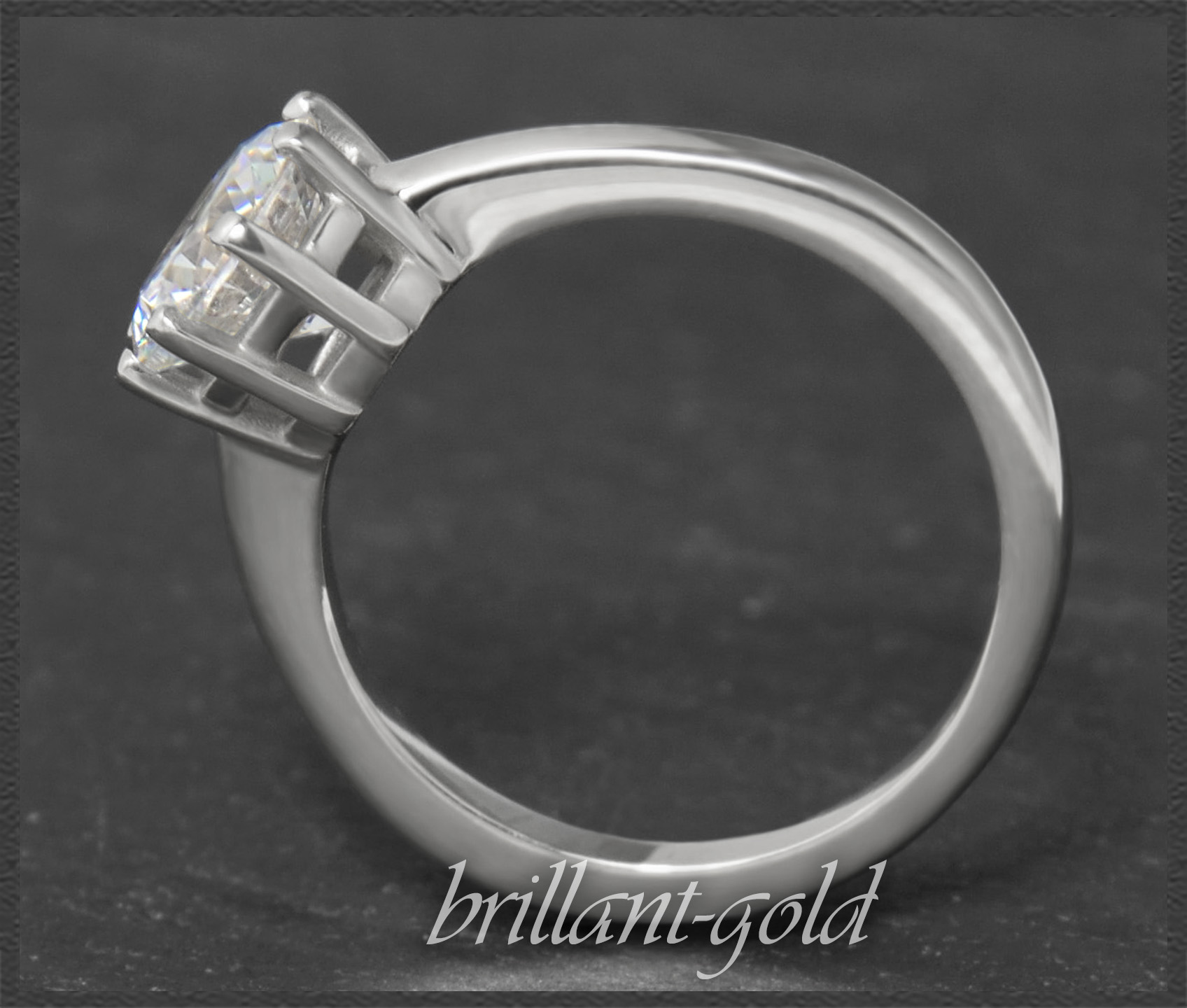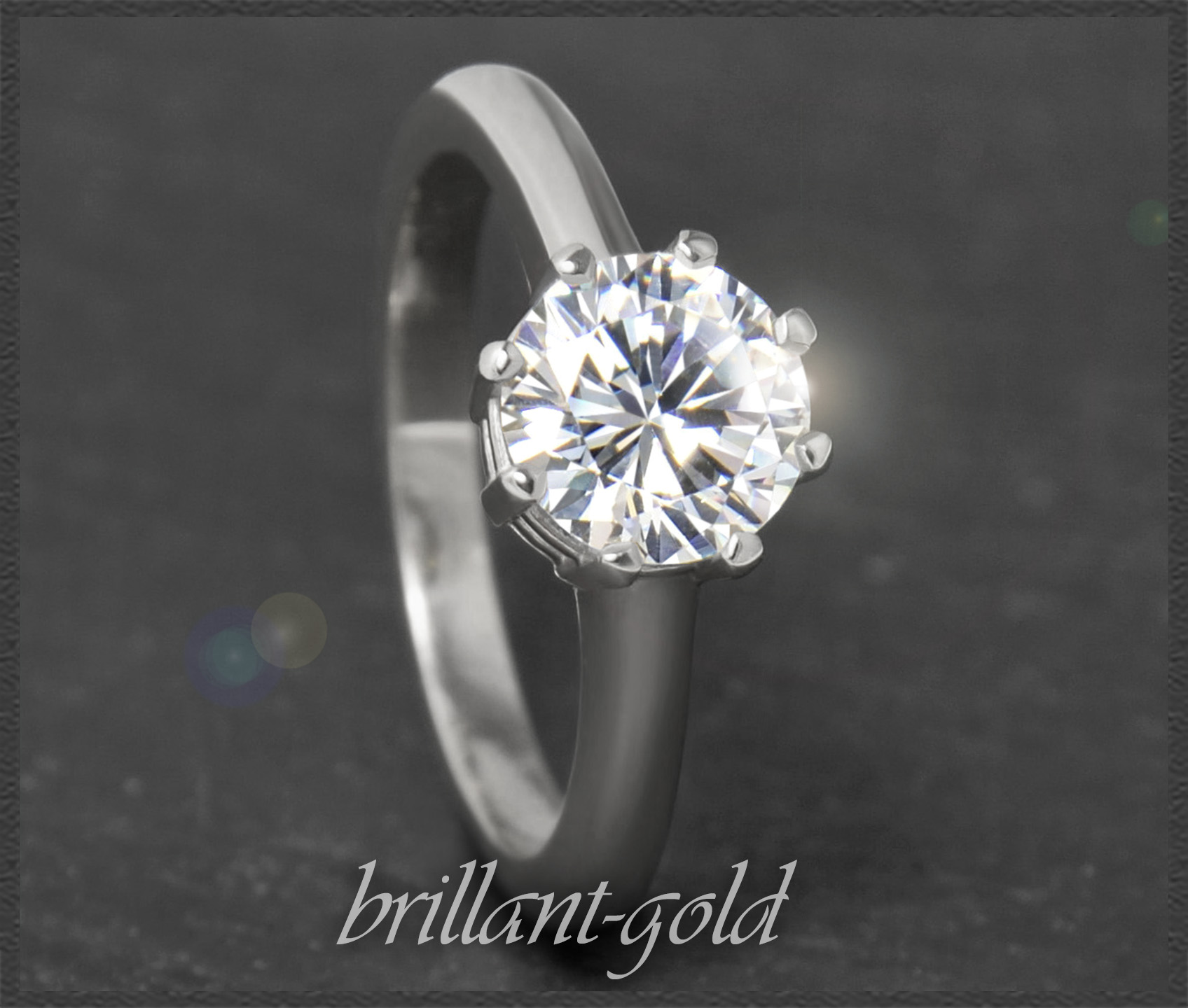 Eingefasst wurde ein 7,75mm großer, natürlicher Brillant mit 2,01ct in guter Reinheit (Si2). Der Brillant funkelt zauberhaft im Licht.