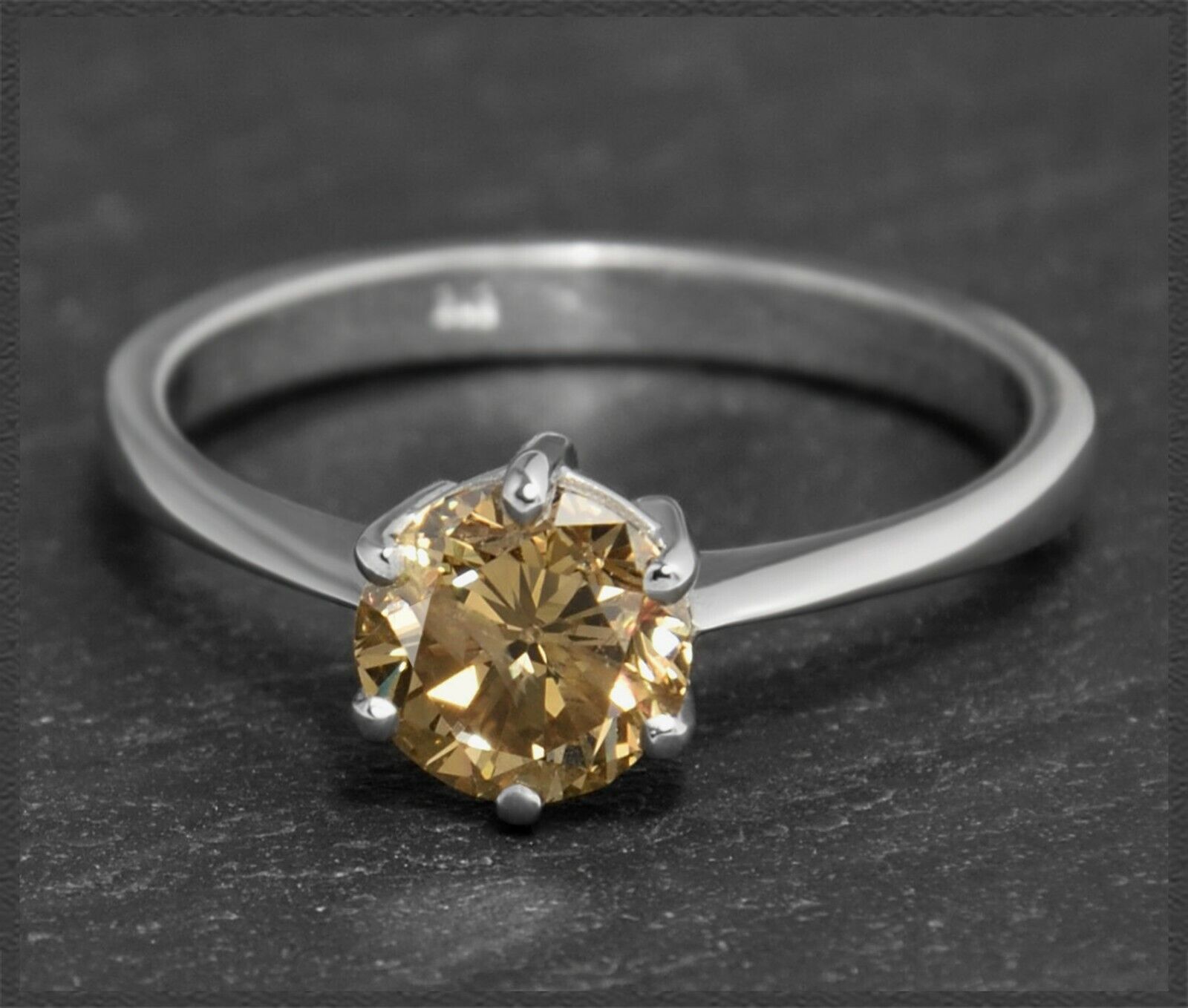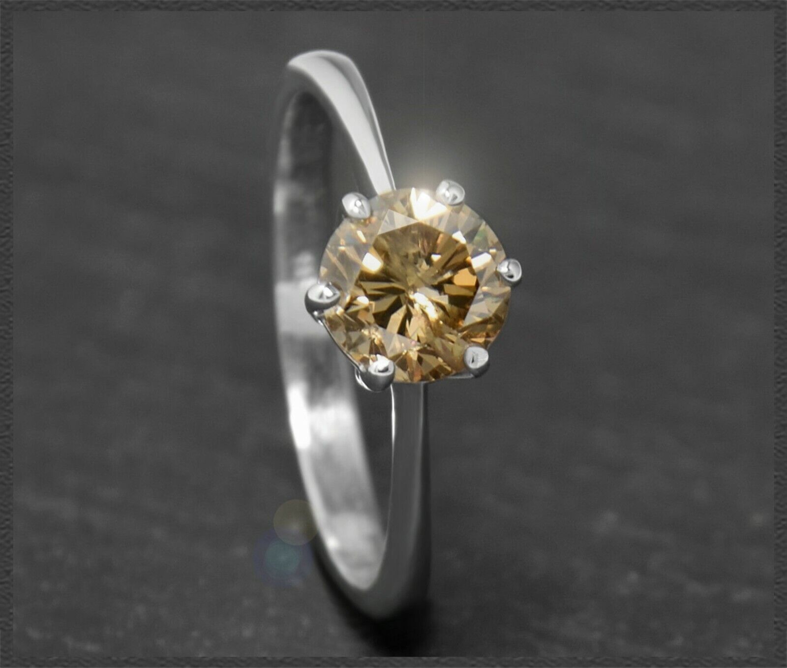 1,18ct Brillant Solitär Ringmit einem Cognac-Champagner Brillanten der wunderschön im Licht funkelt.