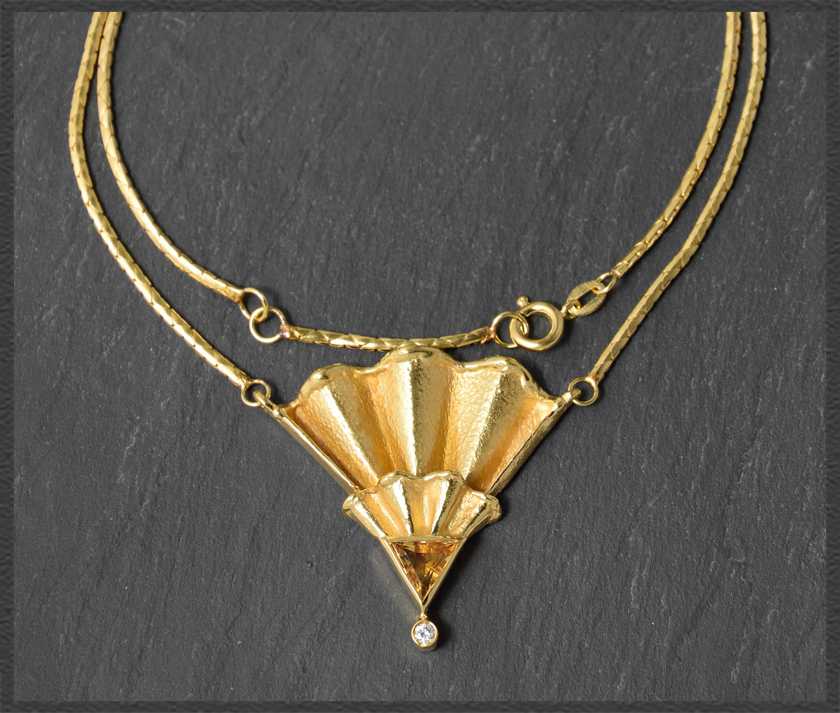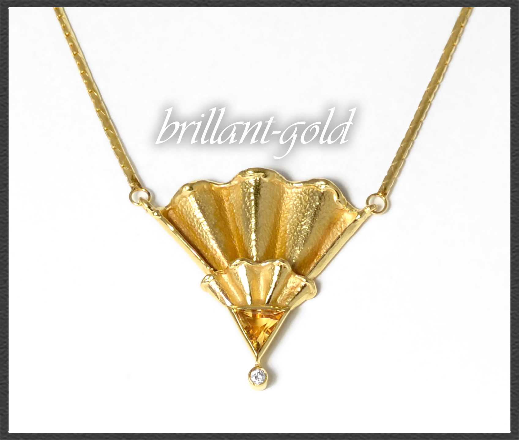 Extravagantes Designerschmuck-Collier mit einem gelben Citrin im Triangel-Schliff und einem funkelnden 2,10mm Brillanten.