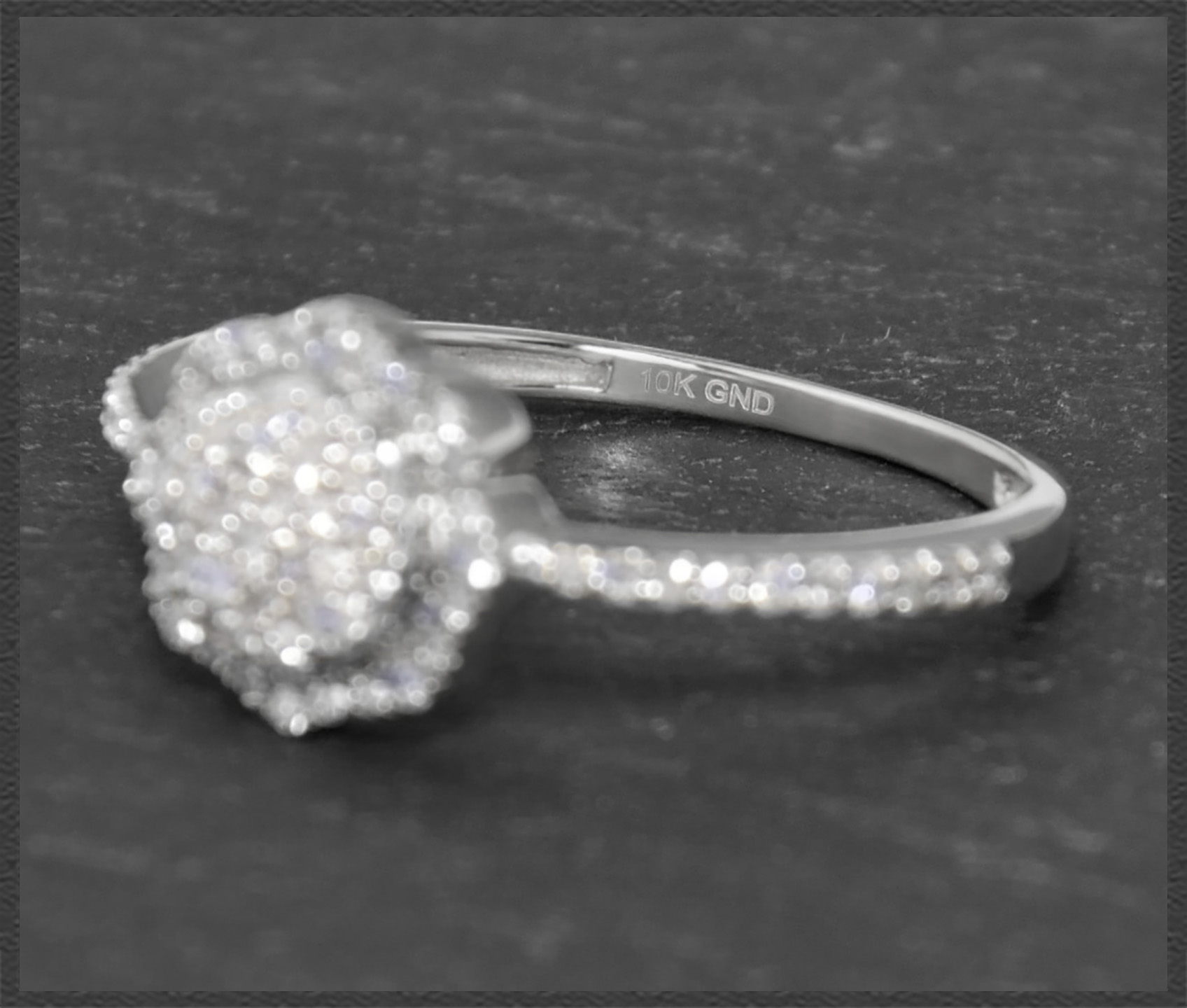 Die Diamanten sind ganz eng nebeneinander eingefasst (Micro Pave Fassung), sodass zwischen den Diamanten kaum Platz ist und somit möglichst viel Licht reflektiert wird. Insgesamt 68 Diamanten mit zusammen 0,38ct funkeln wunderschön im Licht.