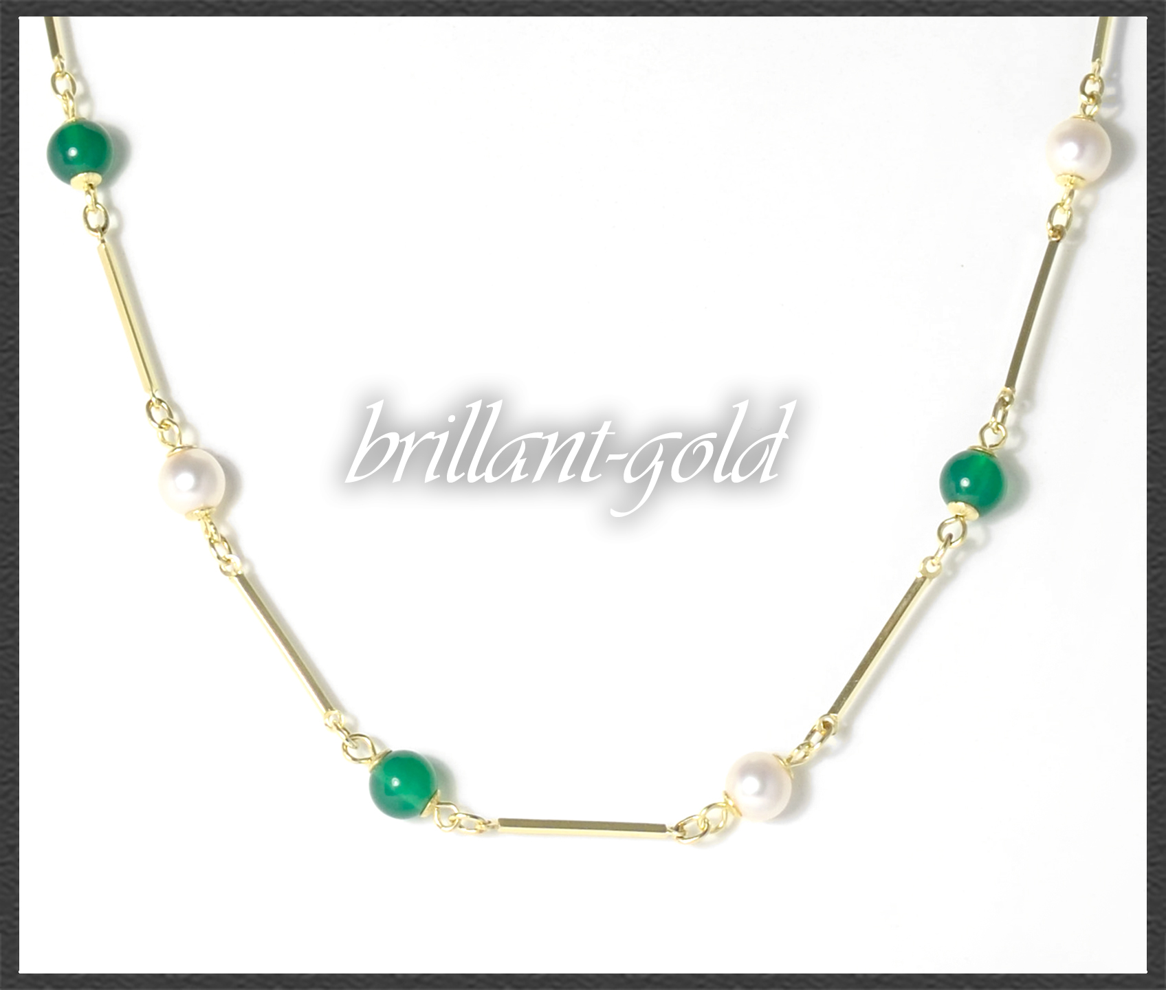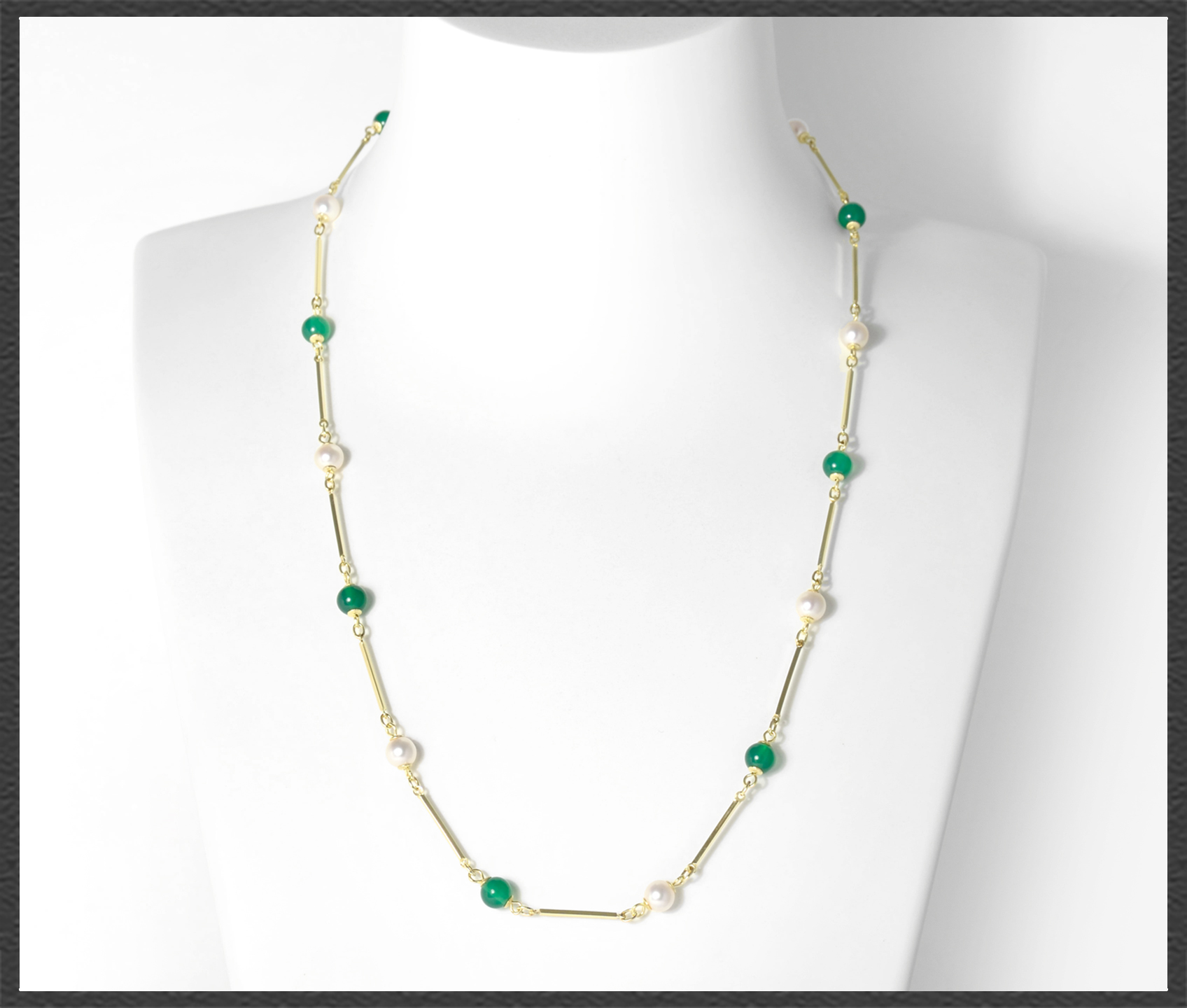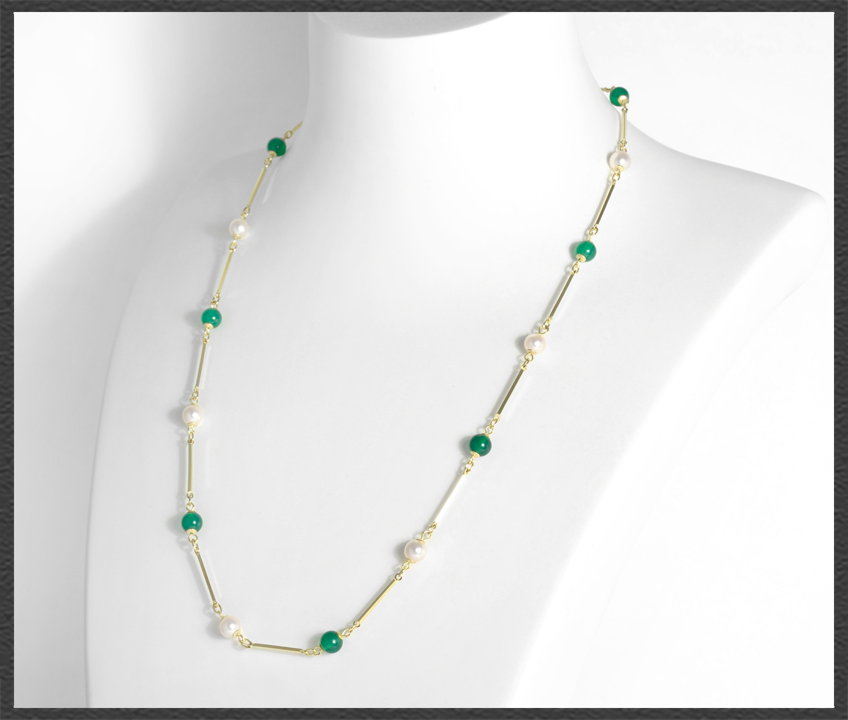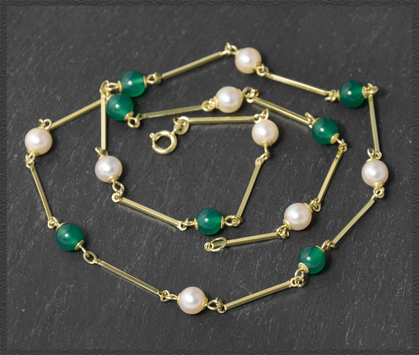 Elegantes Collier mit 6mm Kugeln, abwechselnd weiße Perlen & grüne Chrysprase.