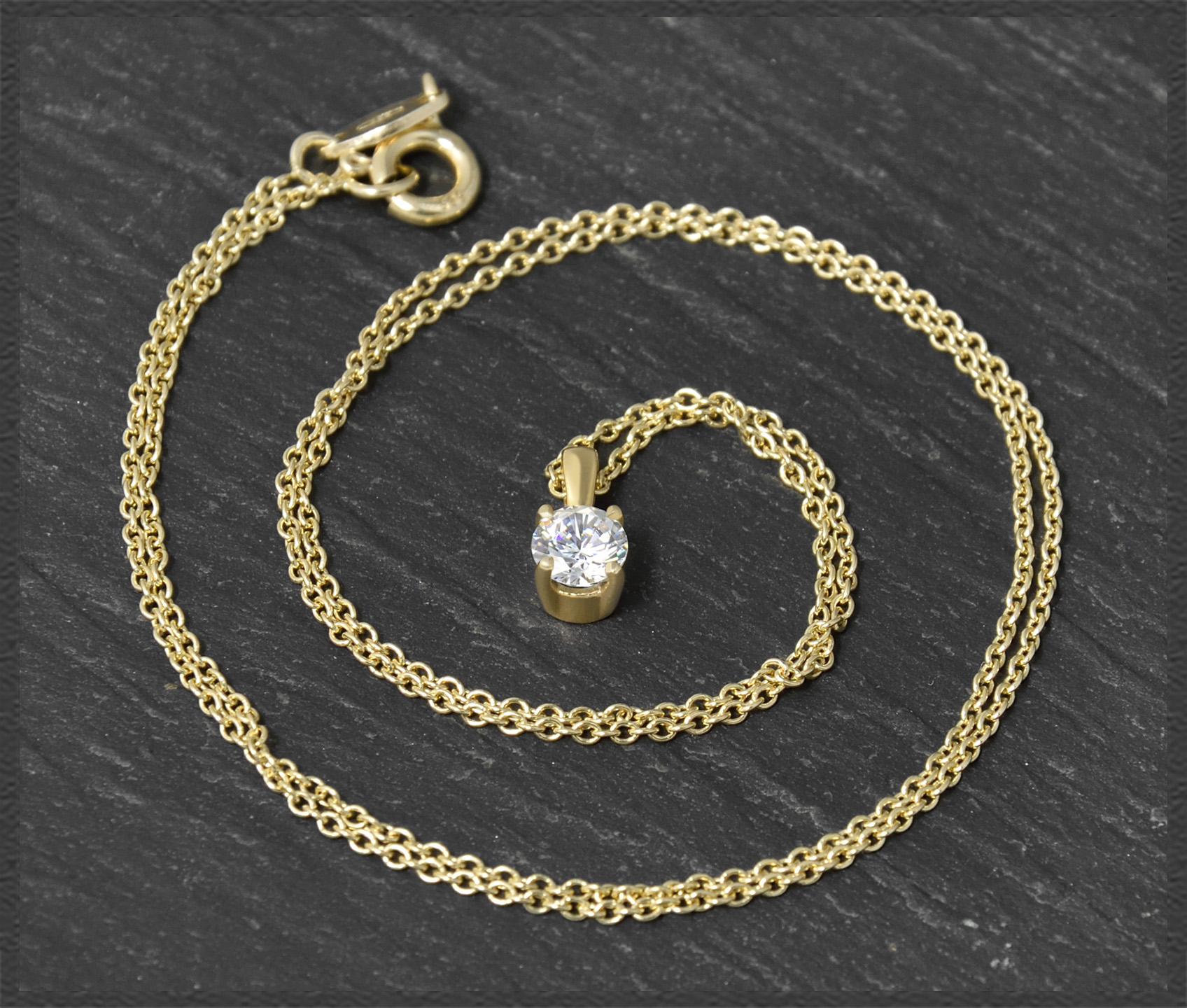 Der Anhänger und die Kette wurden angefertigt aus 585 Gelbgold, mit einem hochglanz-polierten Finish.