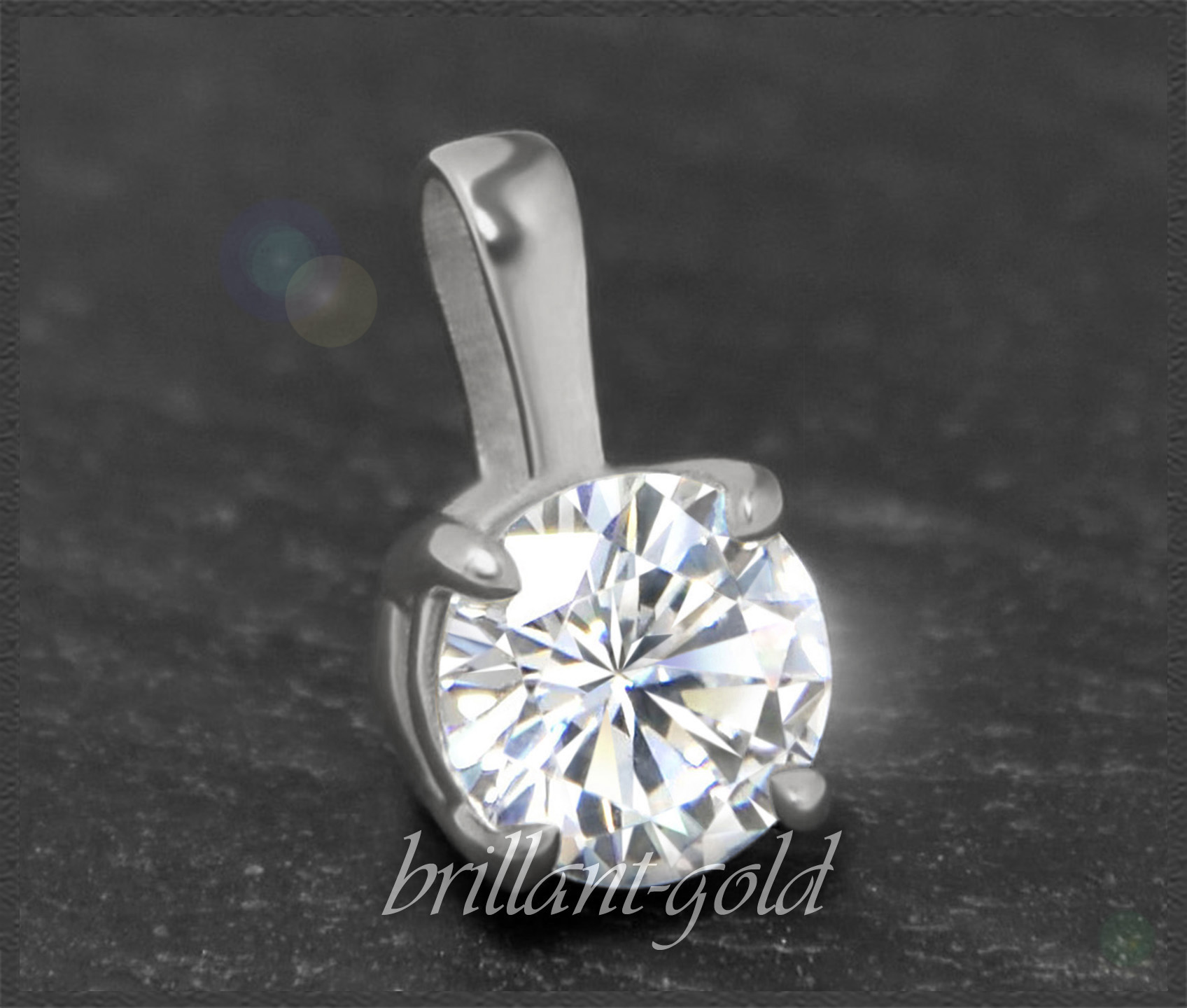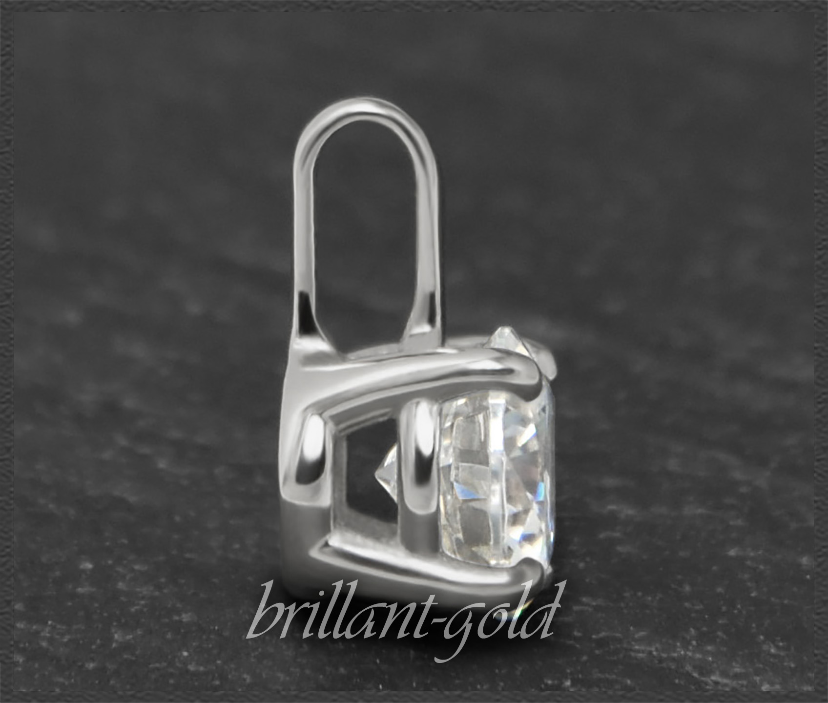 Gefasst ist ein 6,40mm großer Solitär Brillant mit 1,02ct in sehr guter Qualität (River E & Si2-3). Der Diamant funkelt zauberhaft im Licht.