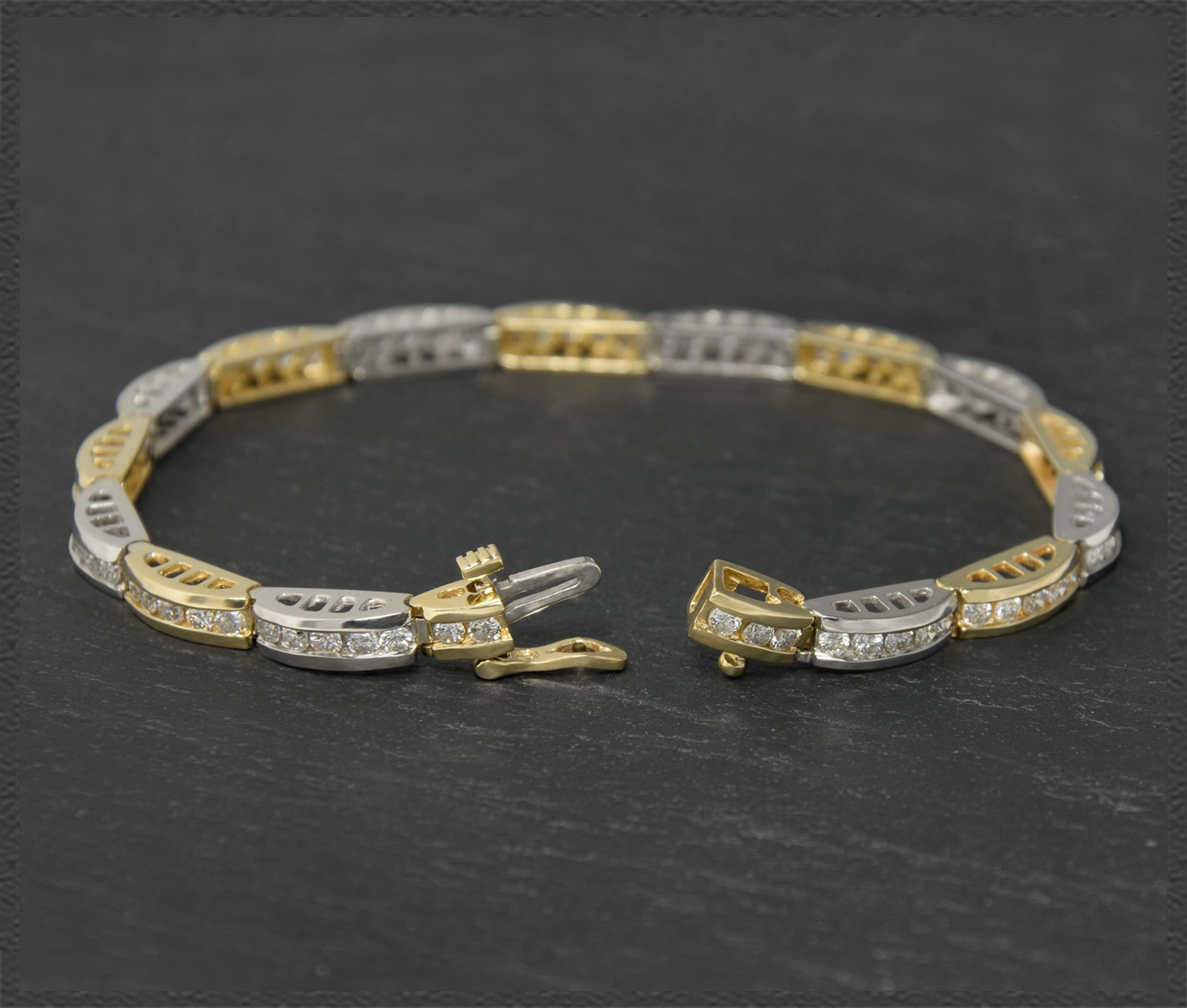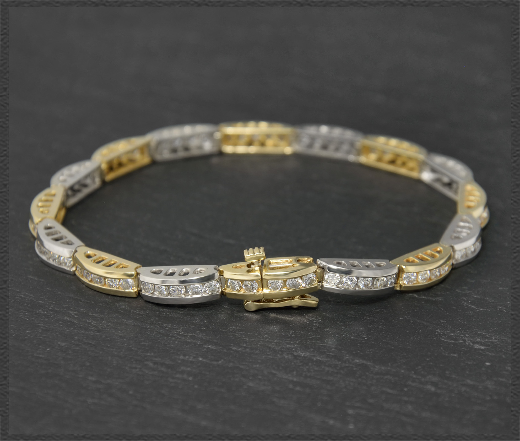 80 hochwertige Brillanten, je 2,10mm Durchmesser, mit zusammen 3,20ct sind in dem Armband eingefasst und funkeln wunderschön im Licht.