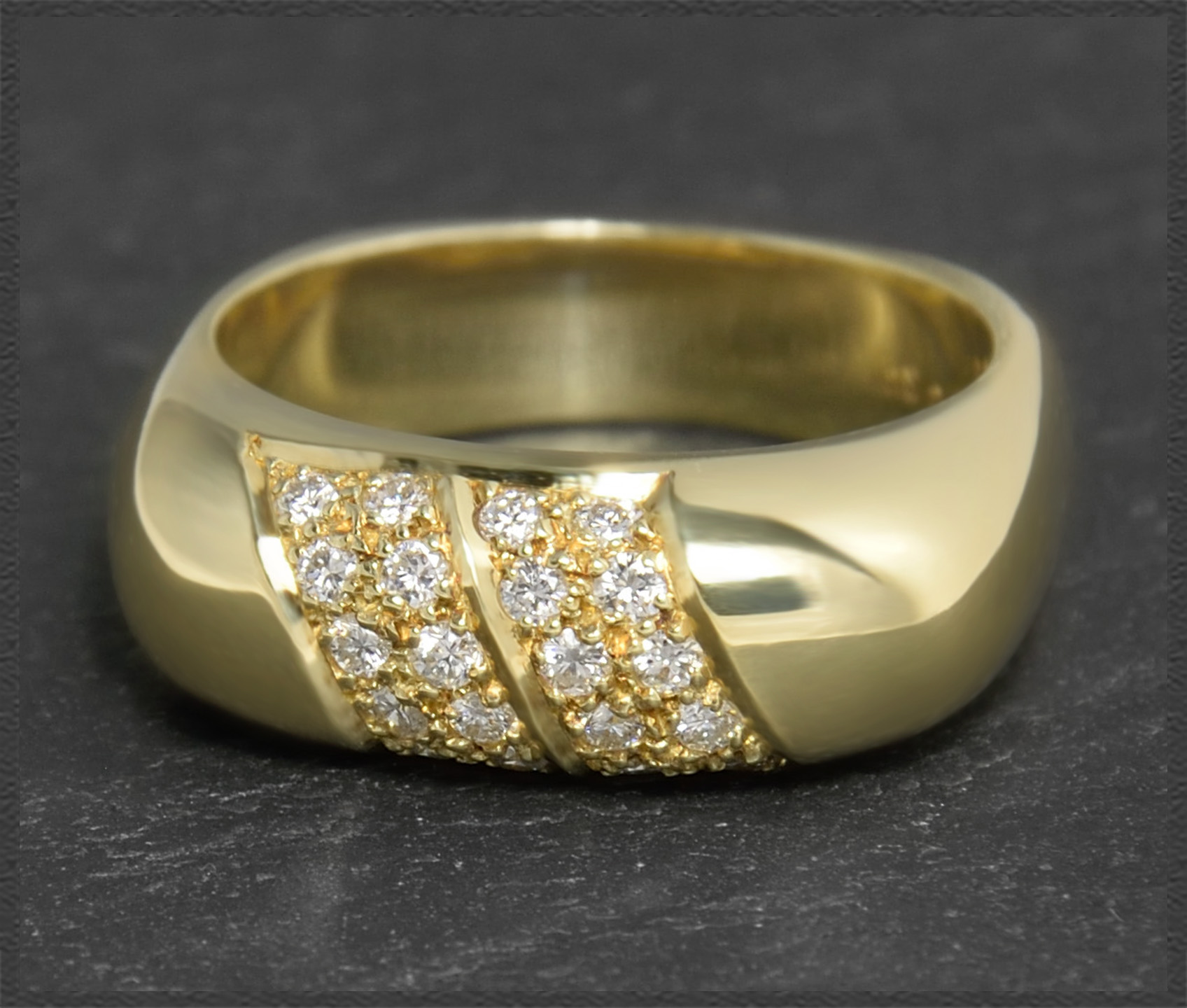 Gefertigt vom Goldschmied-Meister in Handarbeit (Meisterpunze im Ring) aus massivem 585 Gelbgold, hochglanzpoliert.