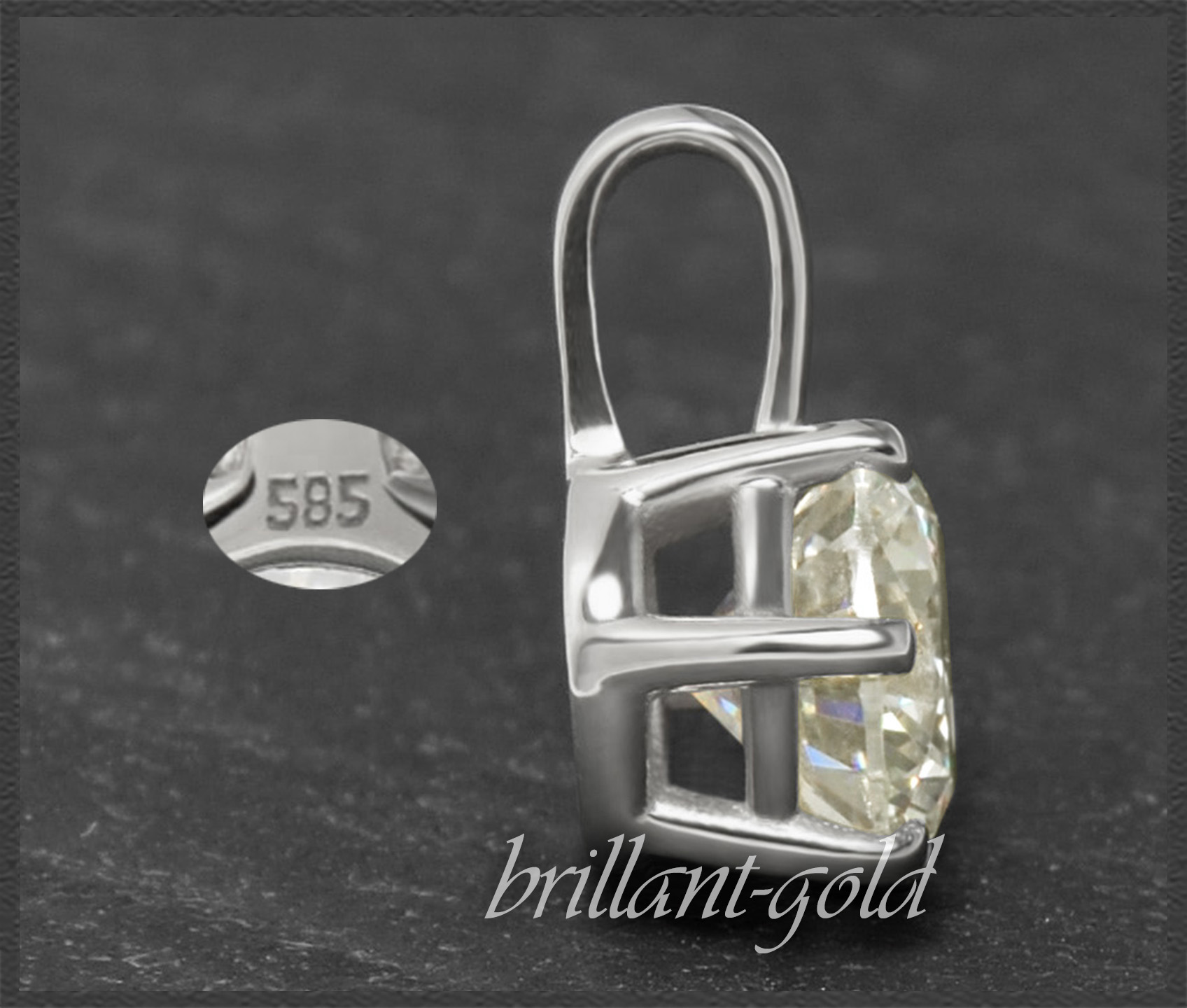 Der Diamantanhänger ist aus massivem 585 Weißgold und er ist hochglanz-poliert.