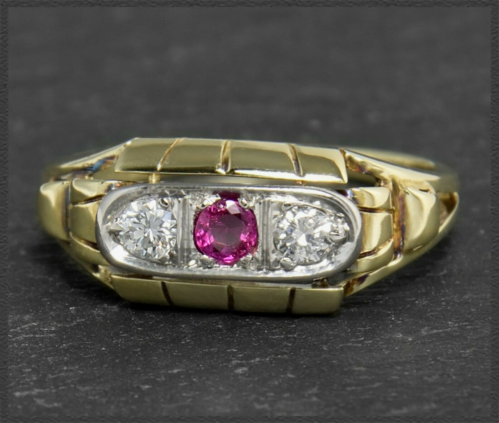 Wunderschöner, antiker Diamant und Rubin Ring mit zusammen 0,33ct.
