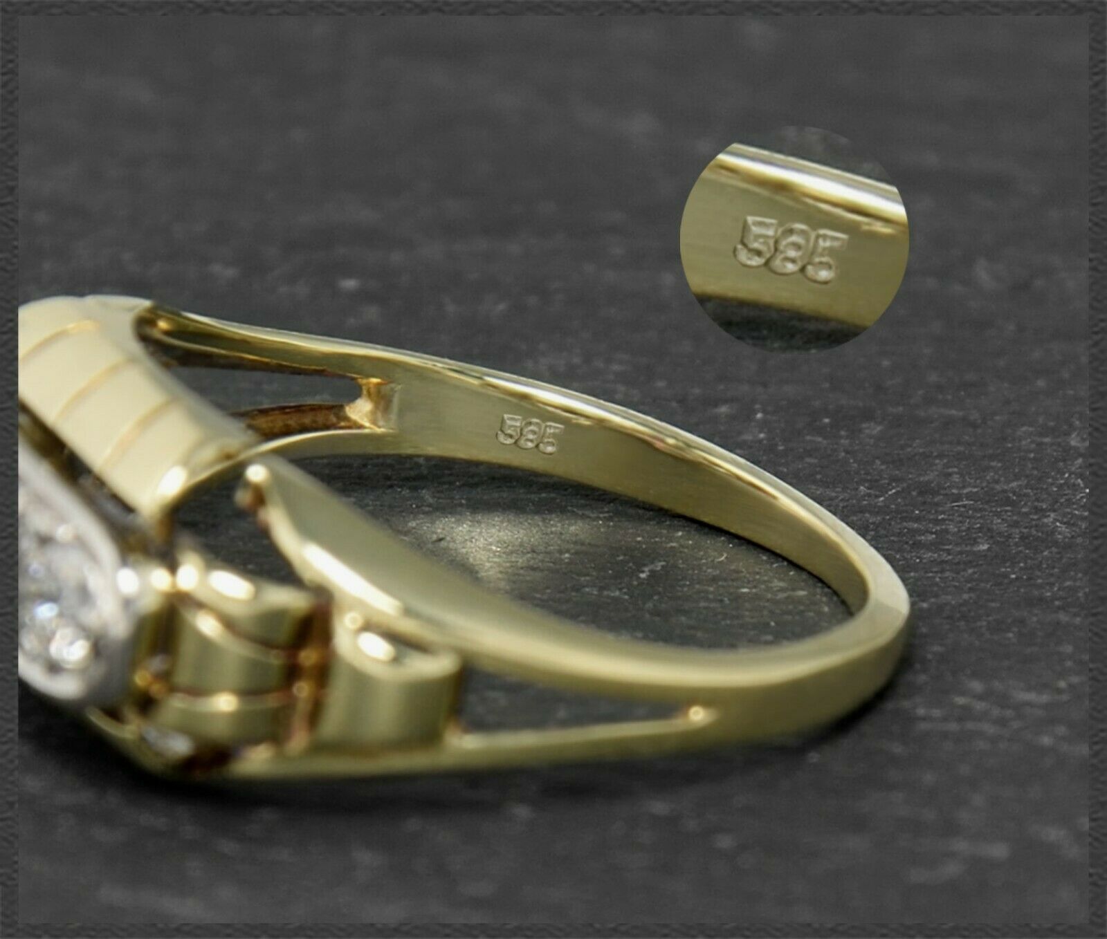 Hergestellt vom Goldschmied, ca 1930, aus massivem 585 Gold, Gelbgold & Weißgold (Edelstein-Einfassungen), hochglanzpoliert.