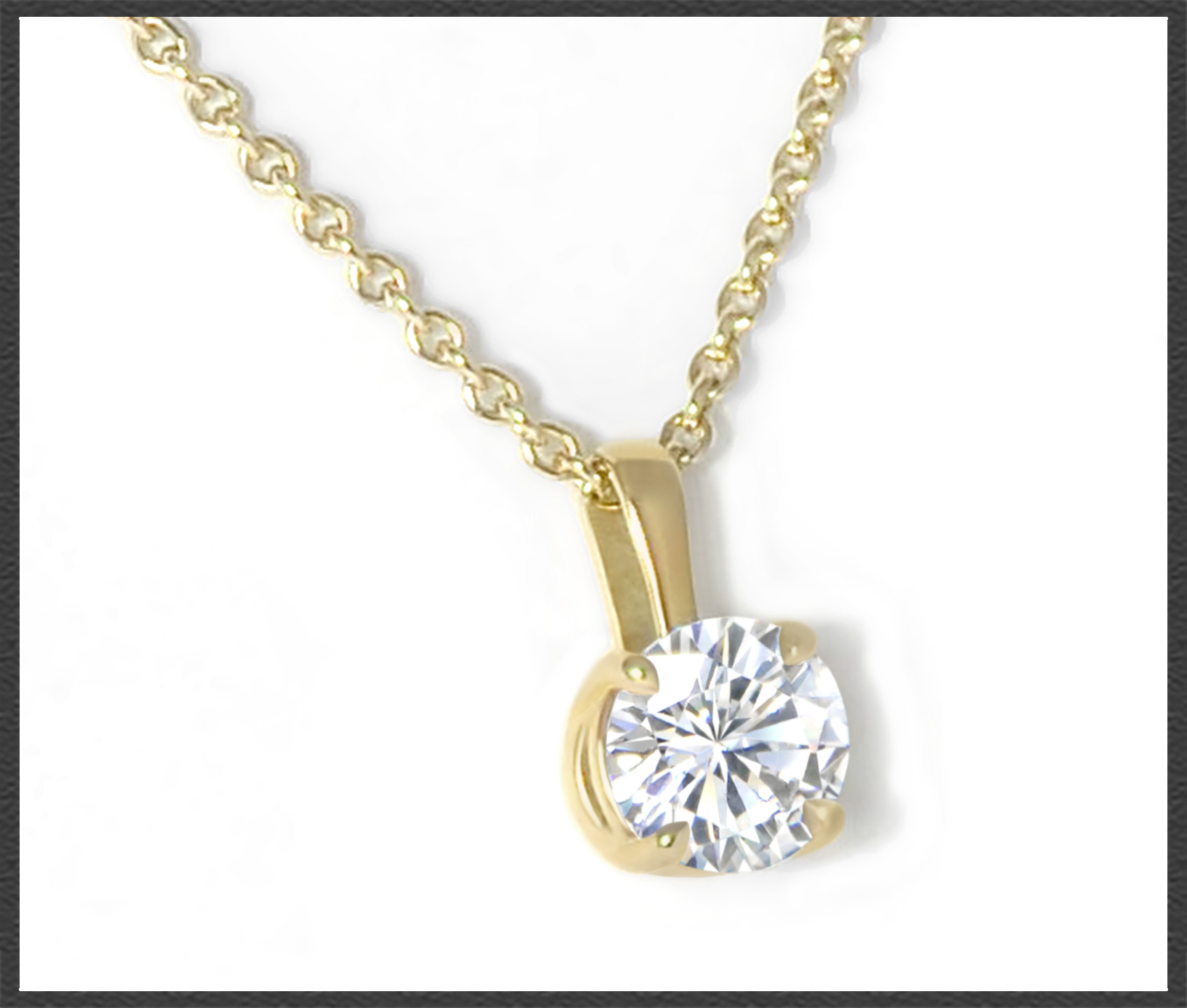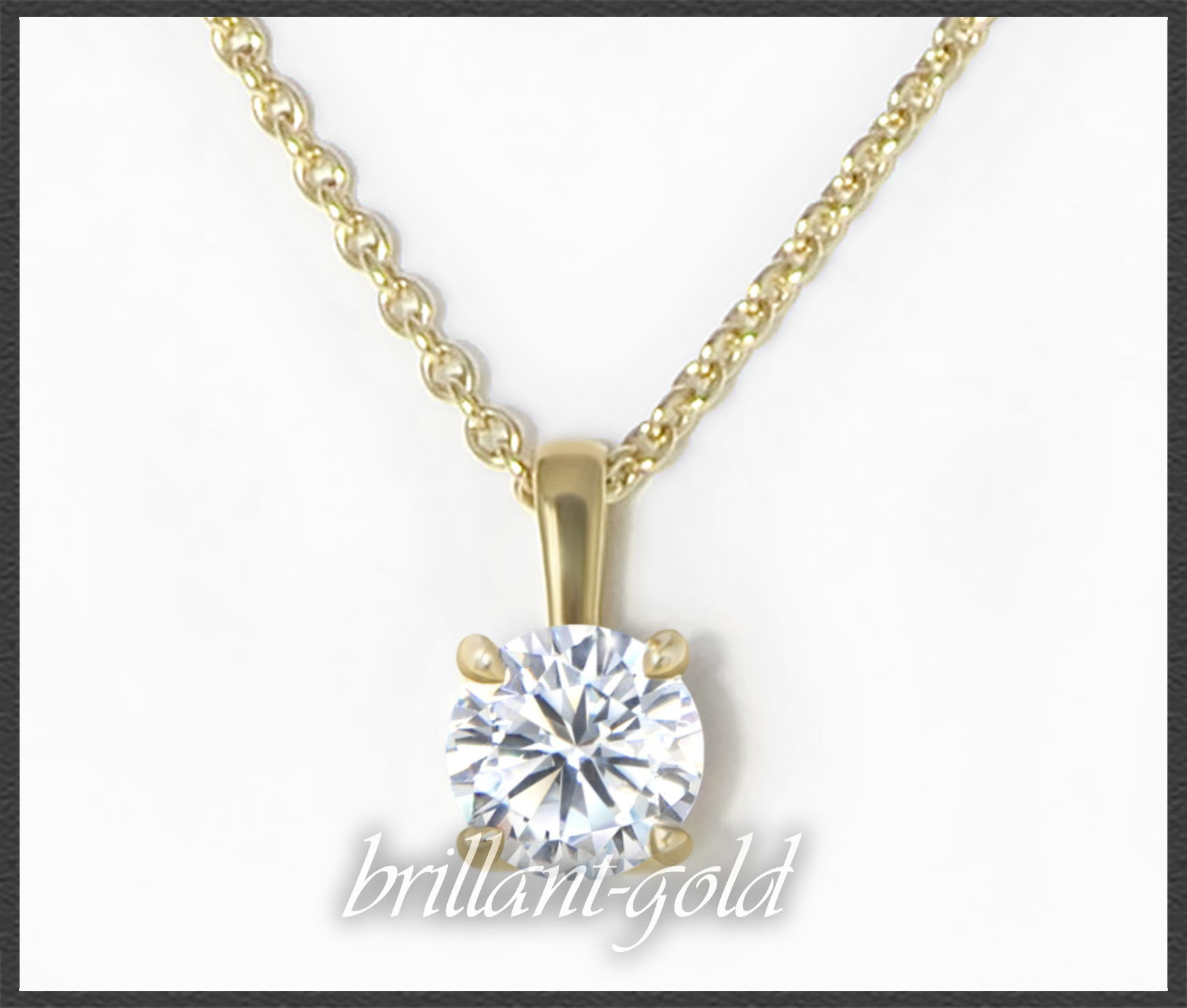 Eingefasst im Anhänger ist ein 6,05mm Brillant mit 0,96ct in guter Qualität (Top Wesselton G & Si2). Der Diamant funkelt sehr schön im Licht.