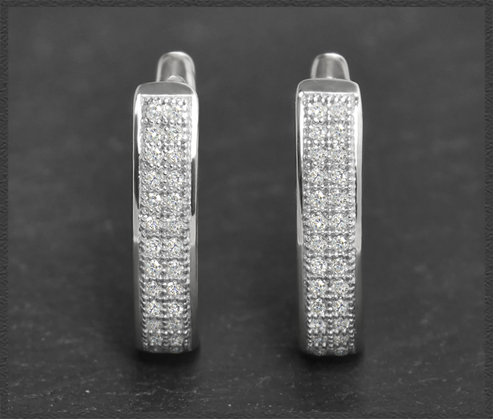 Die Diamanten sind ganz eng nebeneinander eingefasst (Micro Pave Fassung), sodass zwischen den Diamanten kaum Platz ist und somit möglichst viel Licht reflektiert wird. Zusätzlich sind die Diamanten in Weißgold eingefasst, damit sie noch schöner funkeln. Insgesamt 52 Diamanten mit zusammen 0,30ct funkeln wunderschön im Licht.