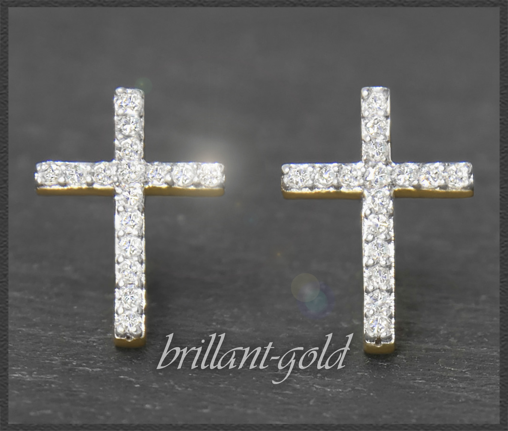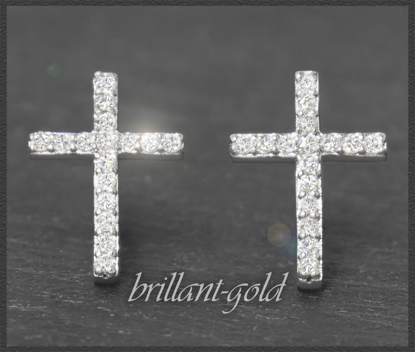 Elegante Diamant Kreuz Ohrstecker aus Gold mit 32 wunderschön funkelnden Diamanten.