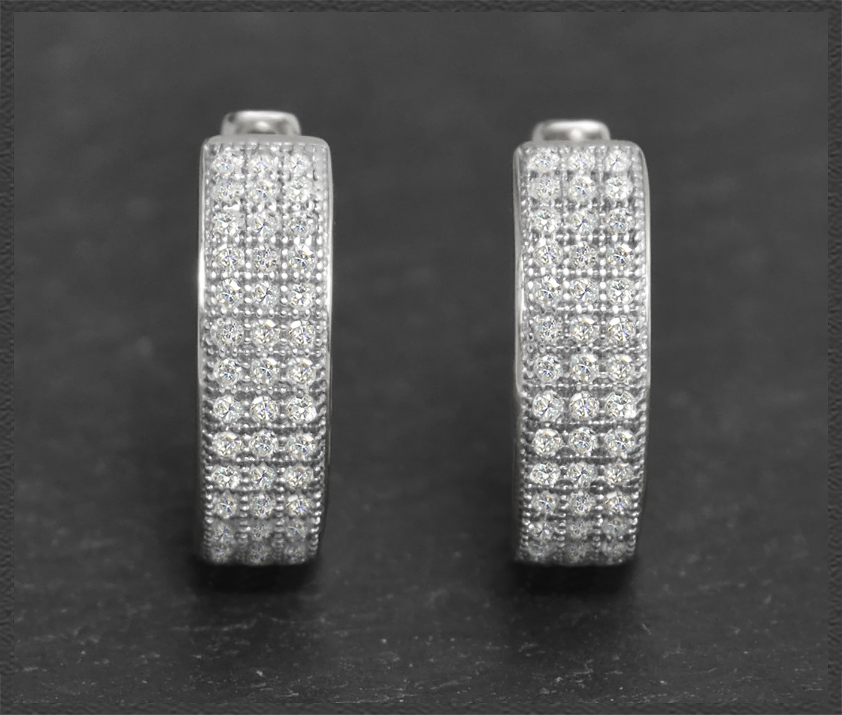 Die Diamanten sind ganz eng nebeneinander eingefasst (Micro Pave Fassung), sodass zwischen den Diamanten kaum Platz ist und somit möglichst viel Licht reflektiert wird. Zusätzlich sind die Diamanten in Weißgold eingefasst, damit sie noch schöner funkeln. Insgesamt 84 Diamanten mit zusammen 0,45ct funkeln wunderschön im Licht.