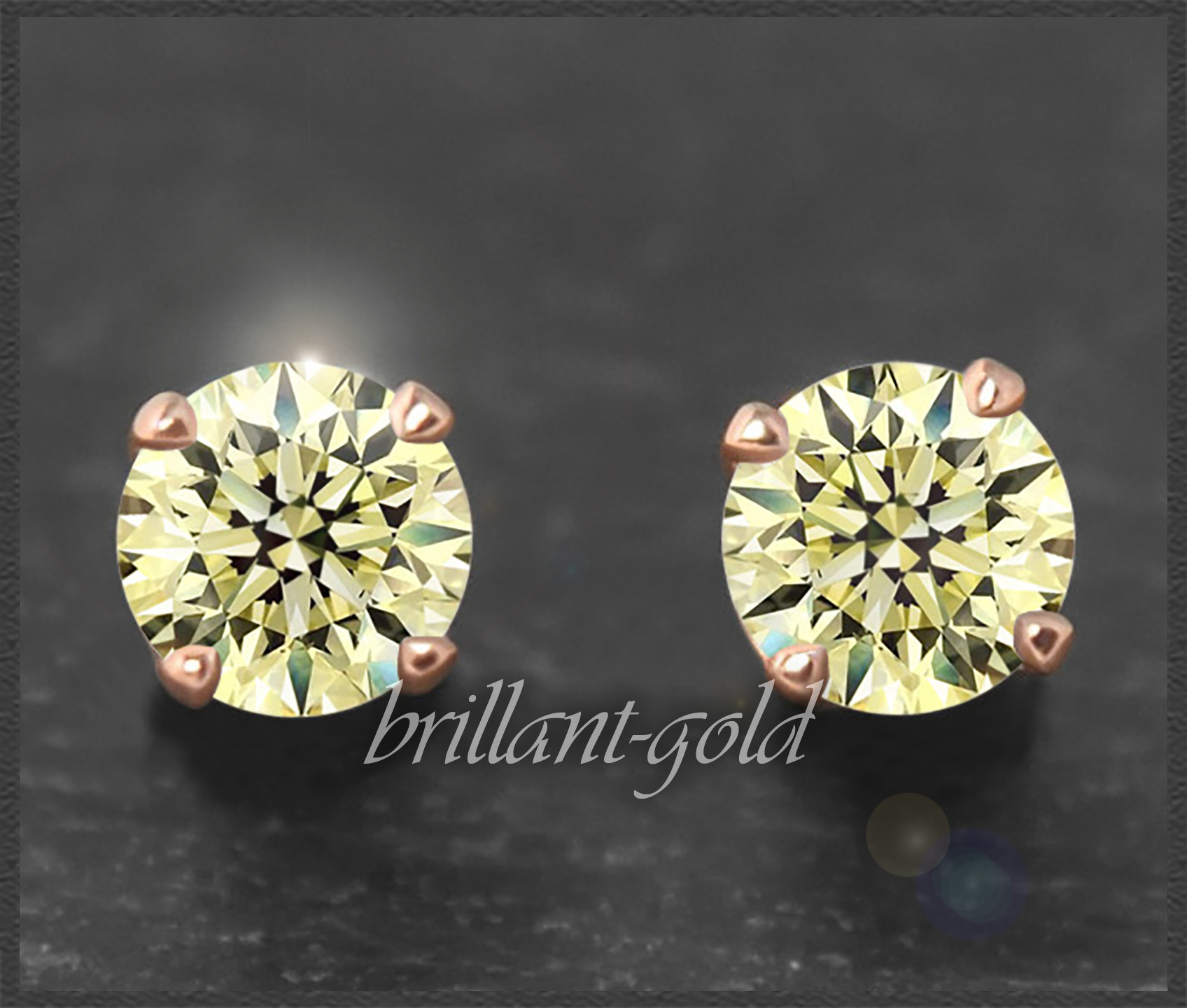 Als Solitäre eingefasst sind zwei 5,75mm große Brillanten mit zusammen 1,60ct in hervorragender Reinheit (VS1-2) und einem exzellenten Brillantschliff.