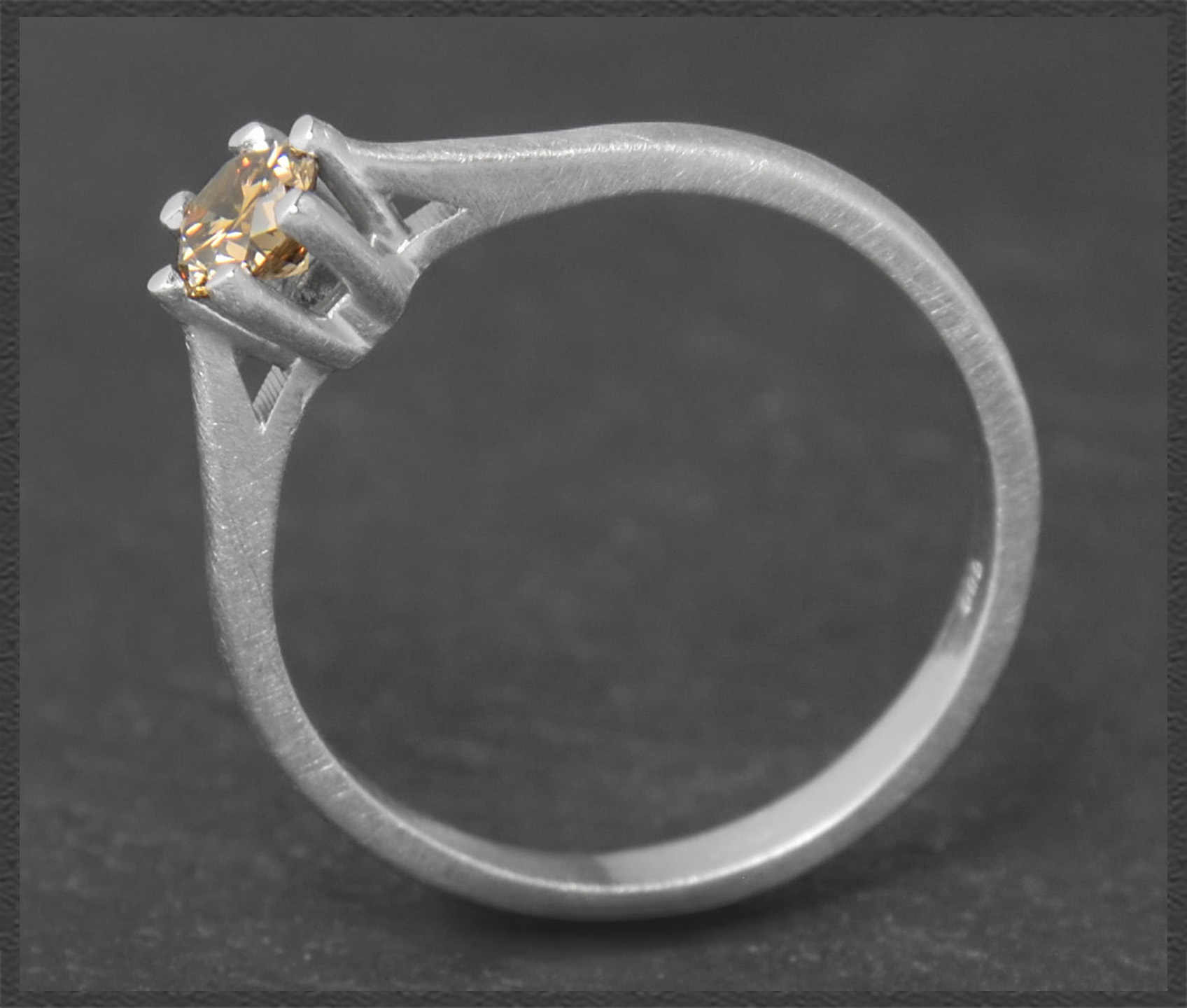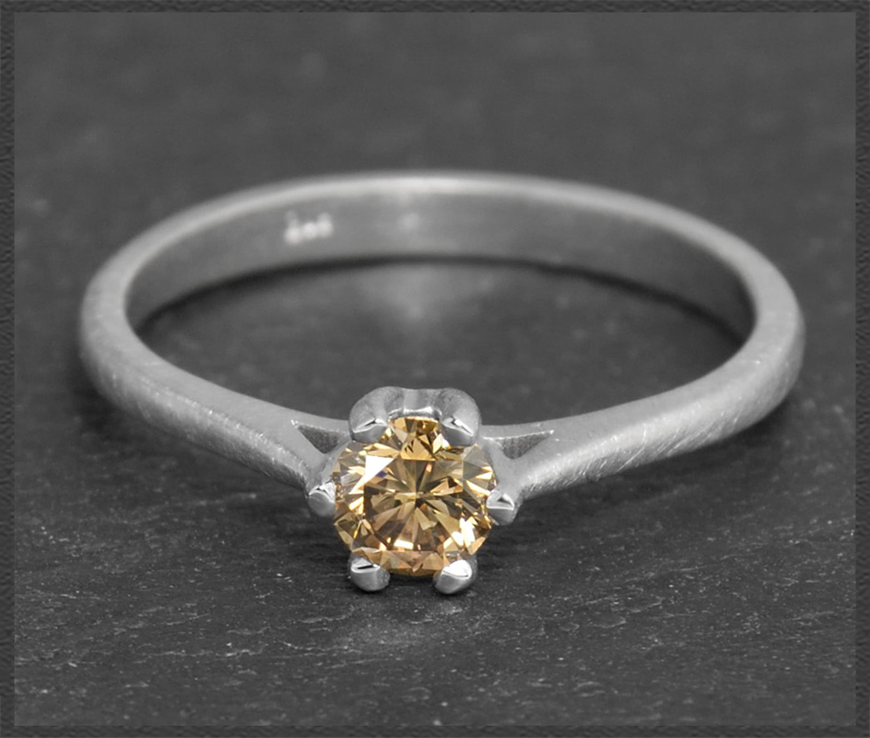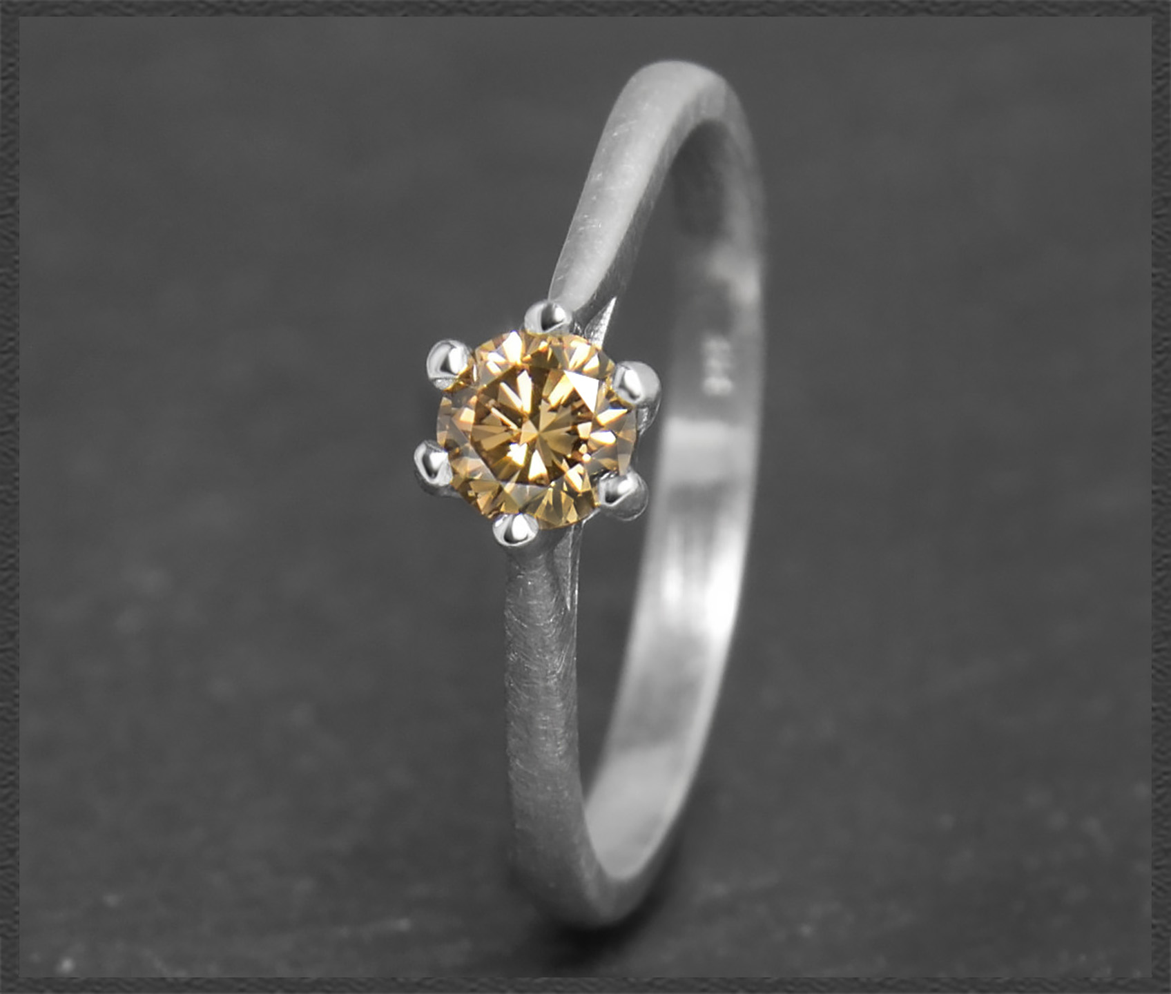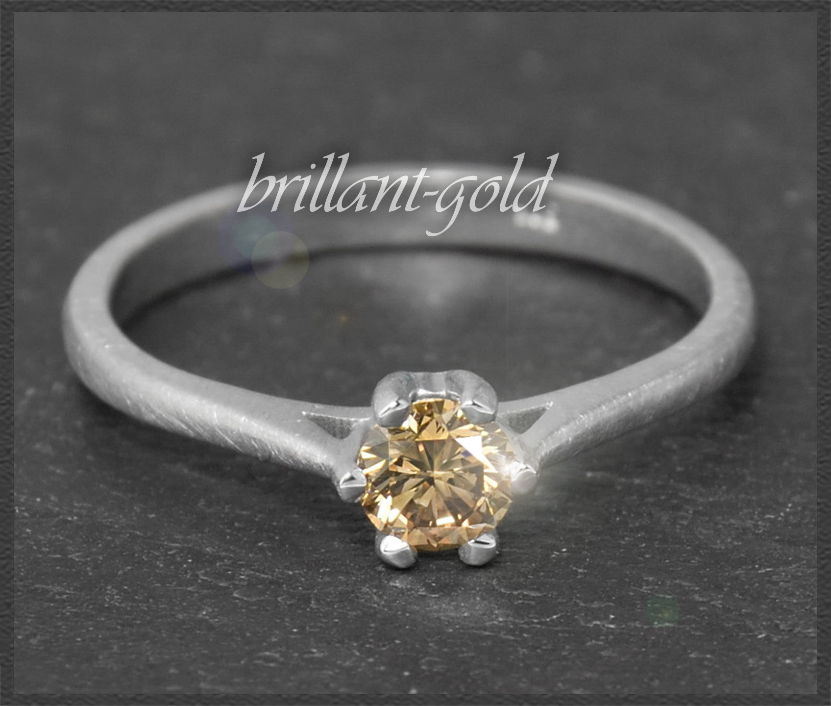 Eleganter & zarter 0,31ct Diamant Solitärring mit einem naturfarbenen cognac-champagner Brillanten im exzellenten Brillantschliff, der wunderschön im Licht funkelt.