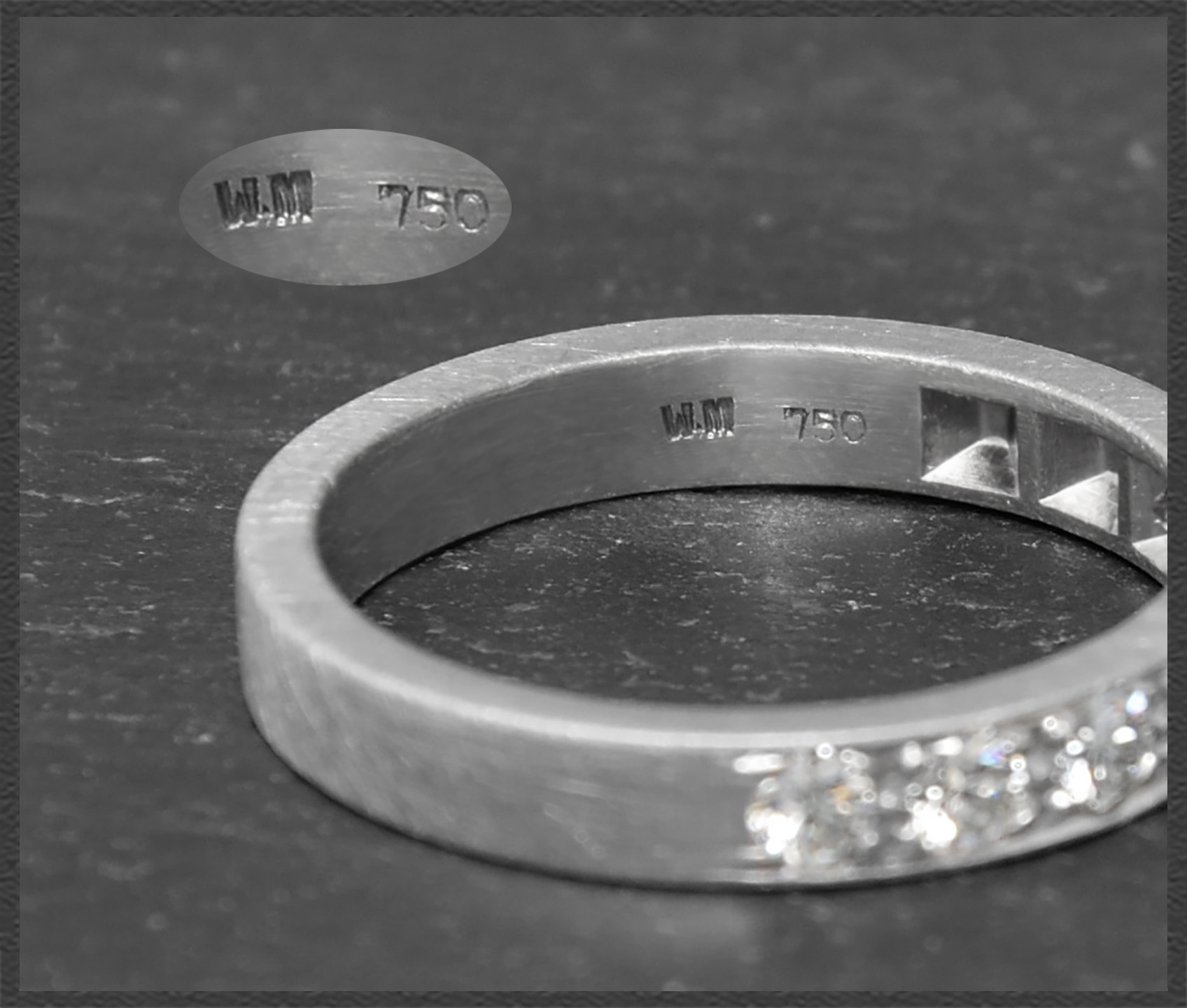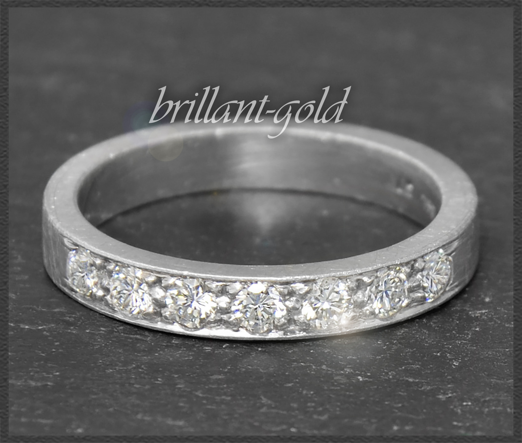 Sieben hochwertige Diamanten in Lupenrein & River D, mit je 2,60mm Durchmesser & im exzellenten Brillantschliff sind in dem Ring eingefasst. Die Diamanten funkeln alle traumhaft schön im Licht.