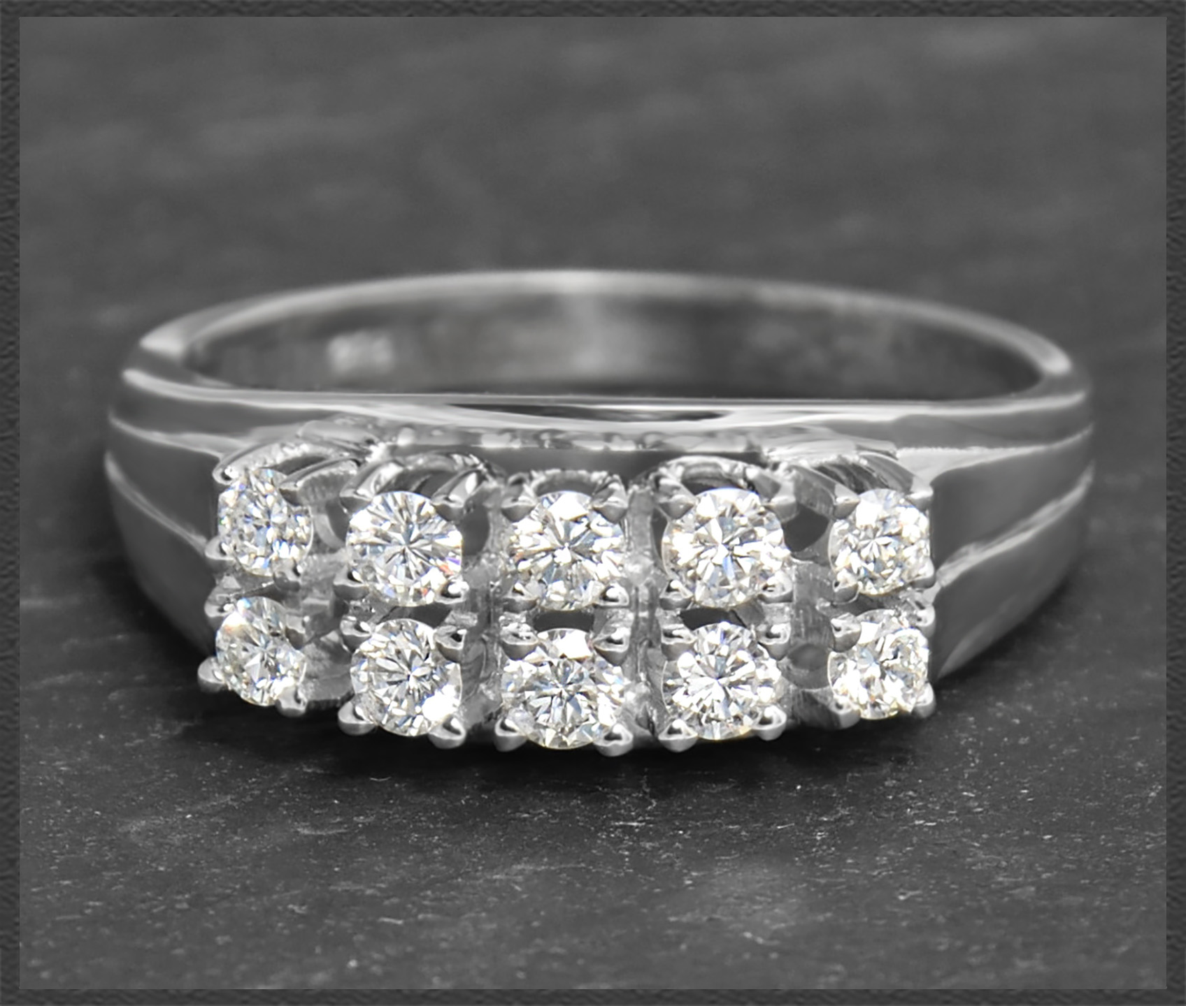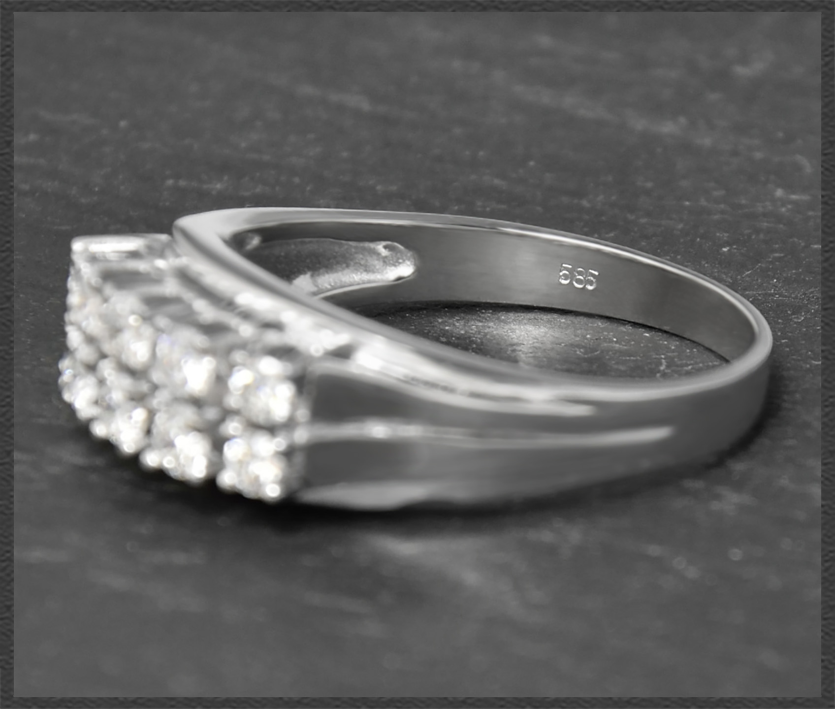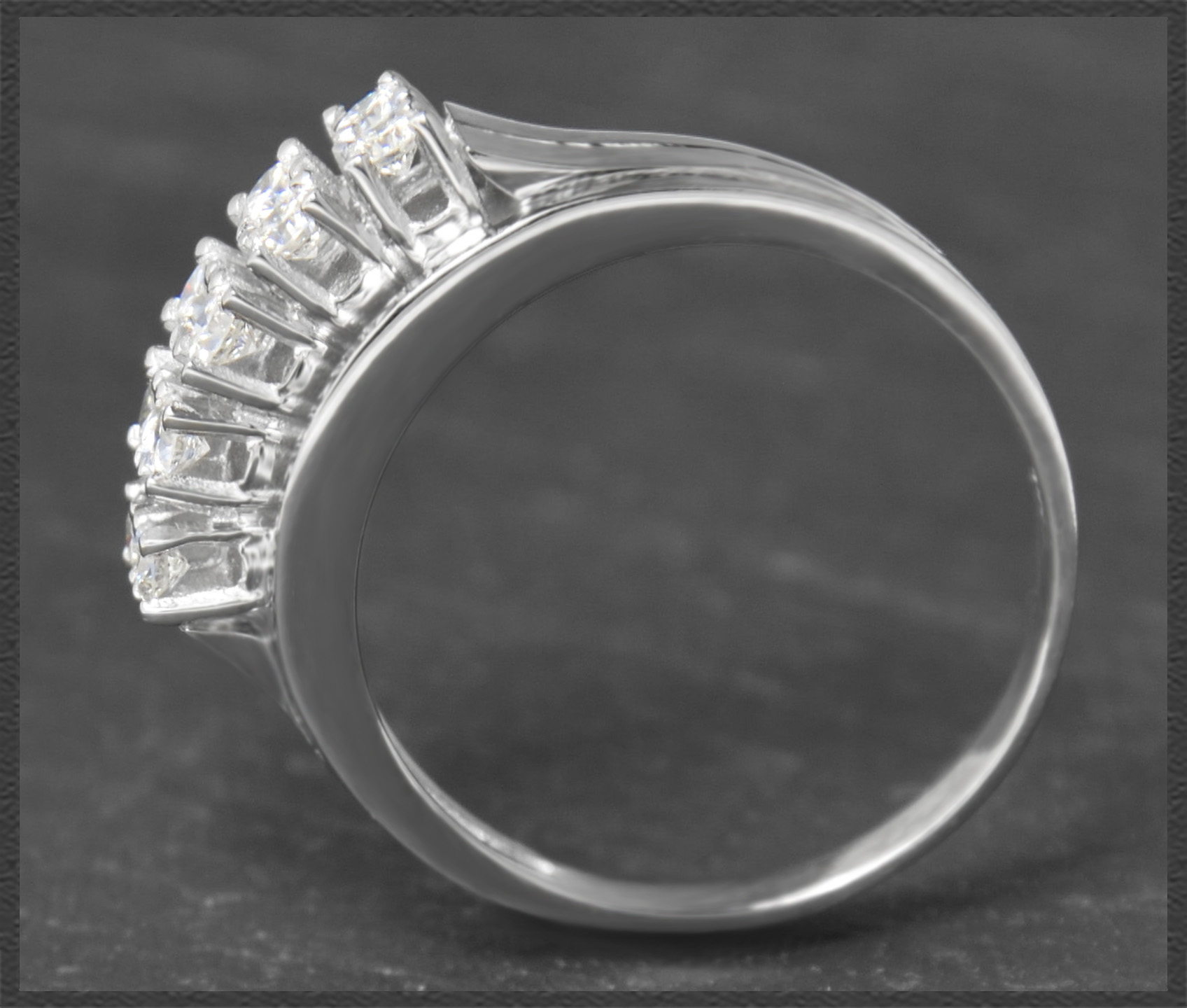 Im Ring eingefasst sind 10 Brillanten in der höchsten Reinheit (Lupenrein), besten Farbe (River) und im exzellenten Brillantschliff. Die Diamantbesetzte Oberseite des Ringes funkelt traumhaft im Licht.