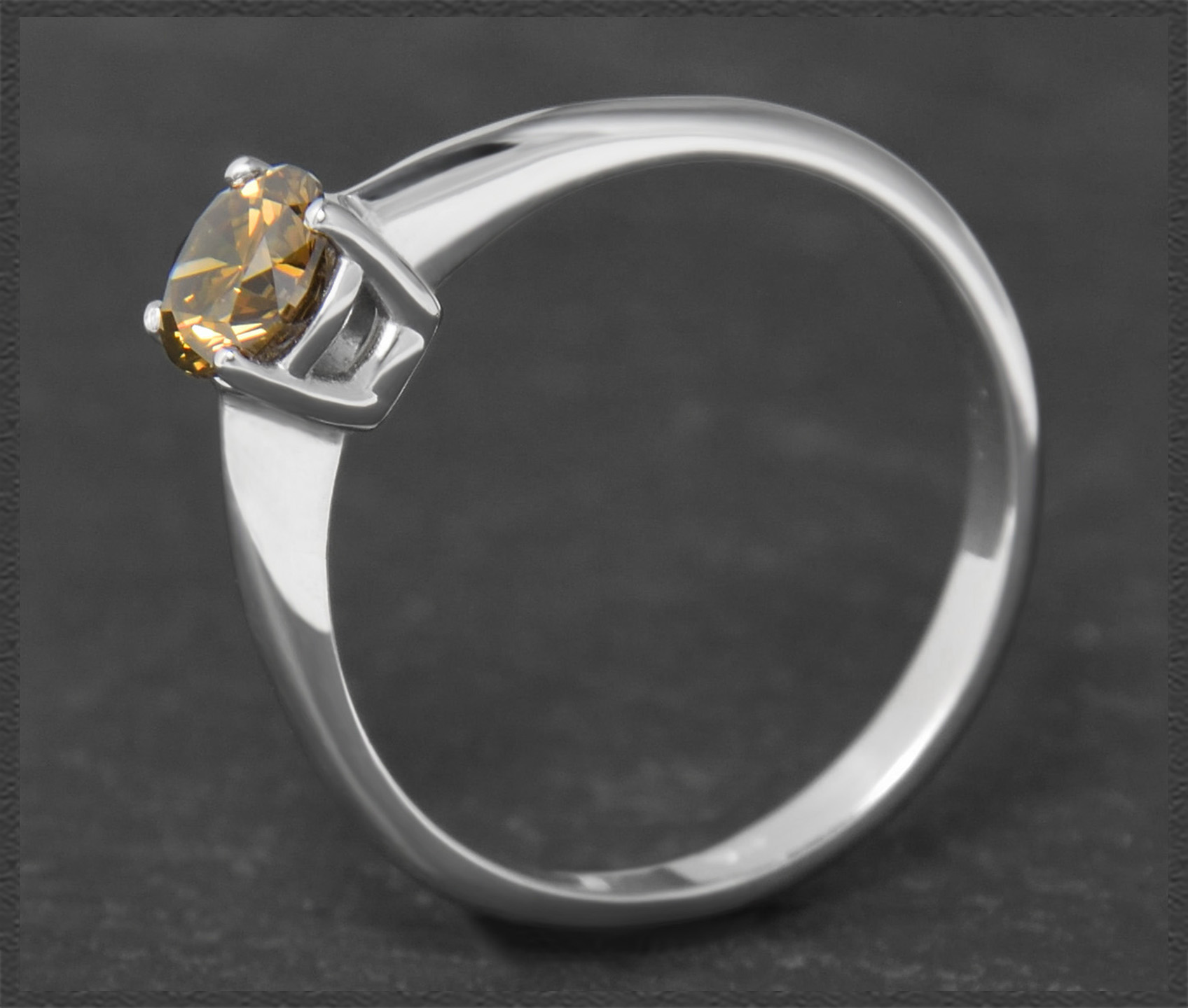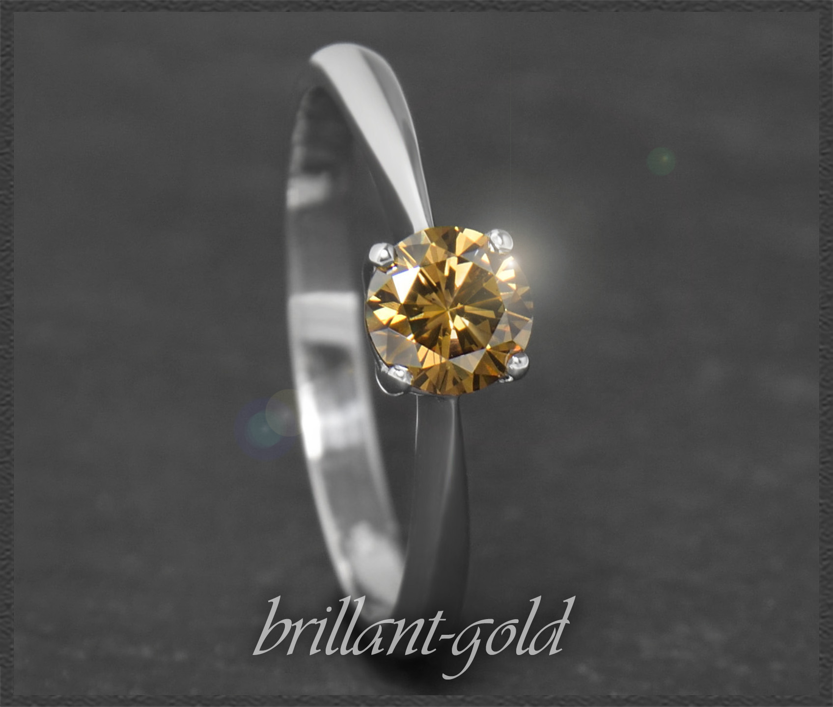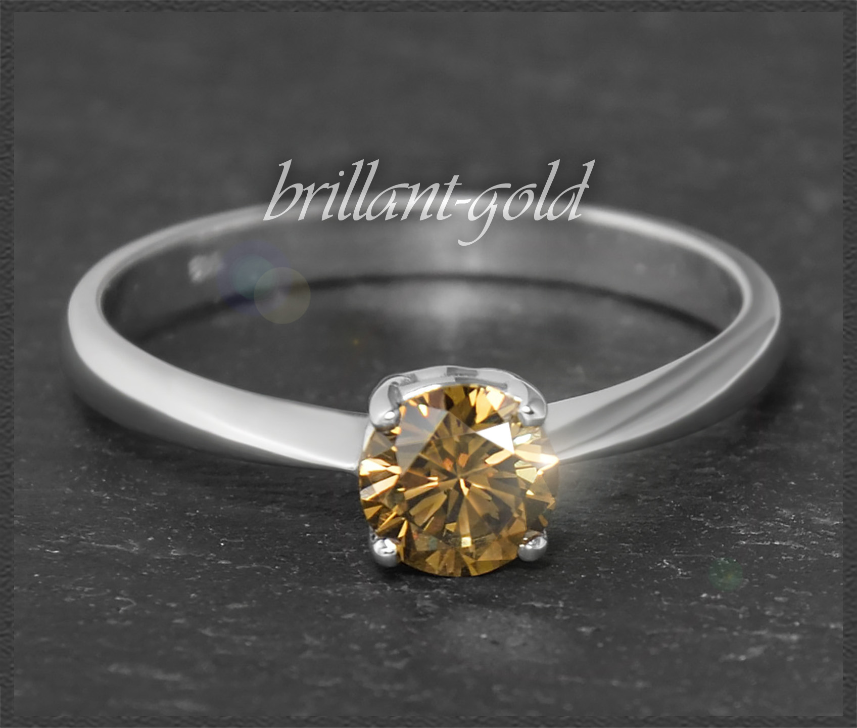 Eleganter & zarter 0,69ct Diamant Solitärring mit einem naturfarbenen cognac-champagner Brillanten im exzellenten Brillantschliff, der wunderschön im Licht funkelt.