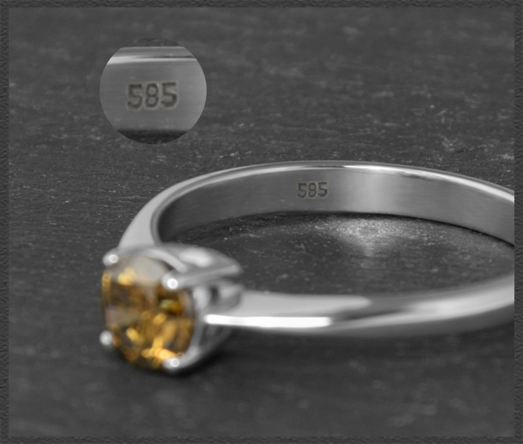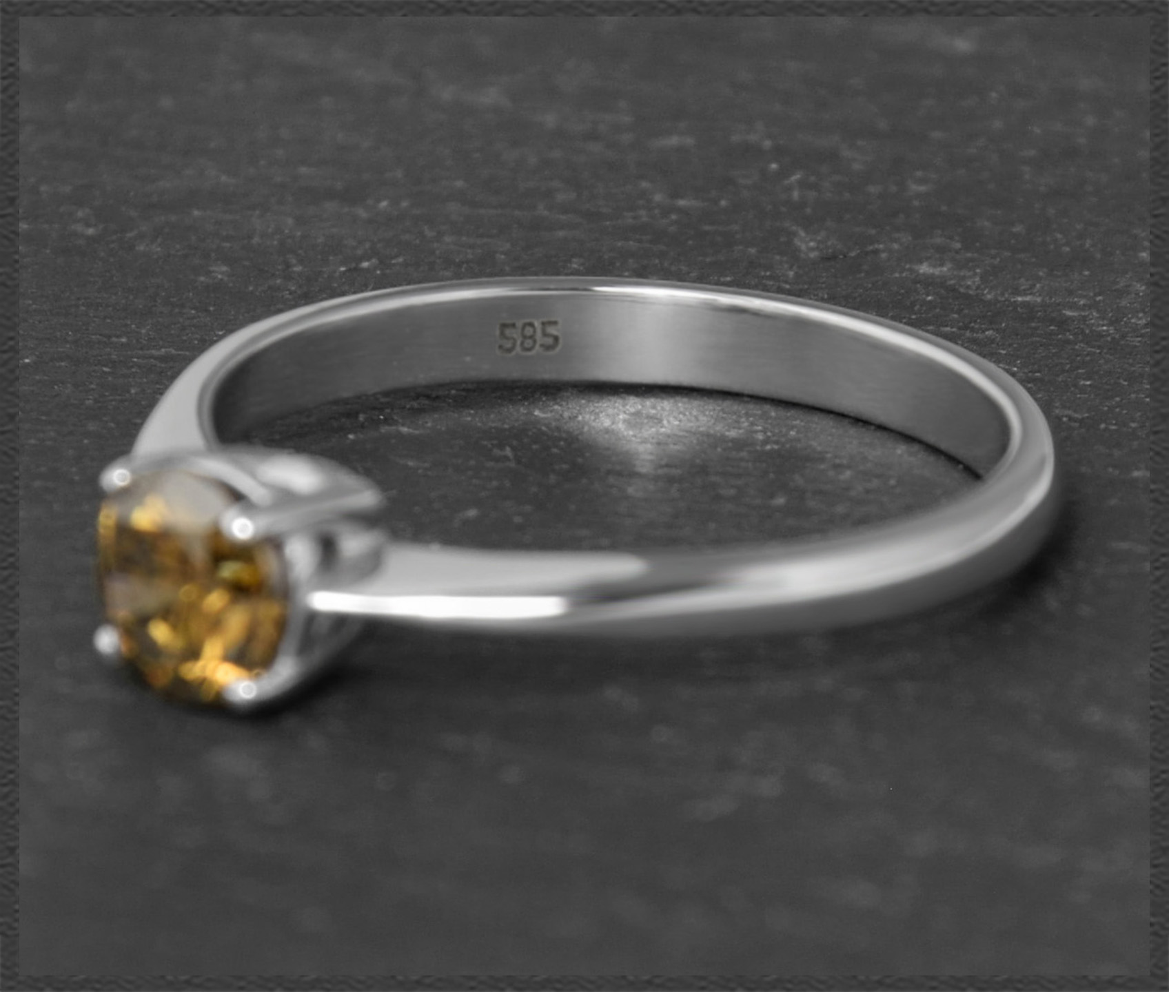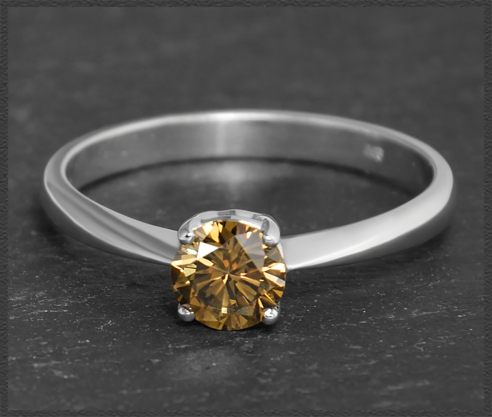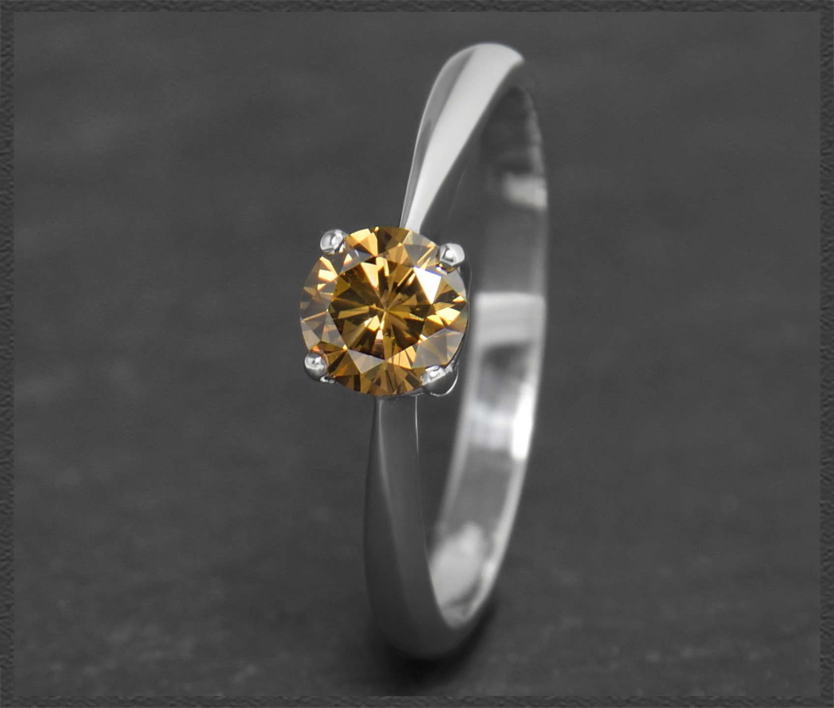 Eleganter & zarter 0,69ct Diamant Solitärring mit einem naturfarbenen cognac-champagner Brillanten im exzellenten Brillantschliff, der wunderschön im Licht funkelt.