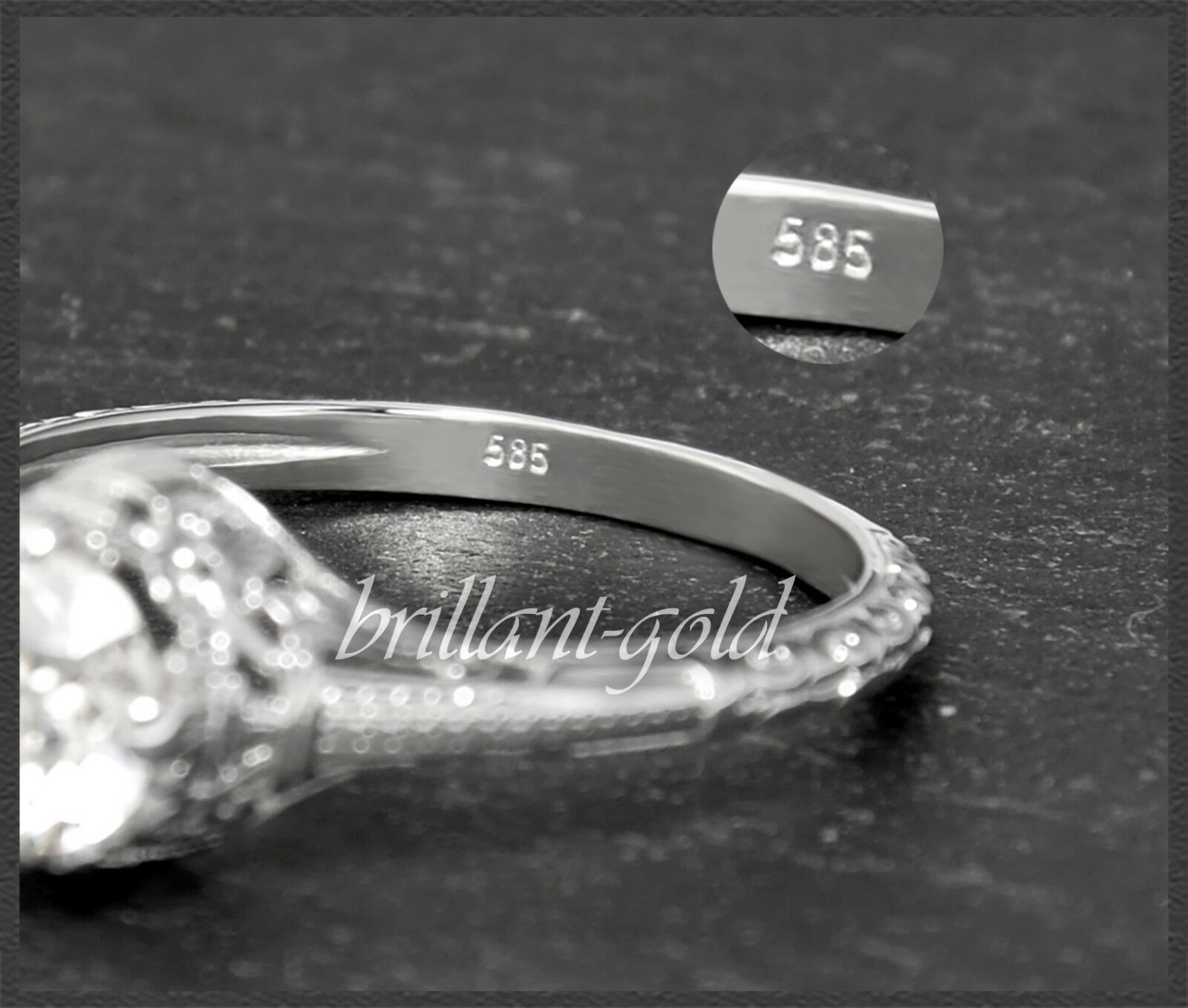 Antik Vintage Look Design Ring, hergestellt aus massivem 585 Weißgold, hochglanz-polierte Oberfläche.