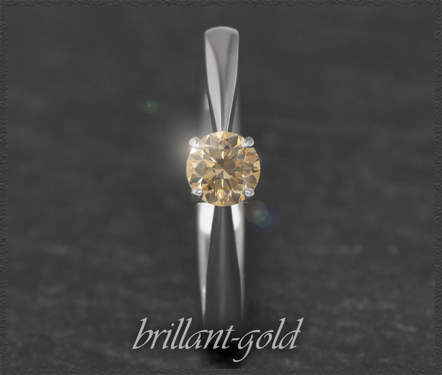 Gefasst wurde ein 4,55mm Brillant mit 0,40ct in der Farbe zart Champagner. Der Diamant funkelt sehr schön im Licht.