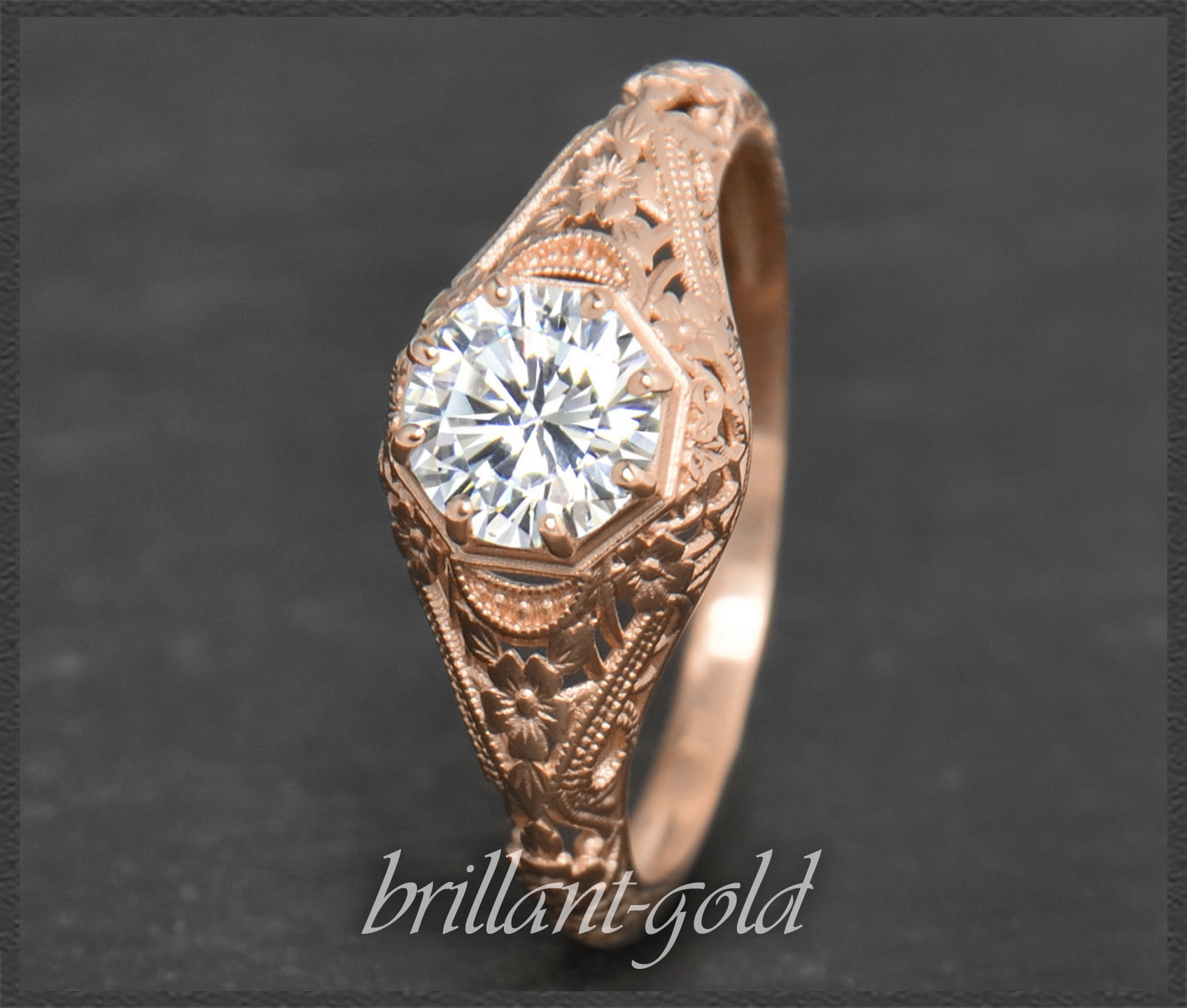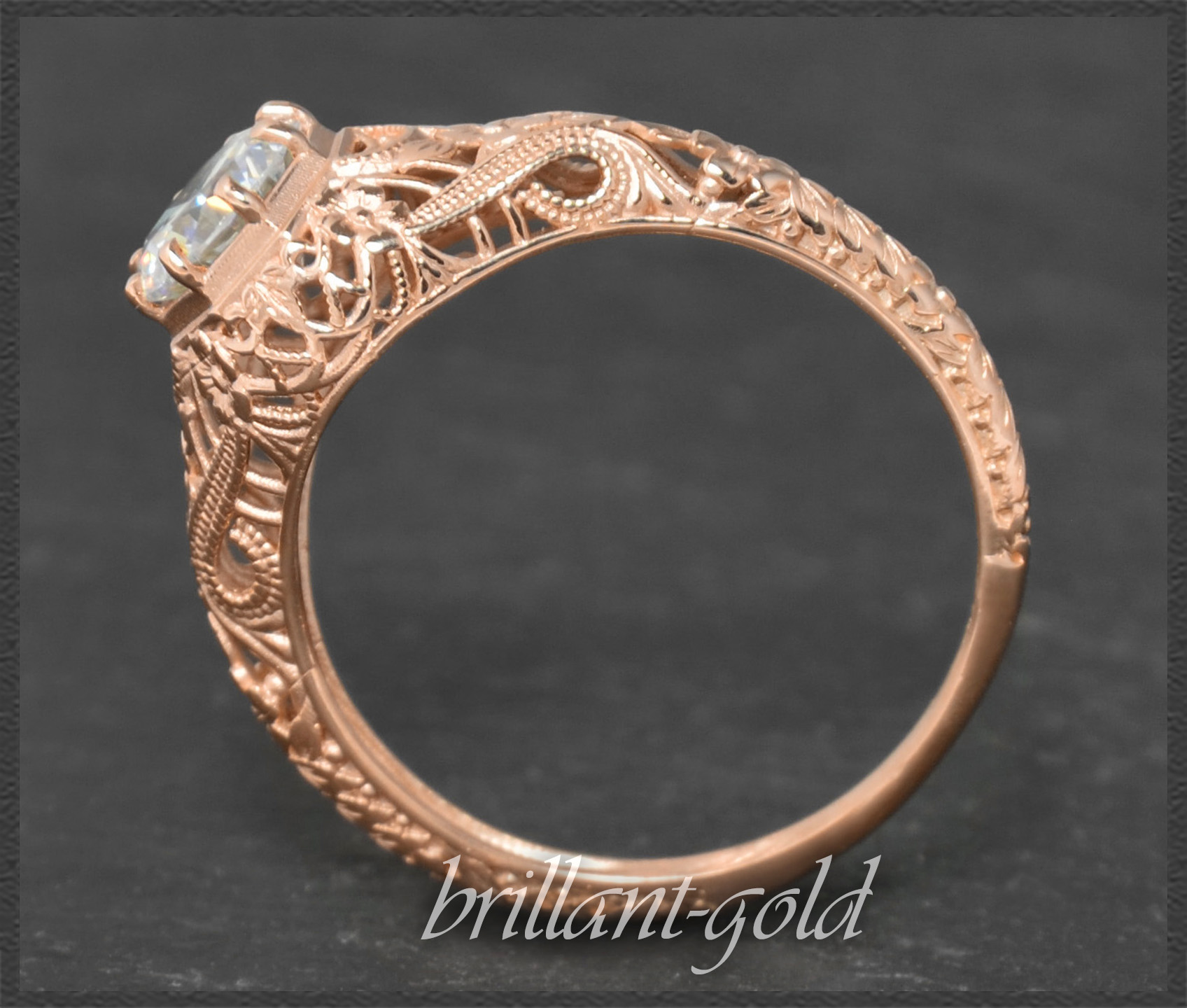 Stilvoller Ring im Jugendstil Design mit einem hochwertigen 0,94ct Brillant Solitär mit wunderschöner Brillanz.