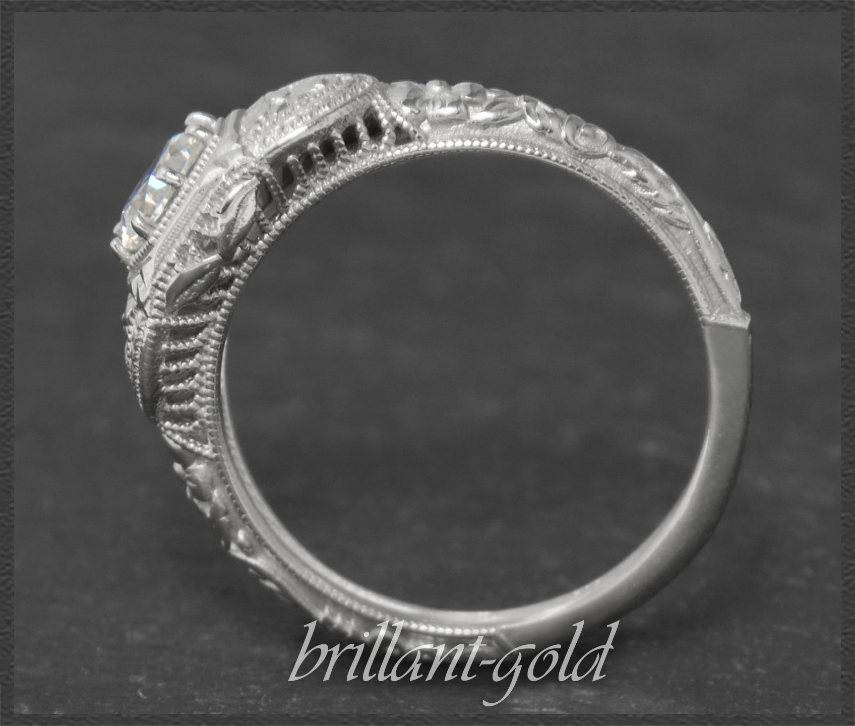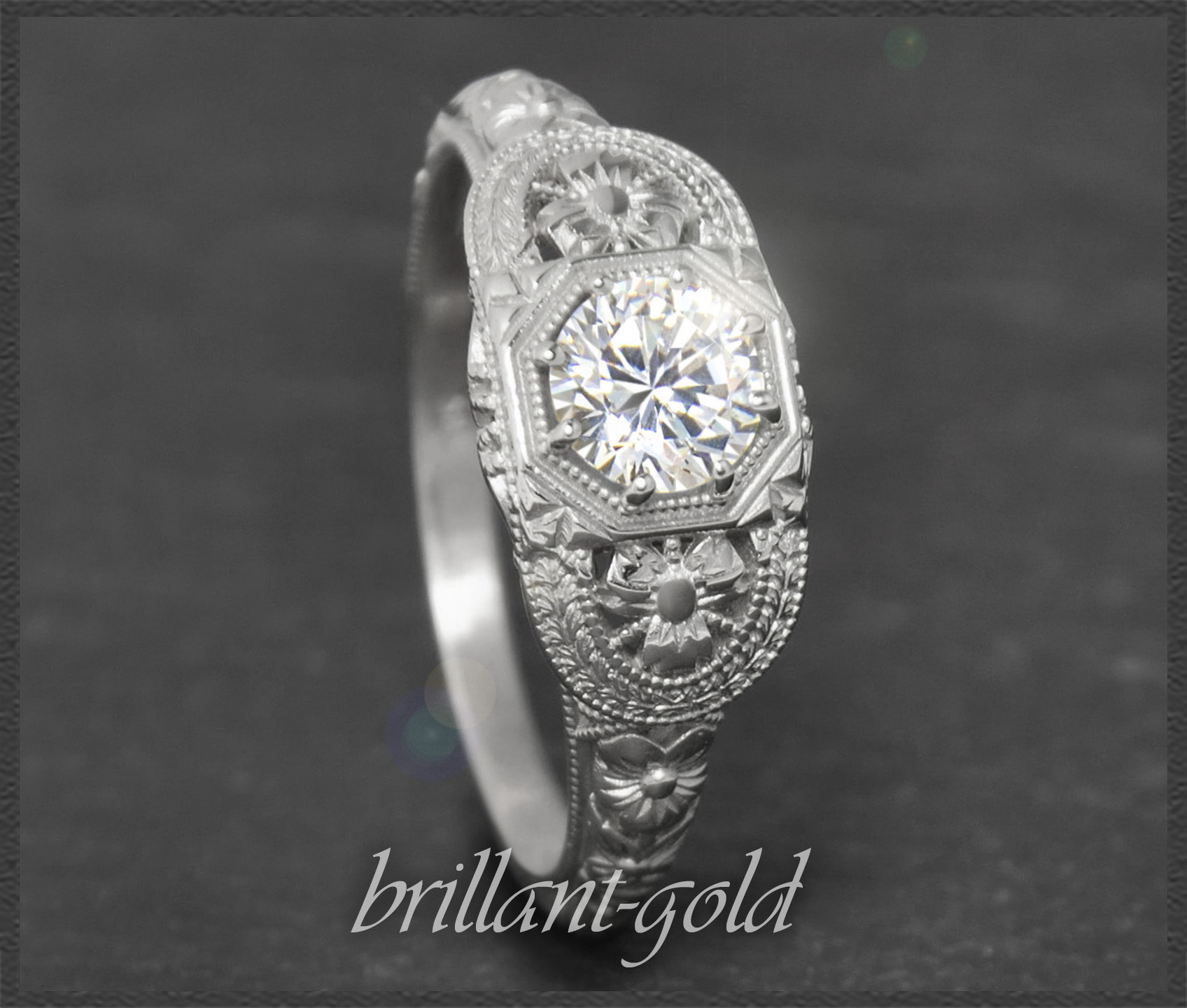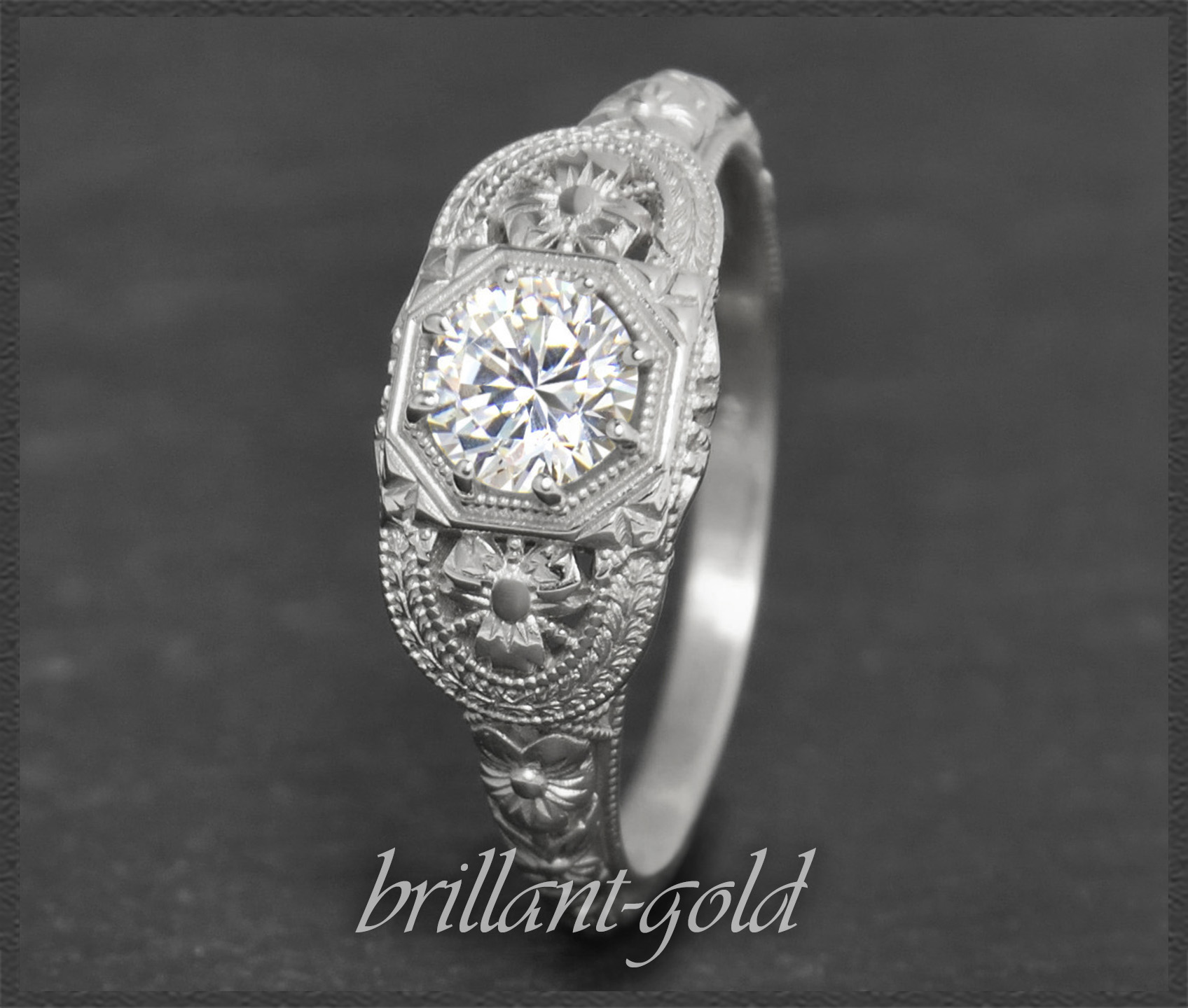 Wundervoller Ring im Jugendstil Design mit einem hochwertigen 0,55ct Brillant Solitär mit exzellentem Brillantschliff.