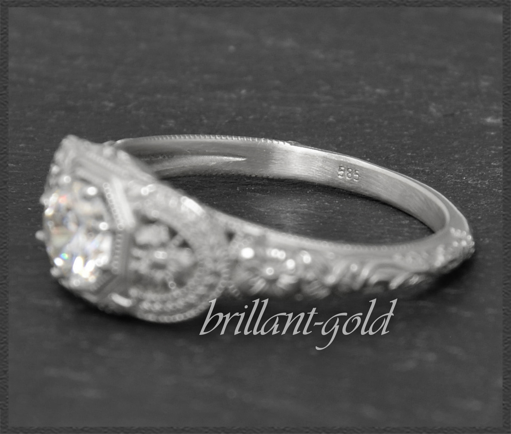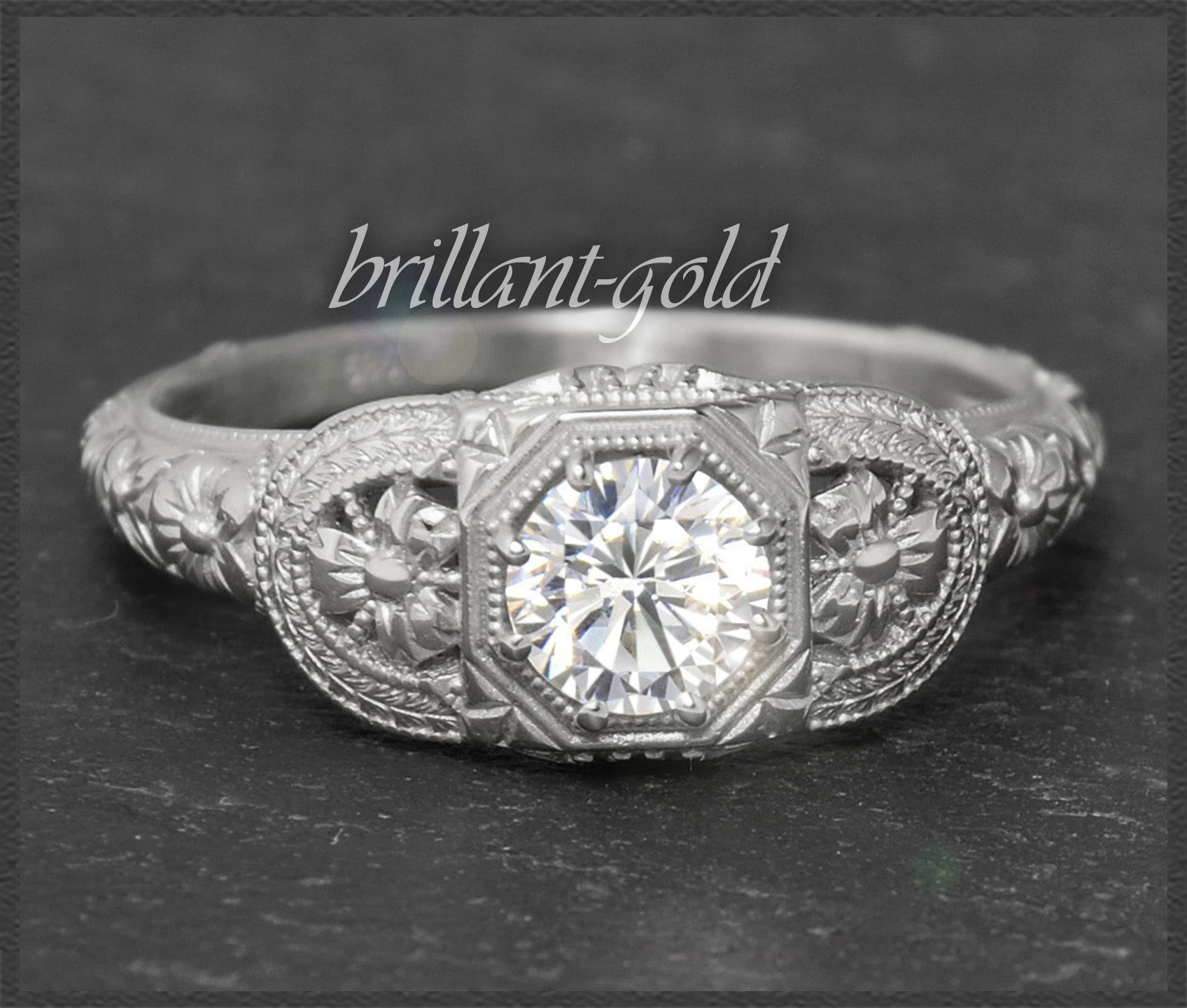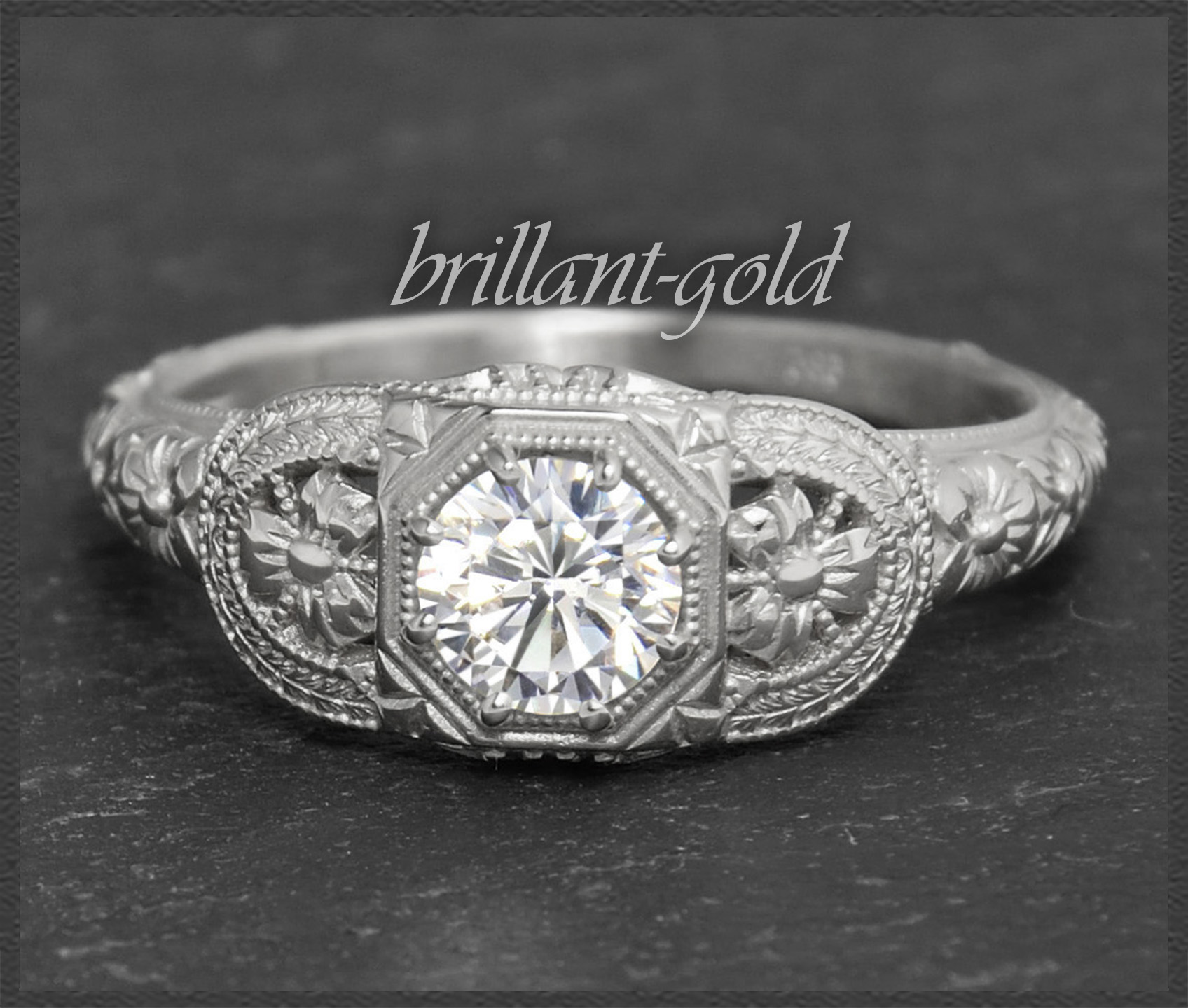 Wundervoller Ring im Jugendstil Design mit einem hochwertigen 0,55ct Brillant Solitär mit exzellentem Brillantschliff.