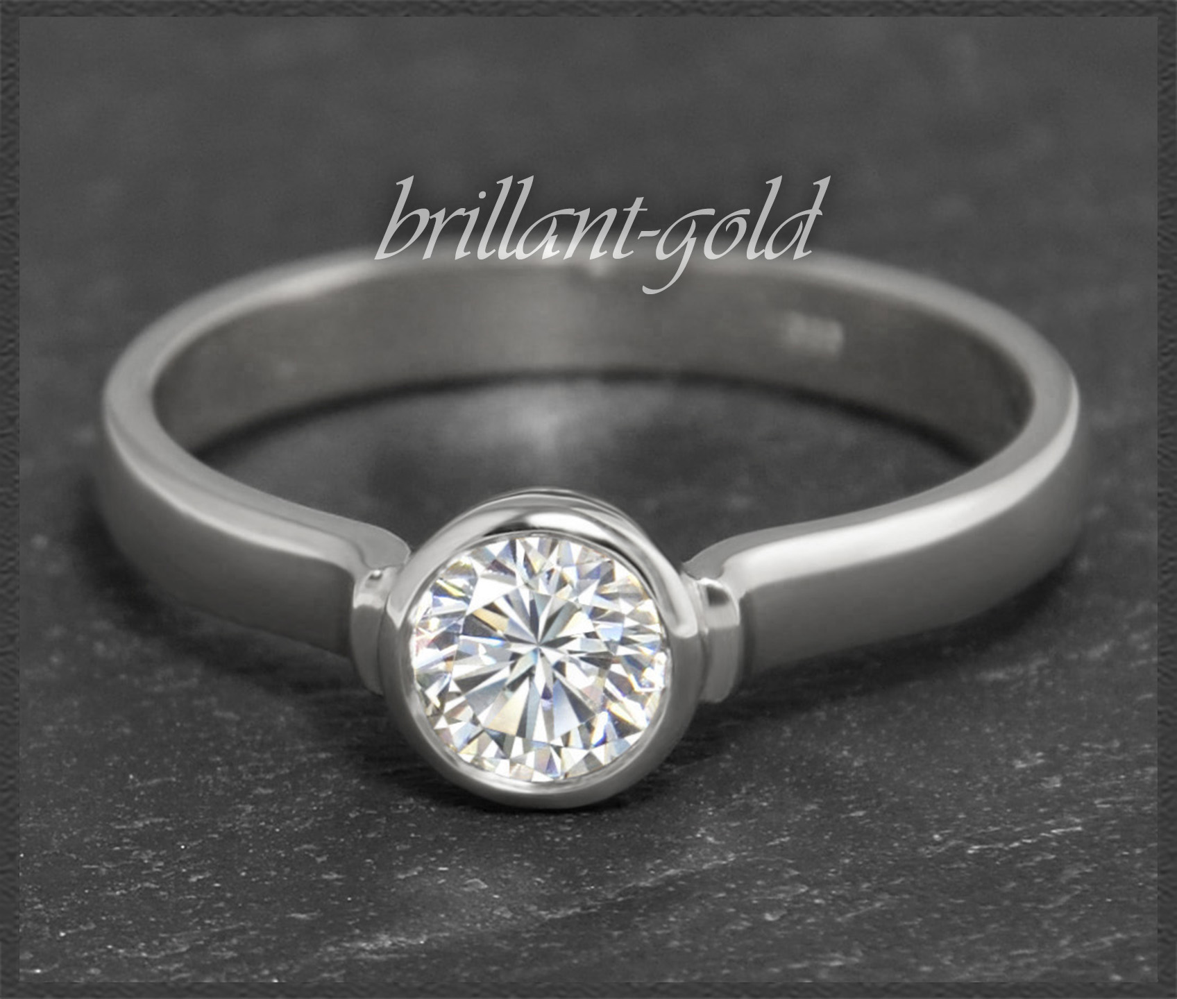 Gefasst wurde ein 0,56ct Diamant mit 5,25mm Durchmesser in guter Reinheit (Si3). Der Diamant funkelt sehr schön im Licht.
