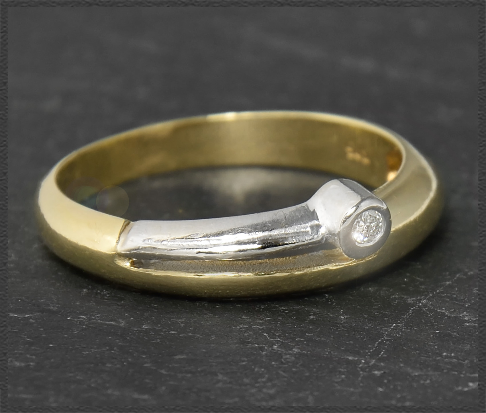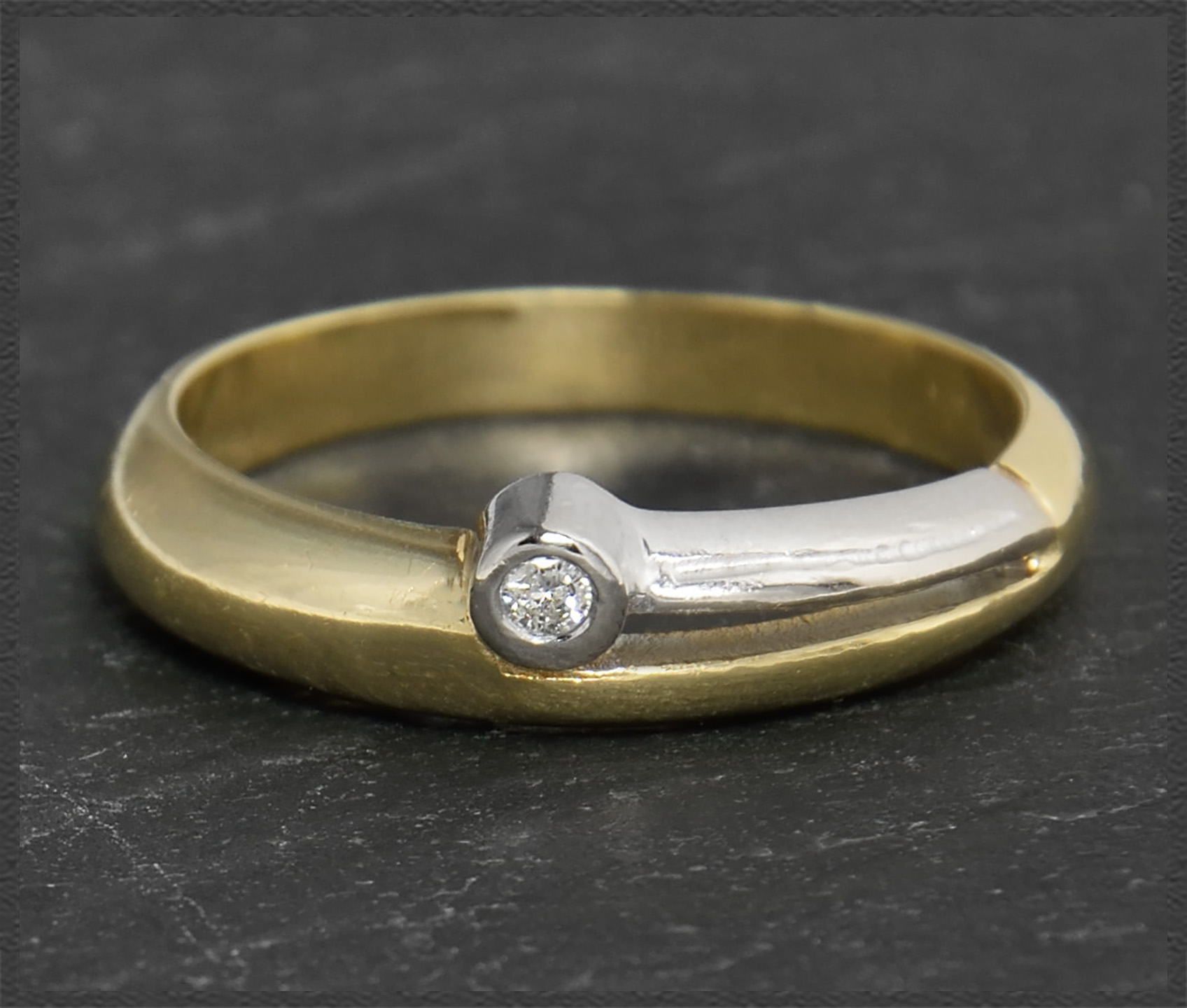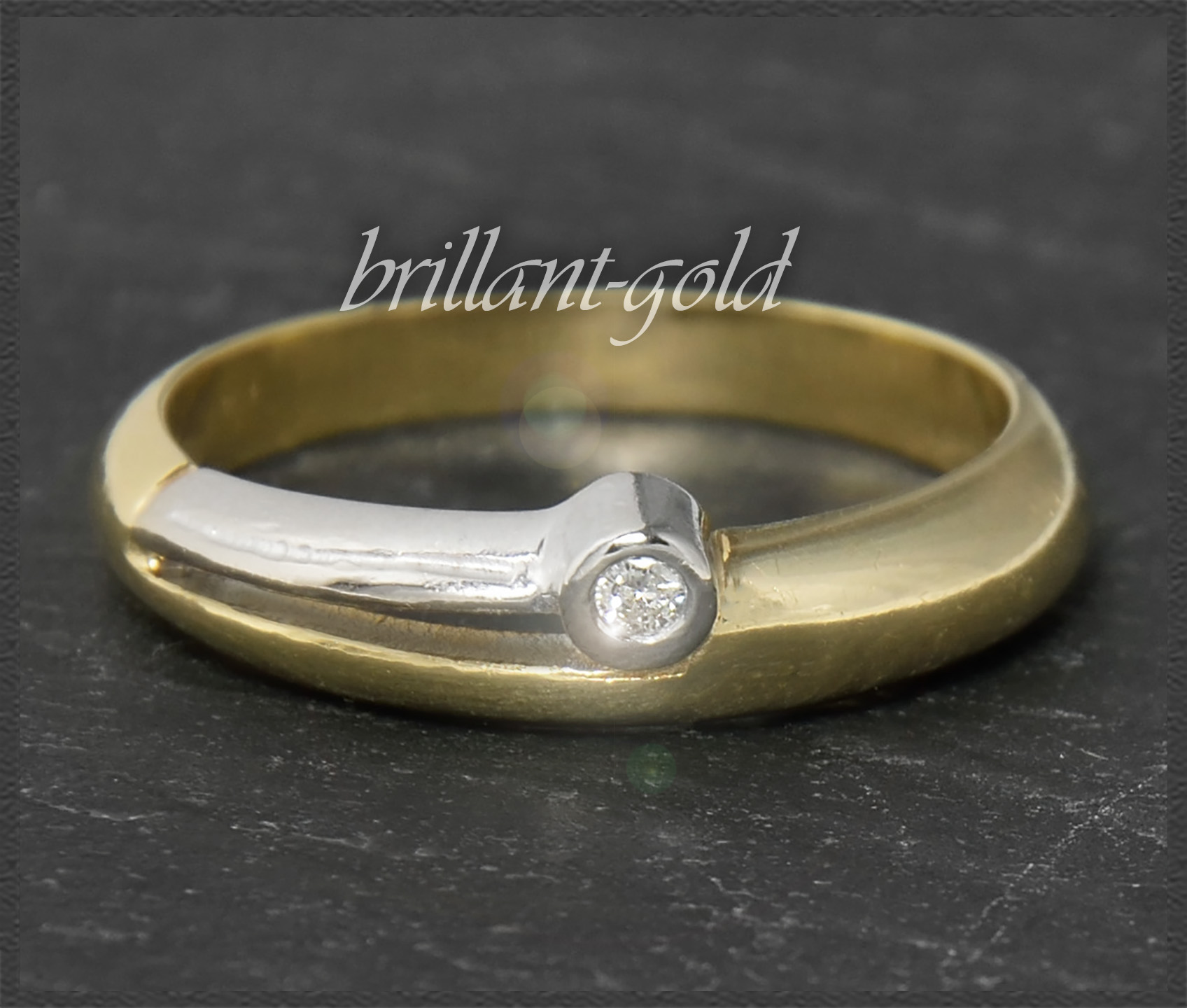 Hergestellt vom Goldschmied aus 585 Gelbgold & Weißgold (Meisterpunze im Ring), mit hochglanz-polierter Oberfläche.
