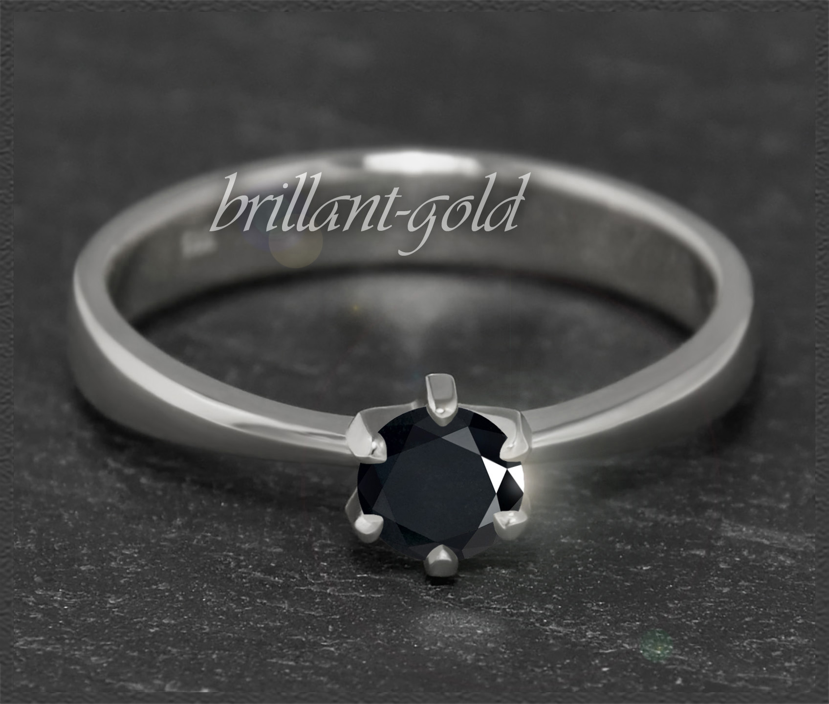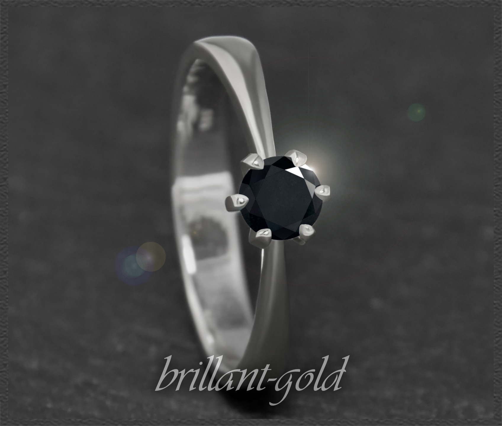 Als Solitär gefasst ist ein schwarzer 0,34ct Brillant mit 4,50mm Durchmesser.