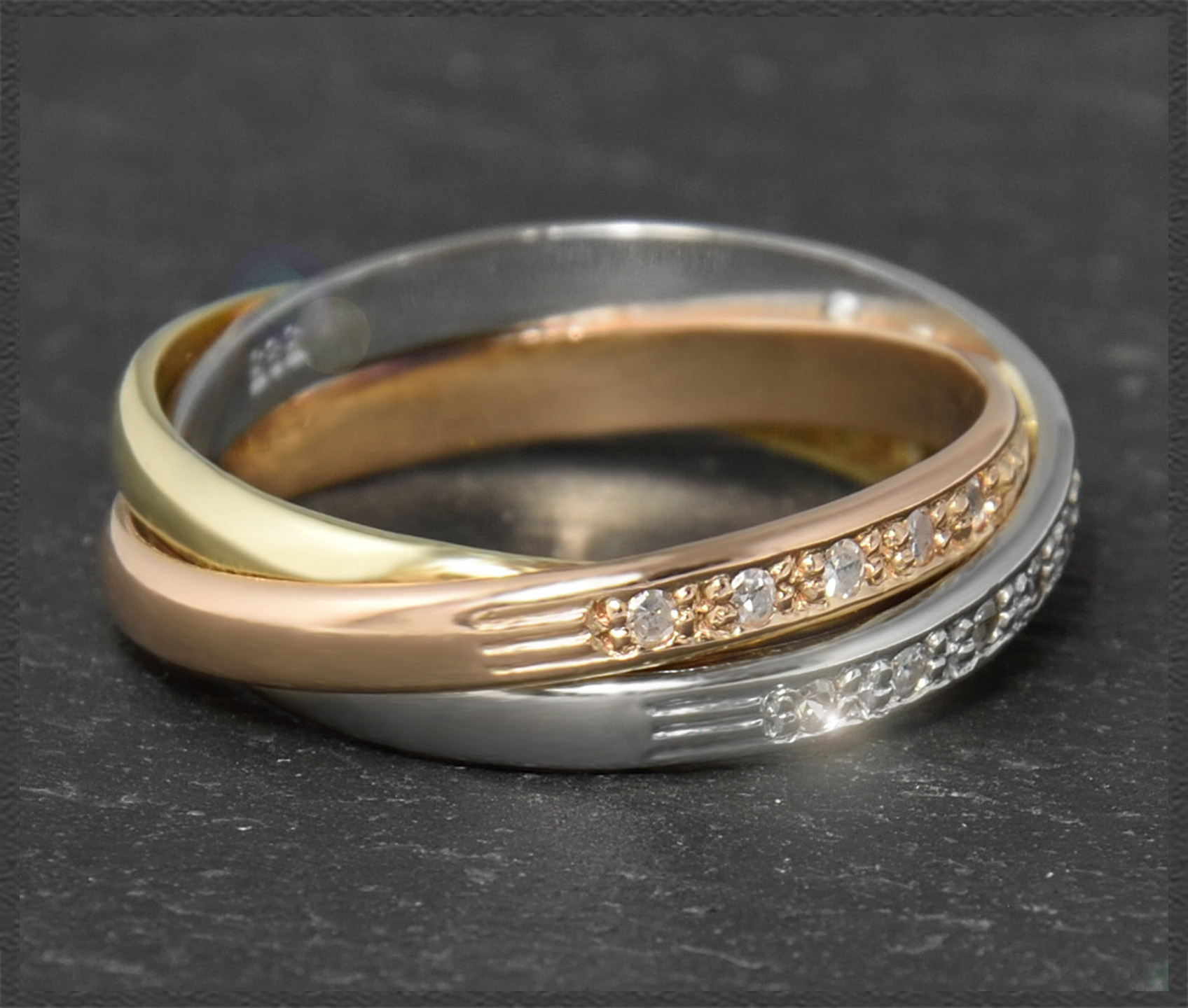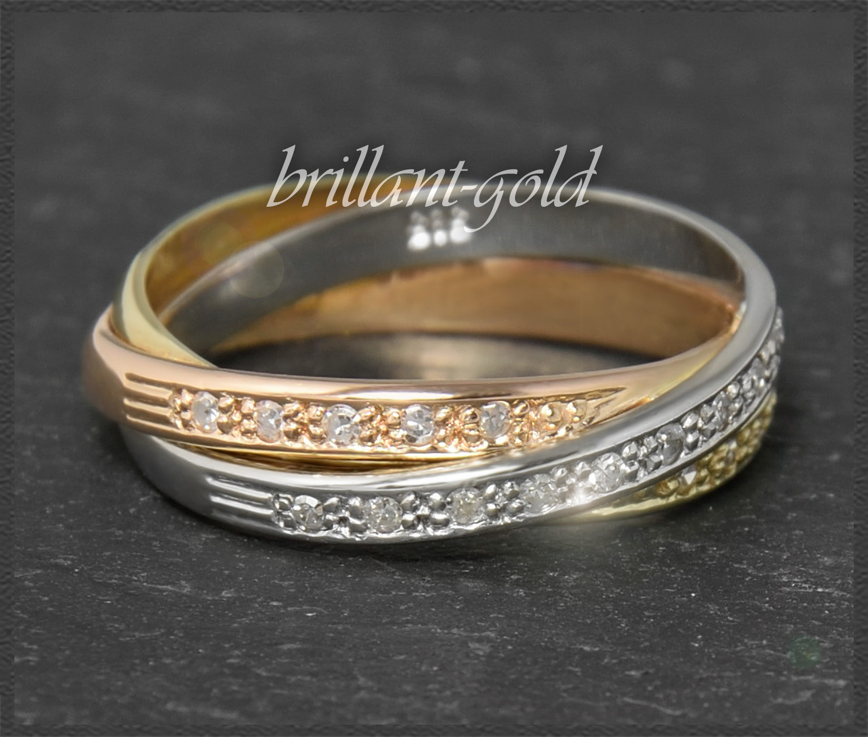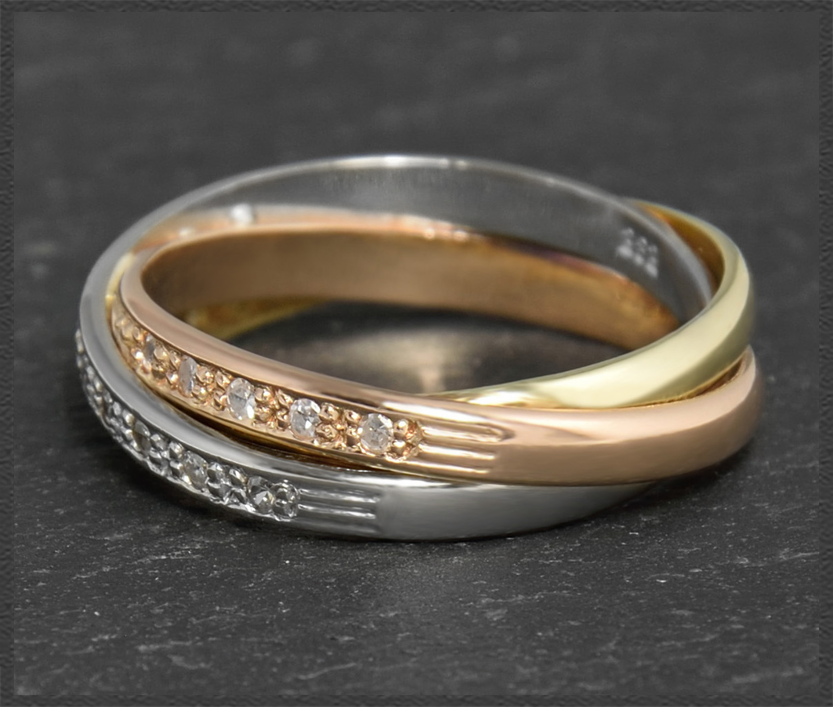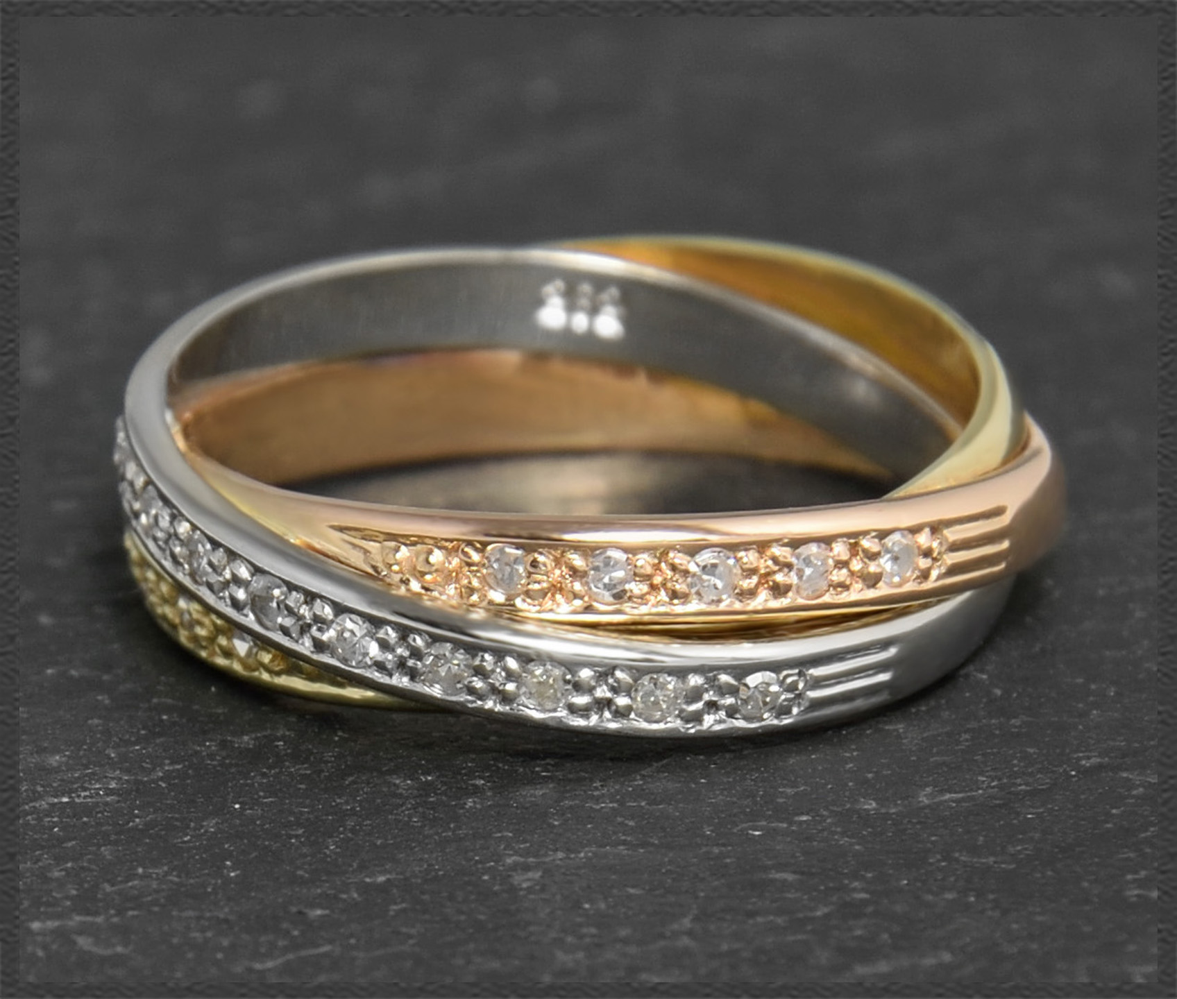 Eleganter 0,20ct Diamant Tricolor Bandring aus 585 Gold.