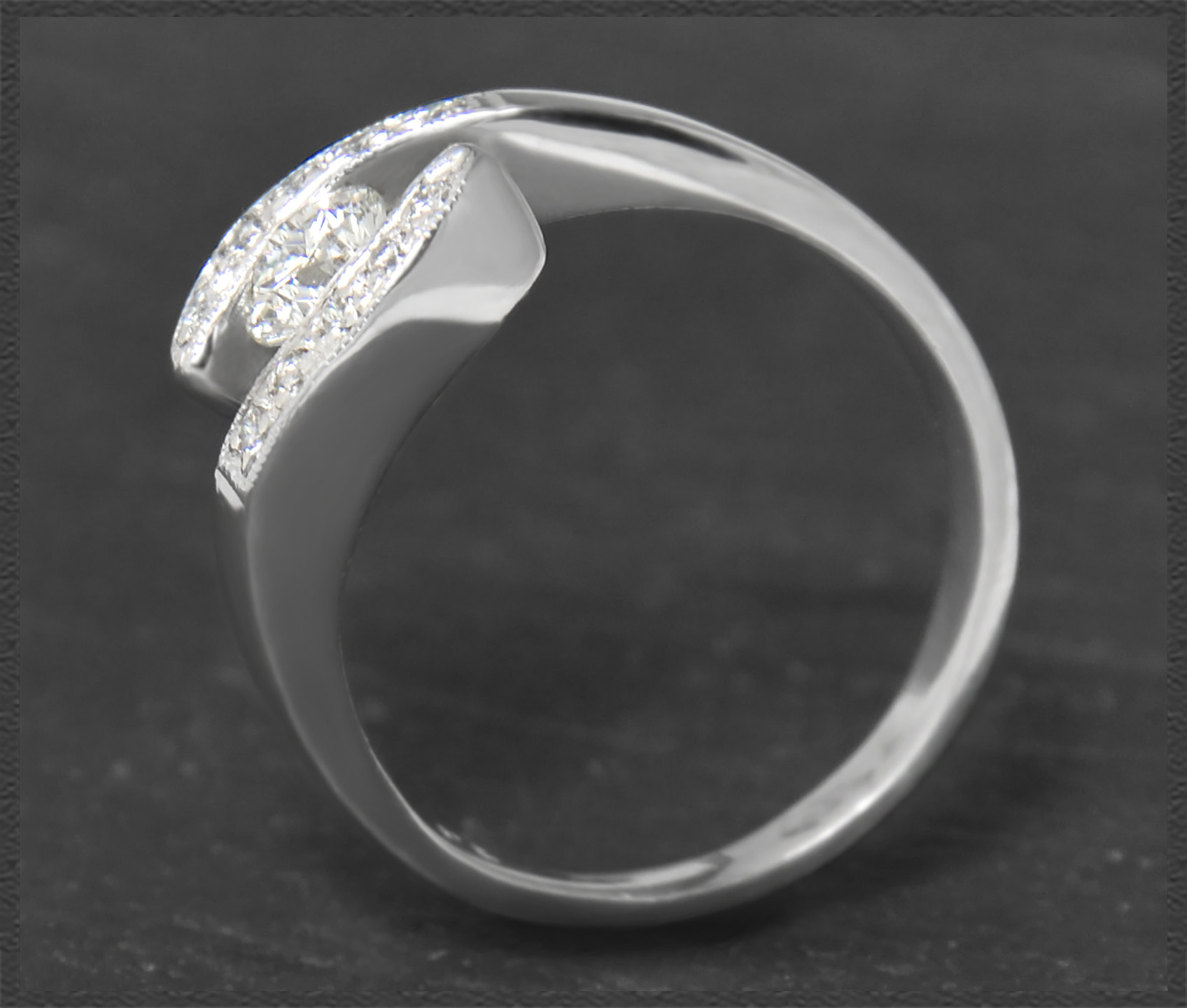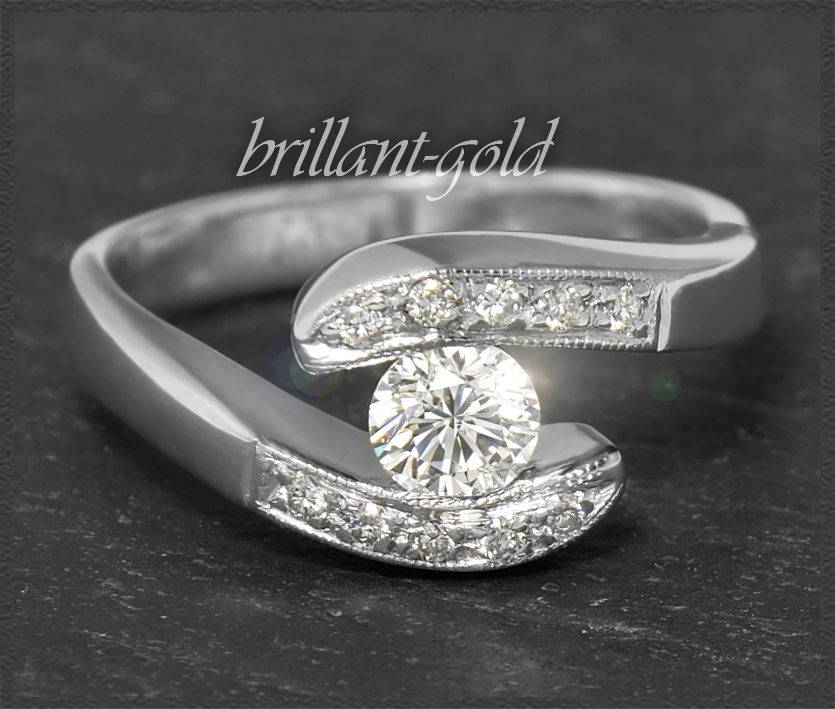 Eleganter Solitär Brillantring (zusammen 0,56ct) mit einem wunderschön funkelnden 0,38ct Diamant Solitär im exzellenten Brillantschliff.