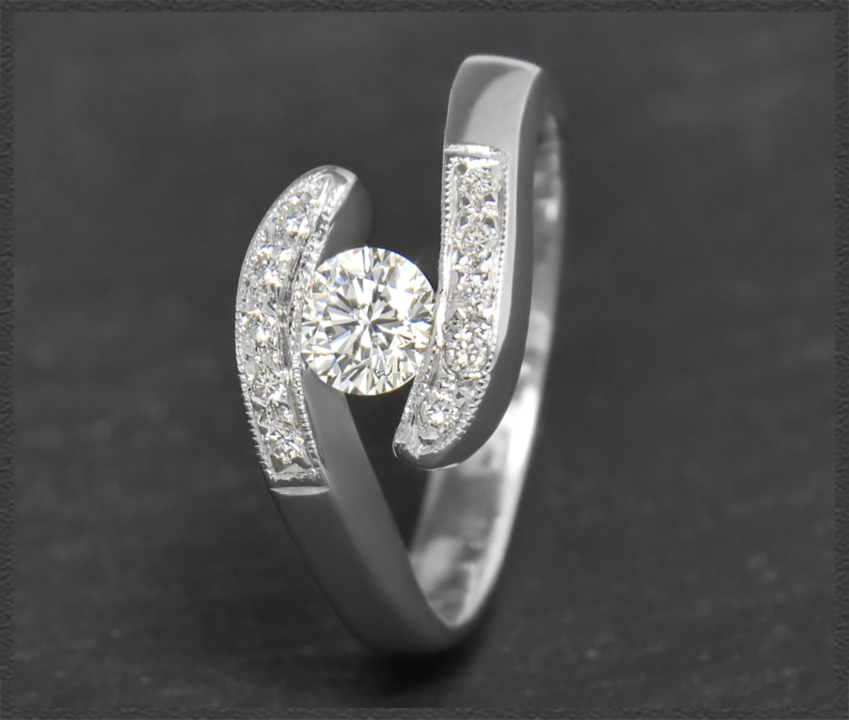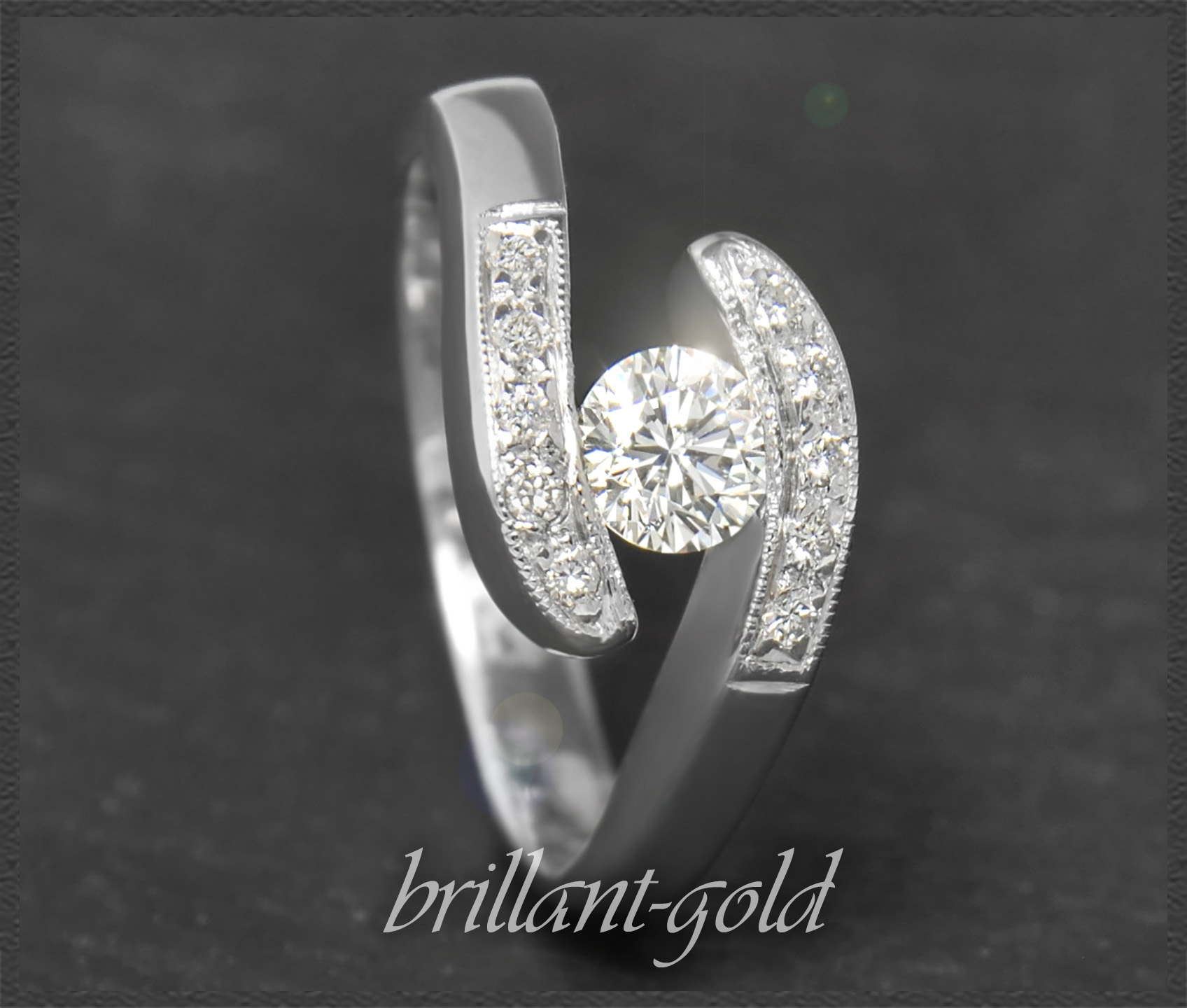 Zentral eingefasst ist ein hochwertiger & wunderschön funklender Brillant mit 4,50mm, seitlich an der Ringschliene zieren kleinere Brillanten den Ring. Alle Brillanten haben eine TOP Qualität & einen exzellenten Brillantschliff und sie funkeln wunderschön im Licht.