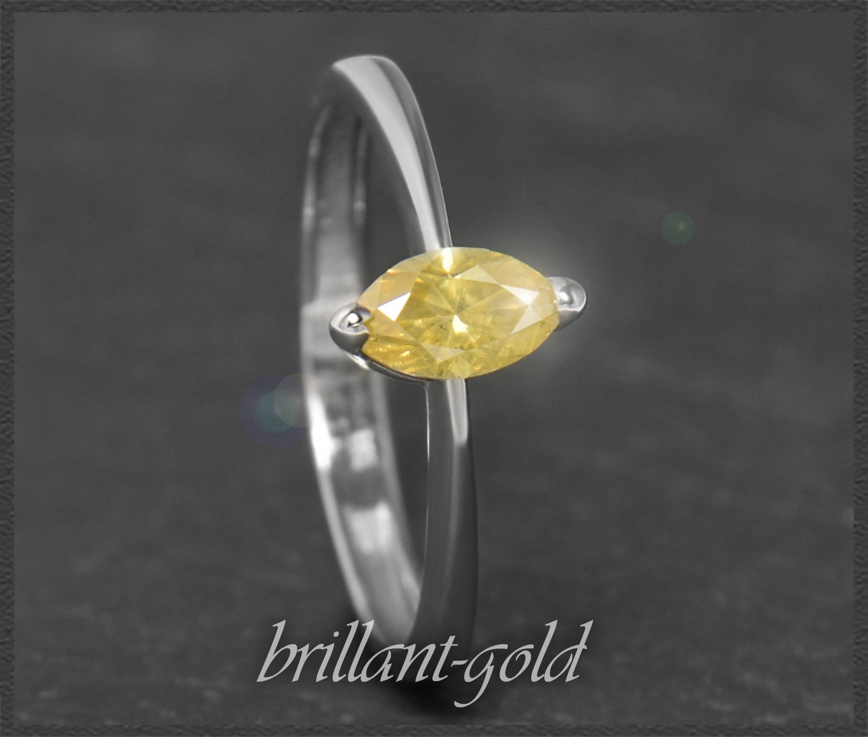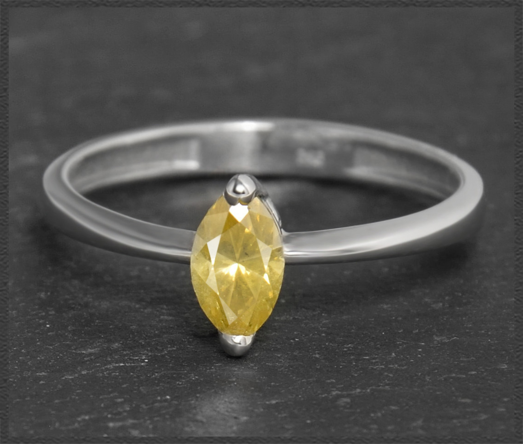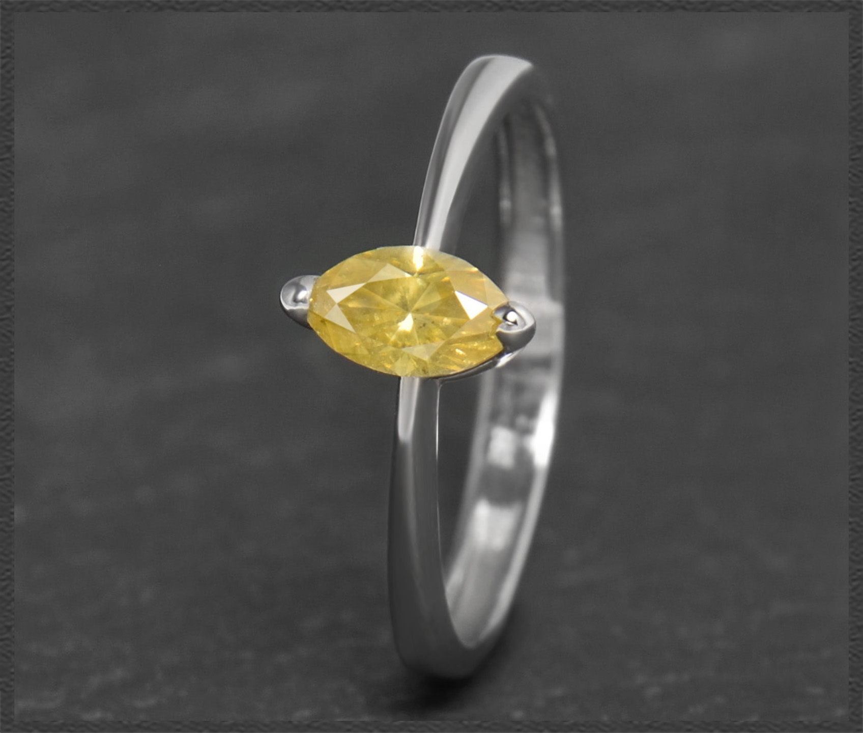 Außergewöhnlicher Diamant Solitärring mit einem naturfarbenen intensiv gelben 0,61ct Diamanten im Navette-Schliff.