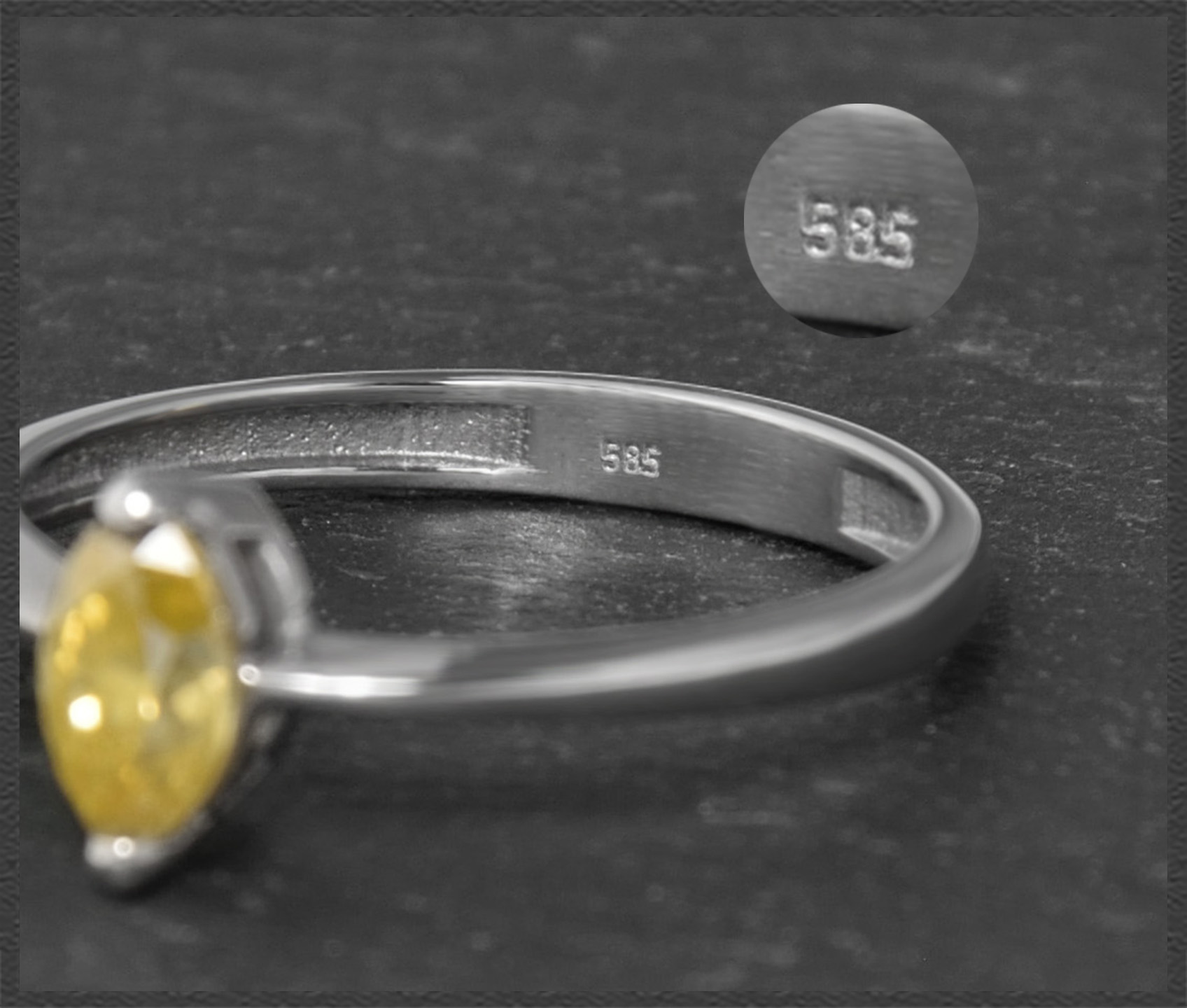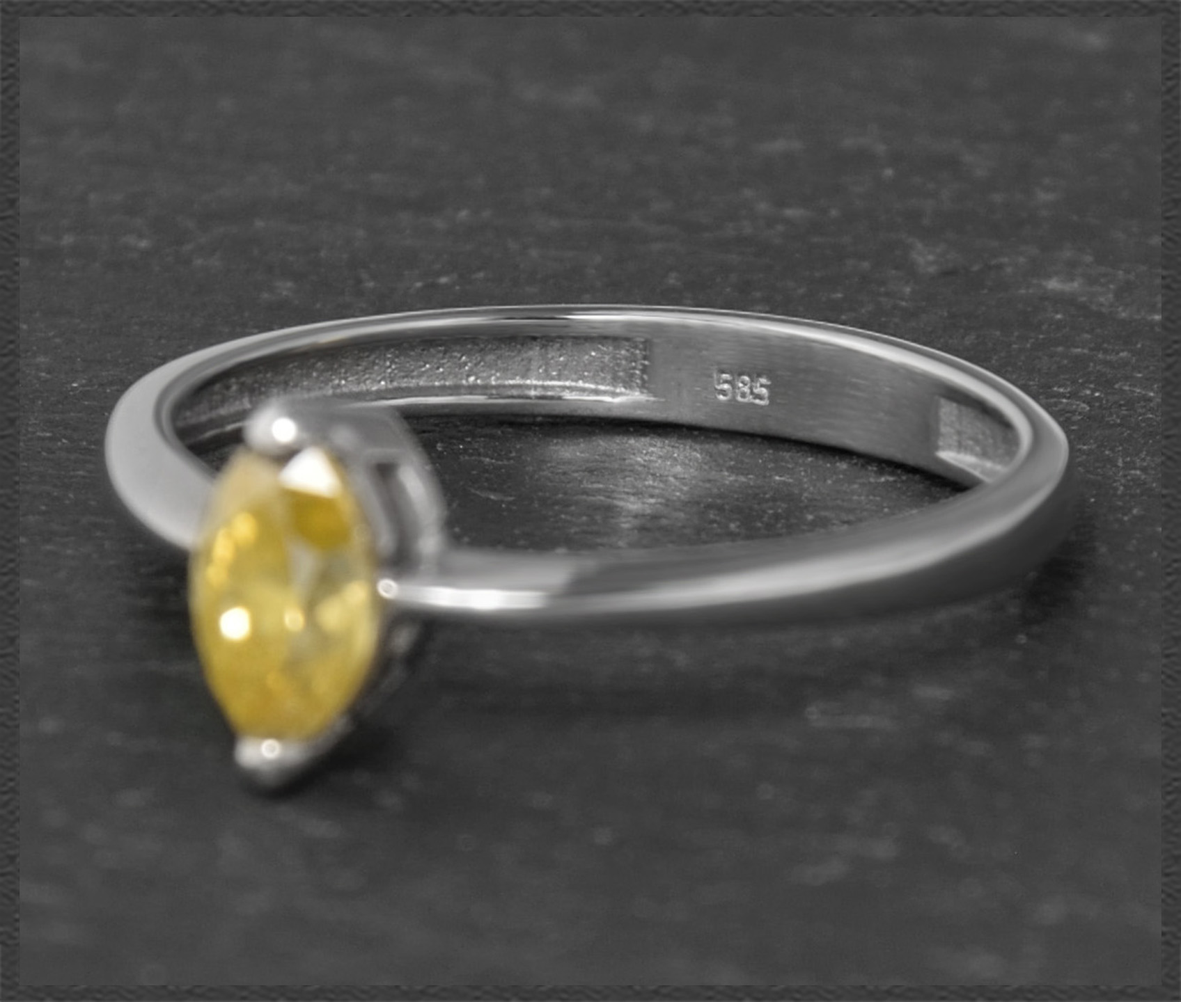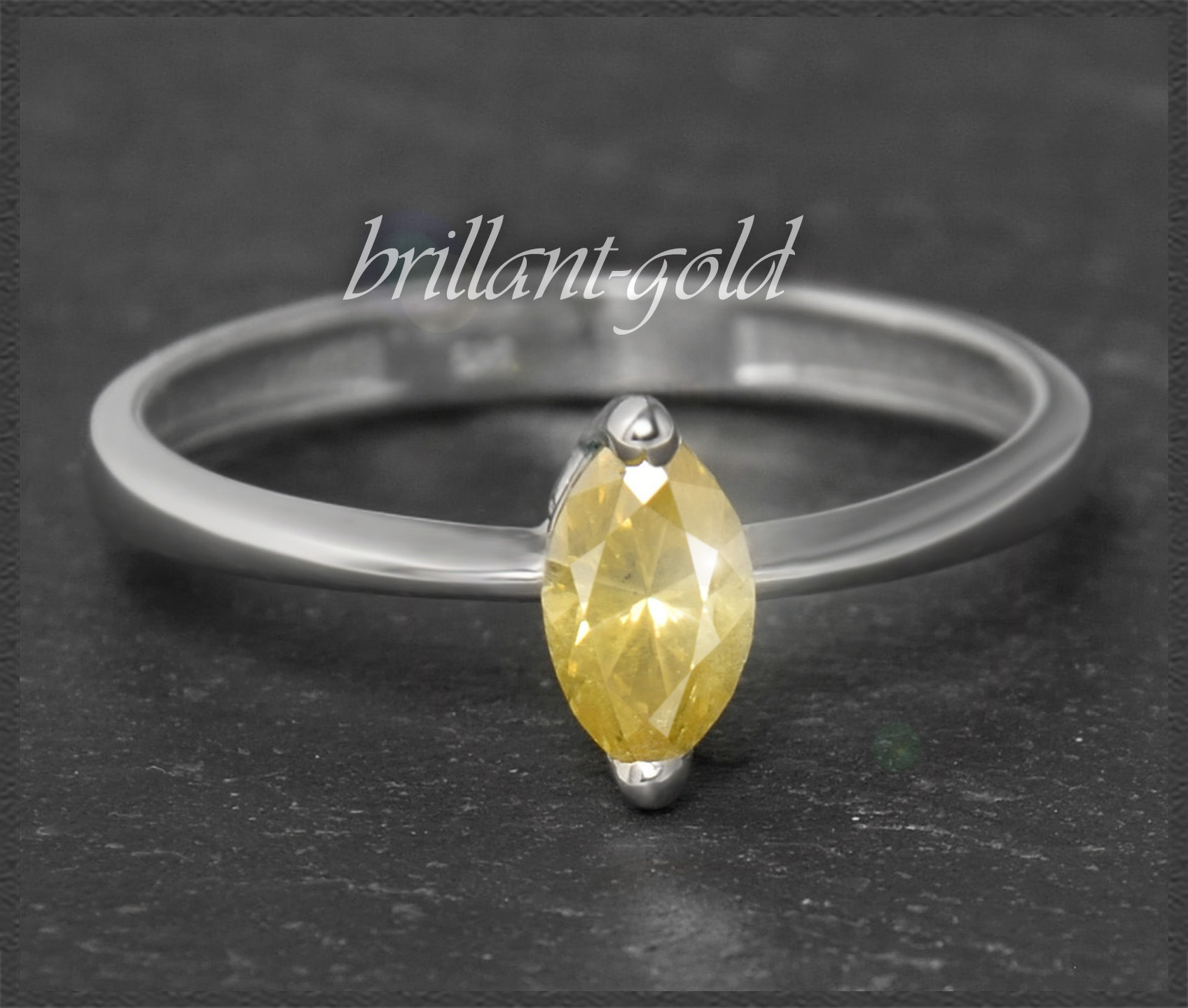 Außergewöhnlicher Diamant Solitärring mit einem naturfarbenen intensiv gelben 0,61ct Diamanten im Navette-Schliff.